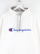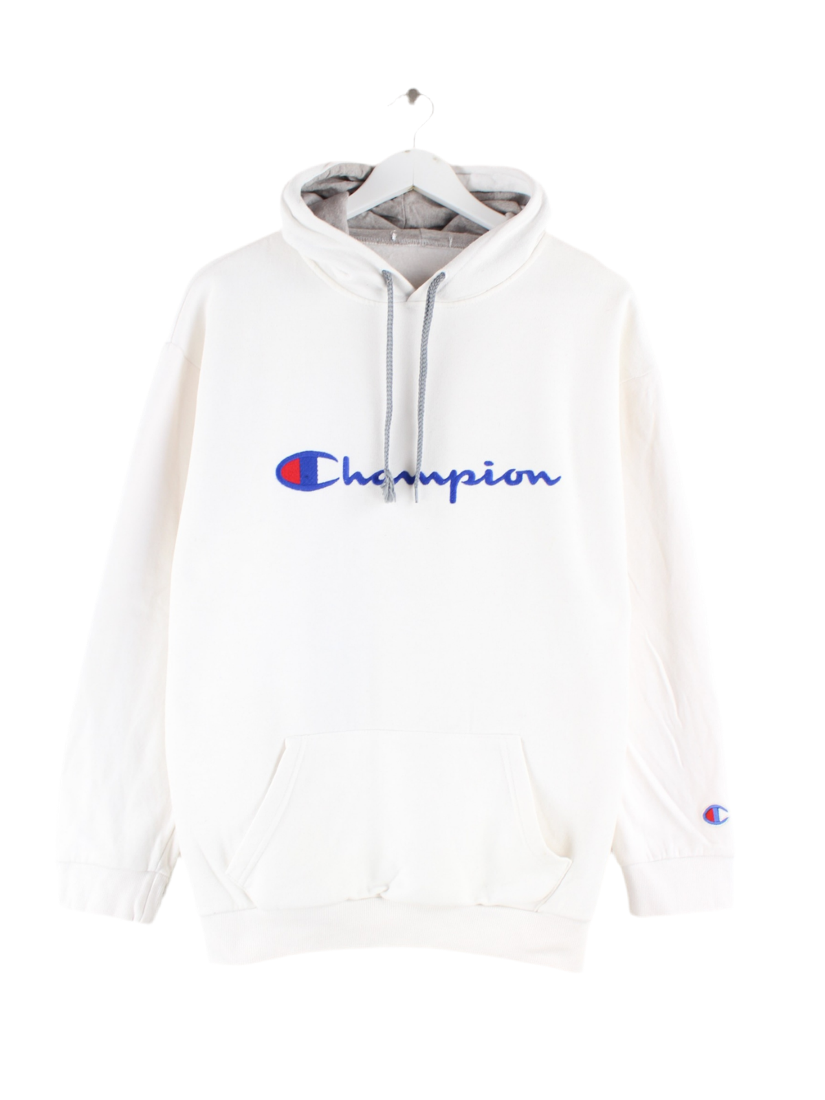 Hoodie vom Label Champion in Größe M. Er ist aus einer Baumwollmischung gemacht und in Weiß bei uns zu bekommen. Mit tollem Print.