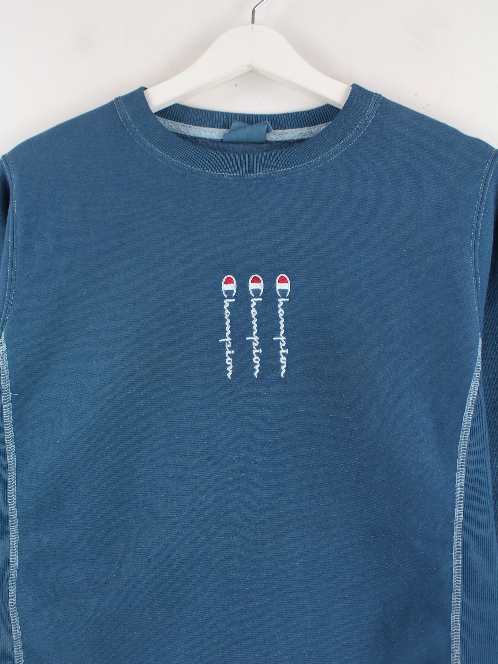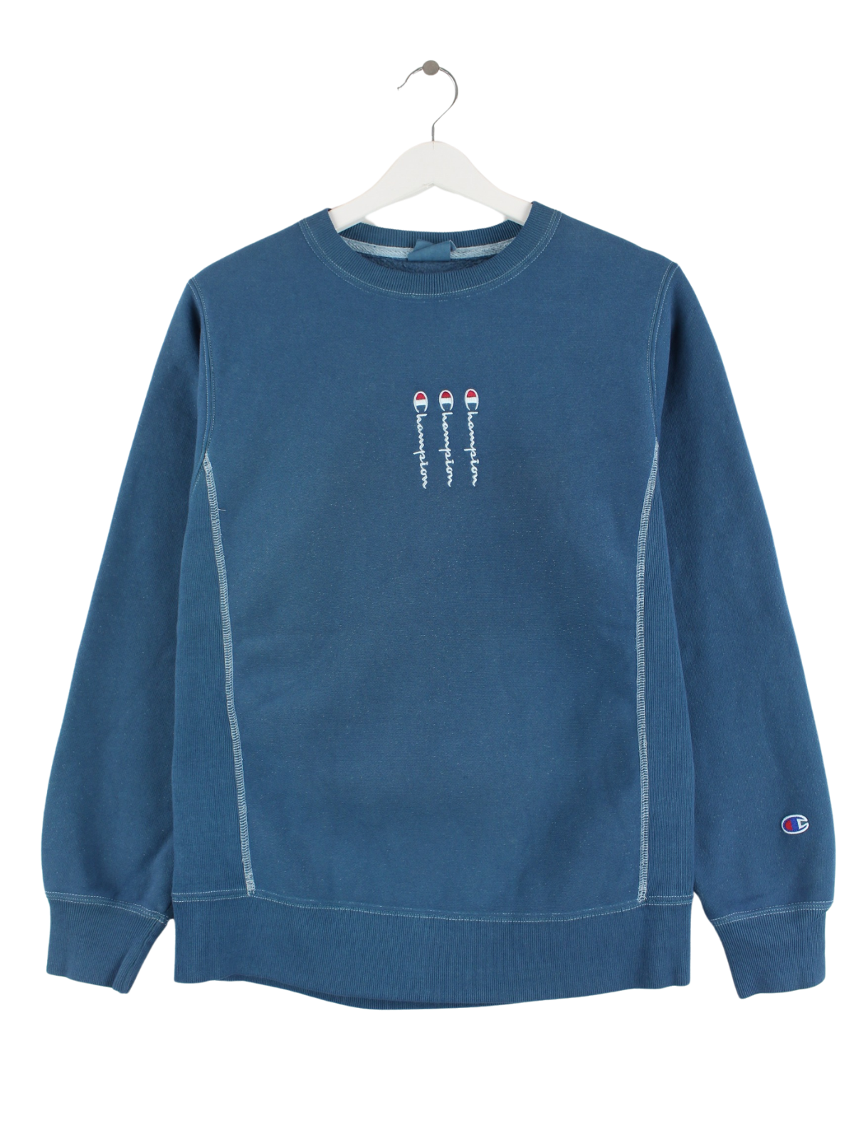 Sweater von Champion mit Stick in Größe S. Er ist aus einer Baumwollmischung hergestellt und in Blau im Angebot.