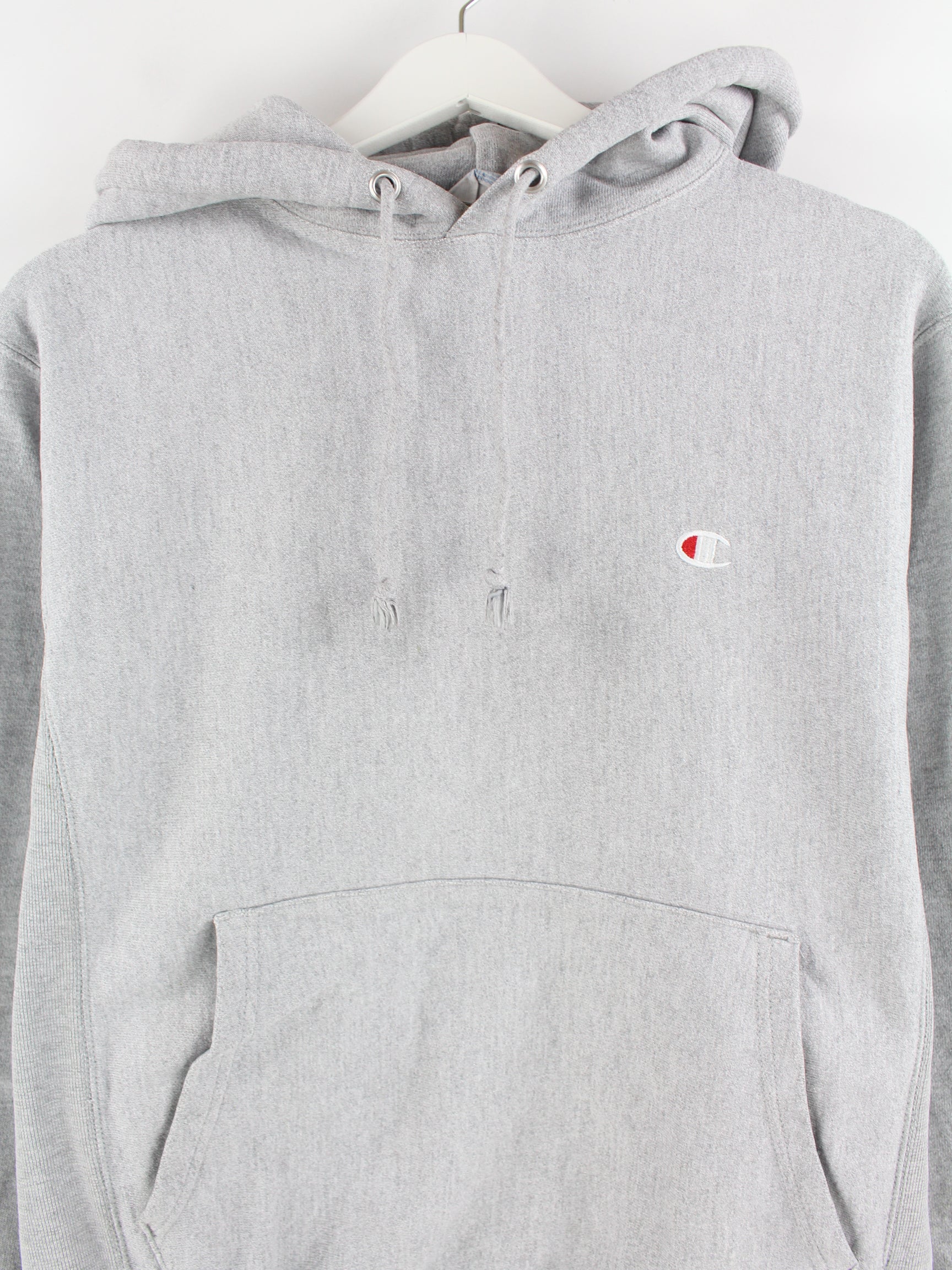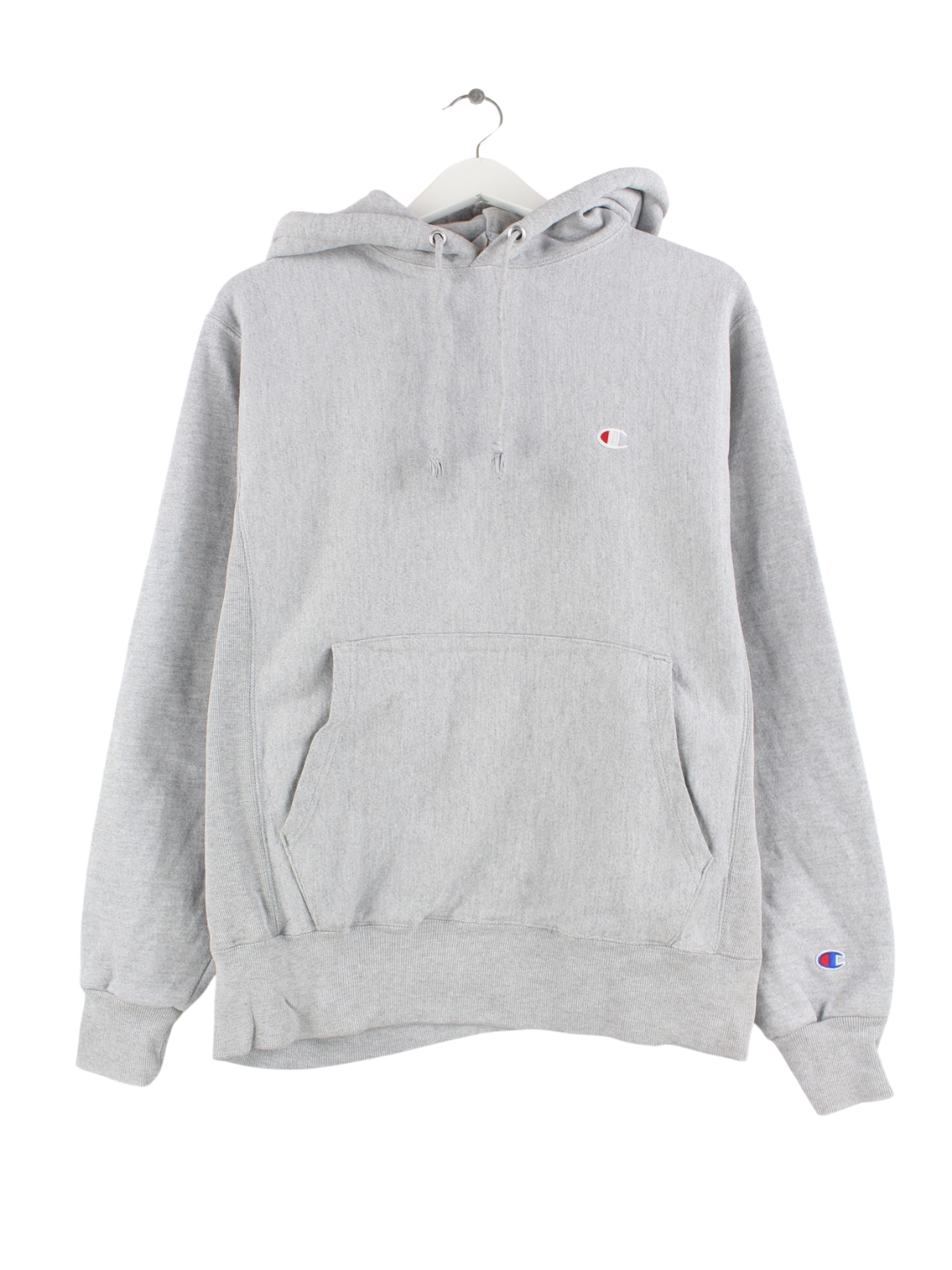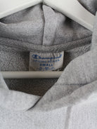 Grauer Hoodie des Labels Champion aus Anfang der 2000'er in Größe S. Er ist aus einer Baumwollmischung gefertigt und in sehr gutem Zustand im Bestand.