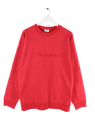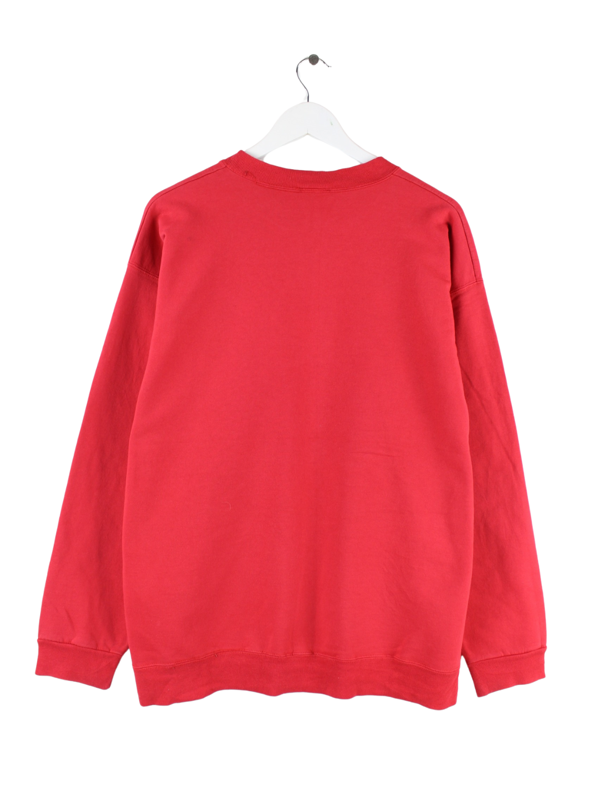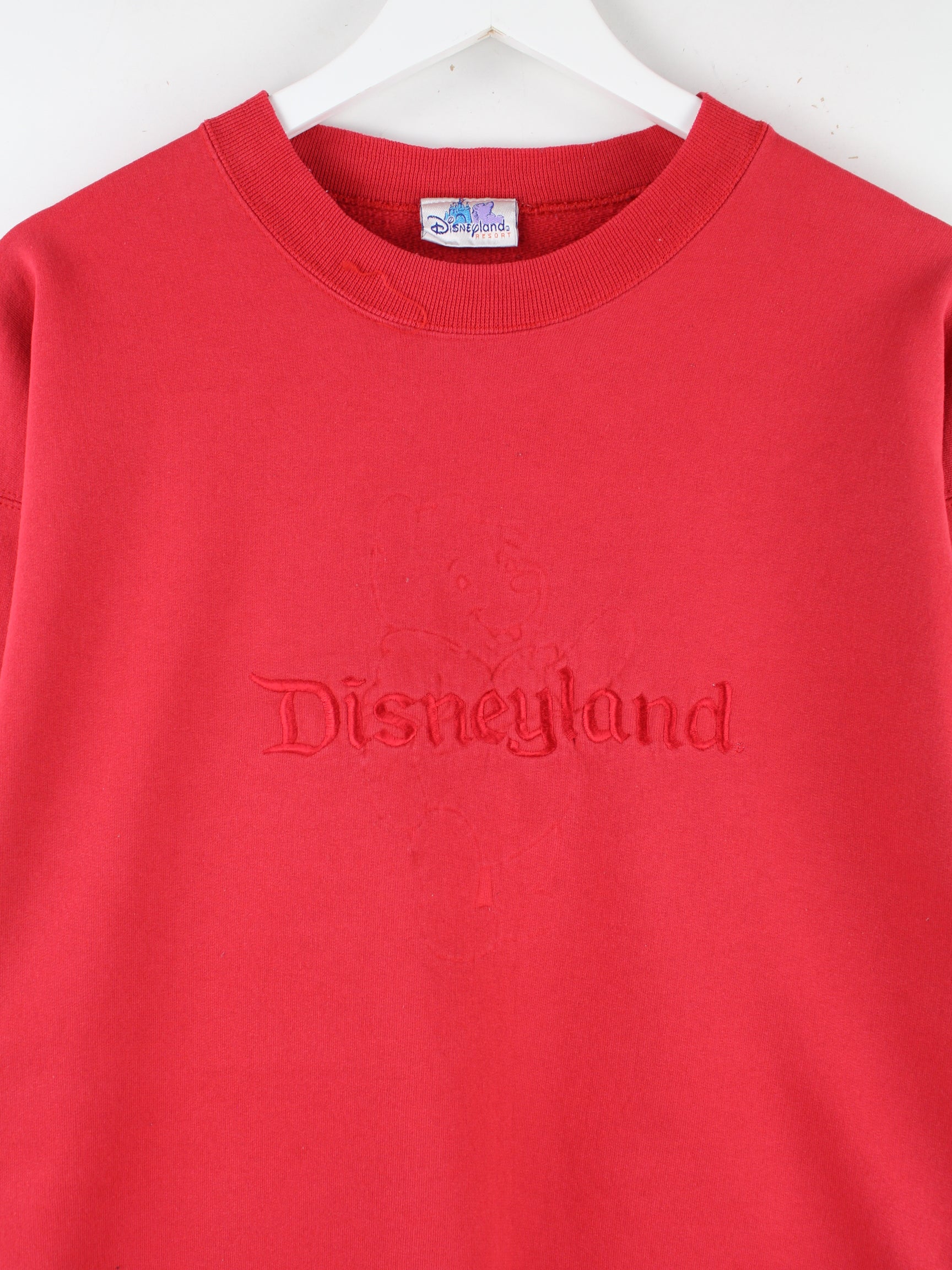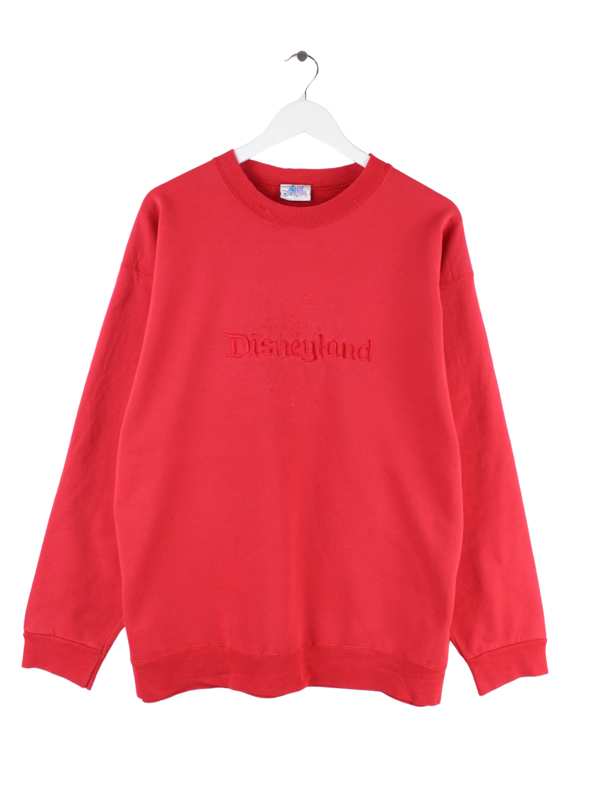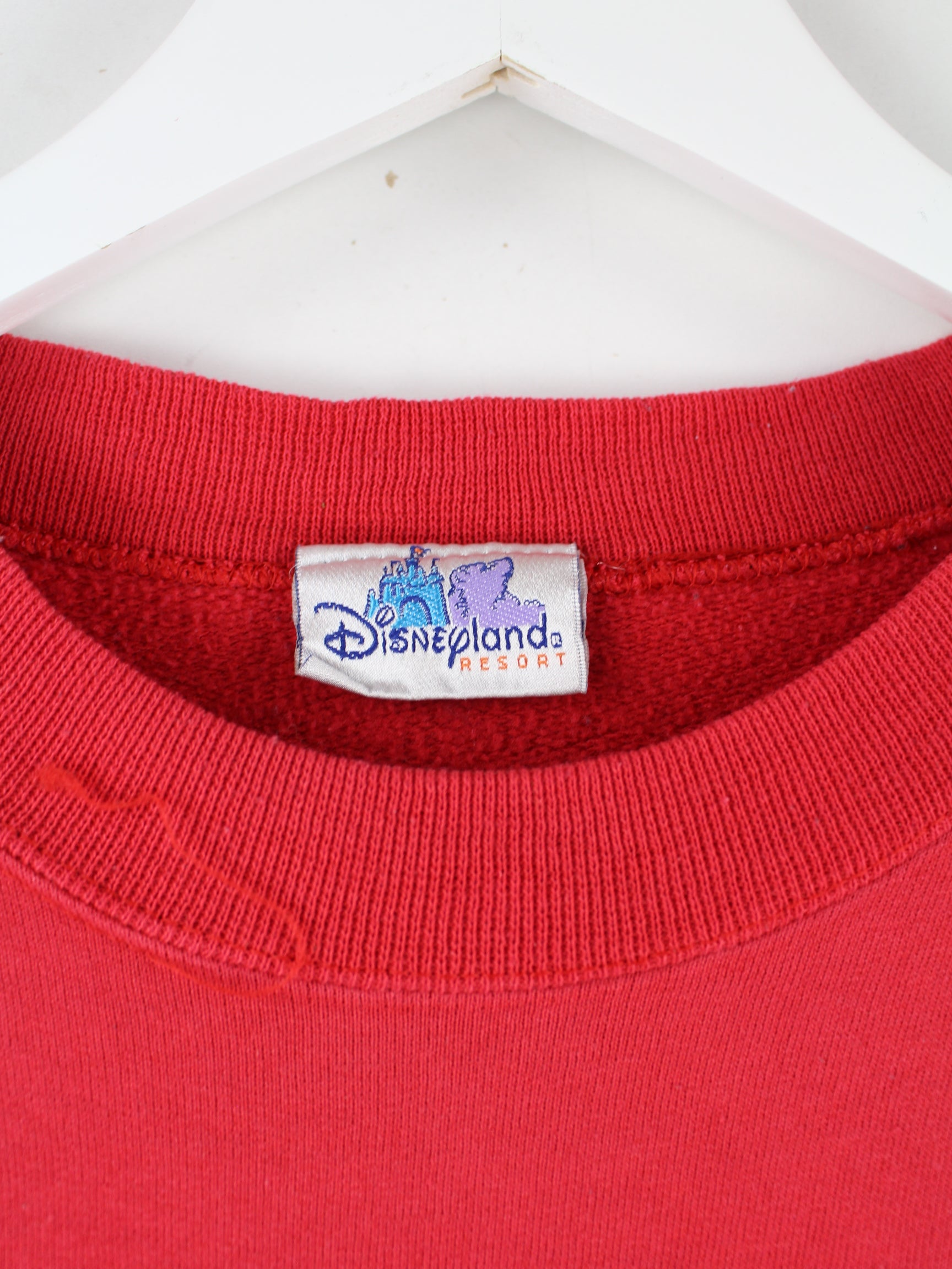 Sweater aus dem Hause Disney mit gesticktem Logo in Größe XL aus den 90'ern. Er ist aus einer Baumwollmischung gemacht und in Rot in Stock.