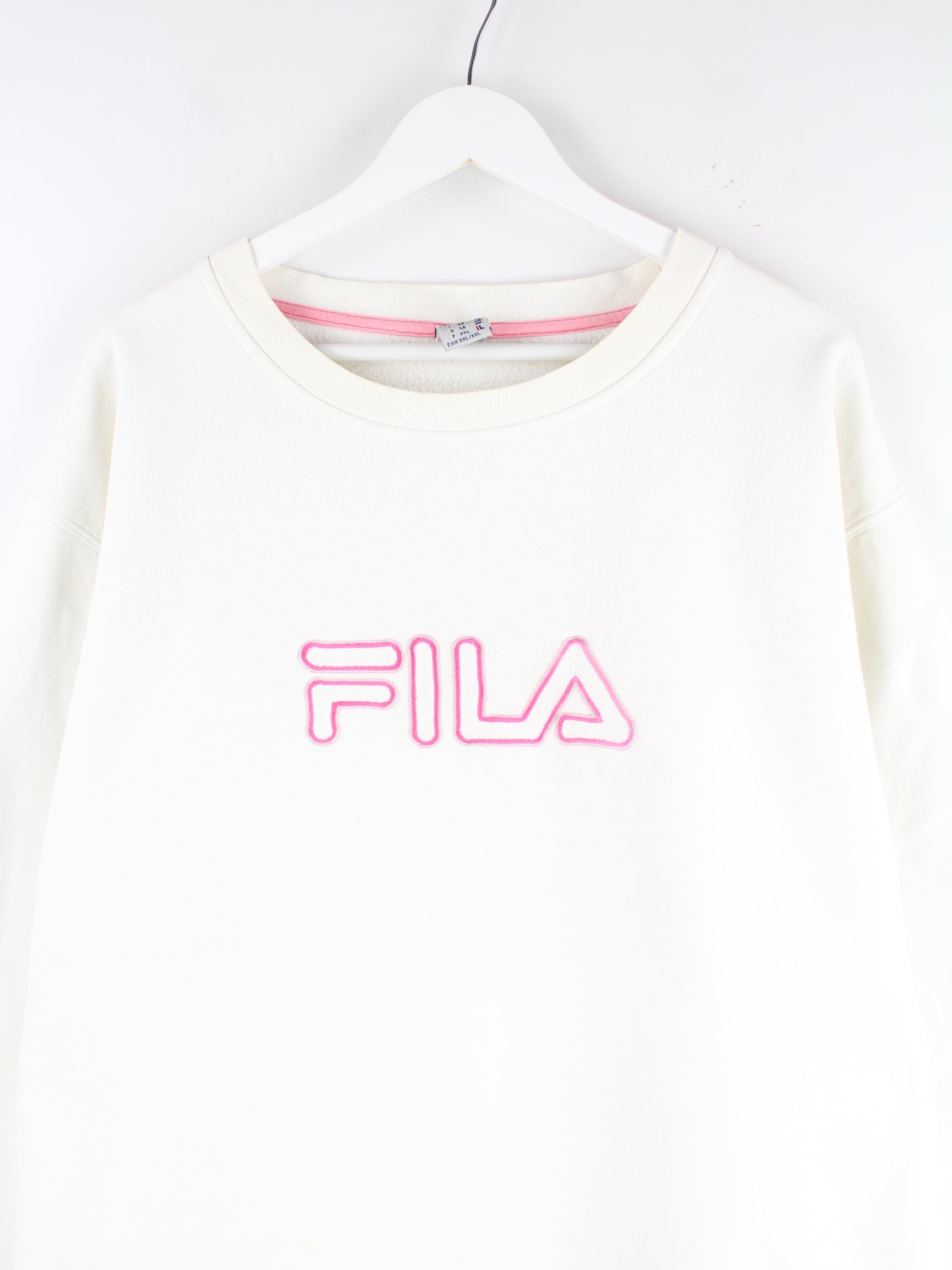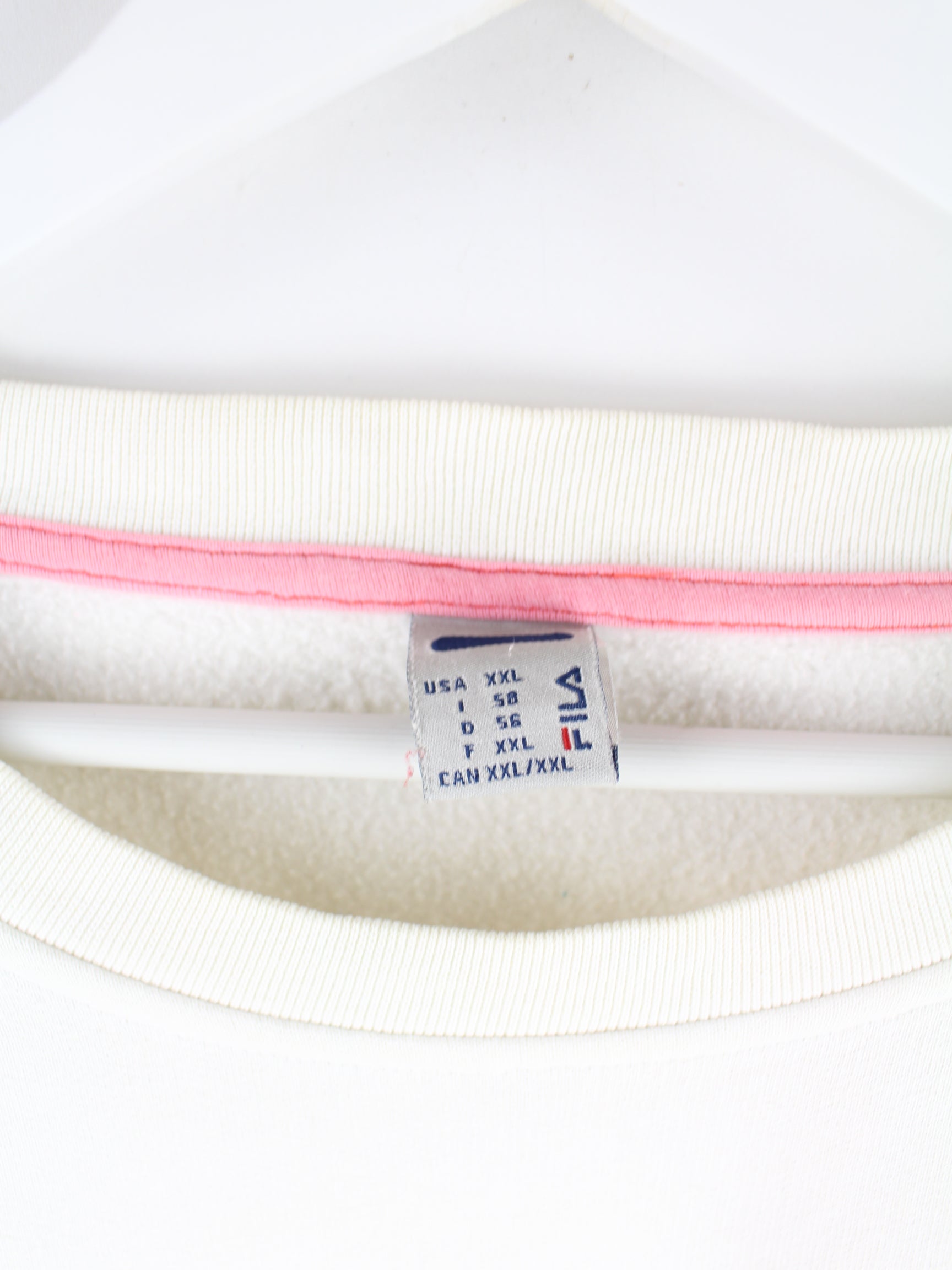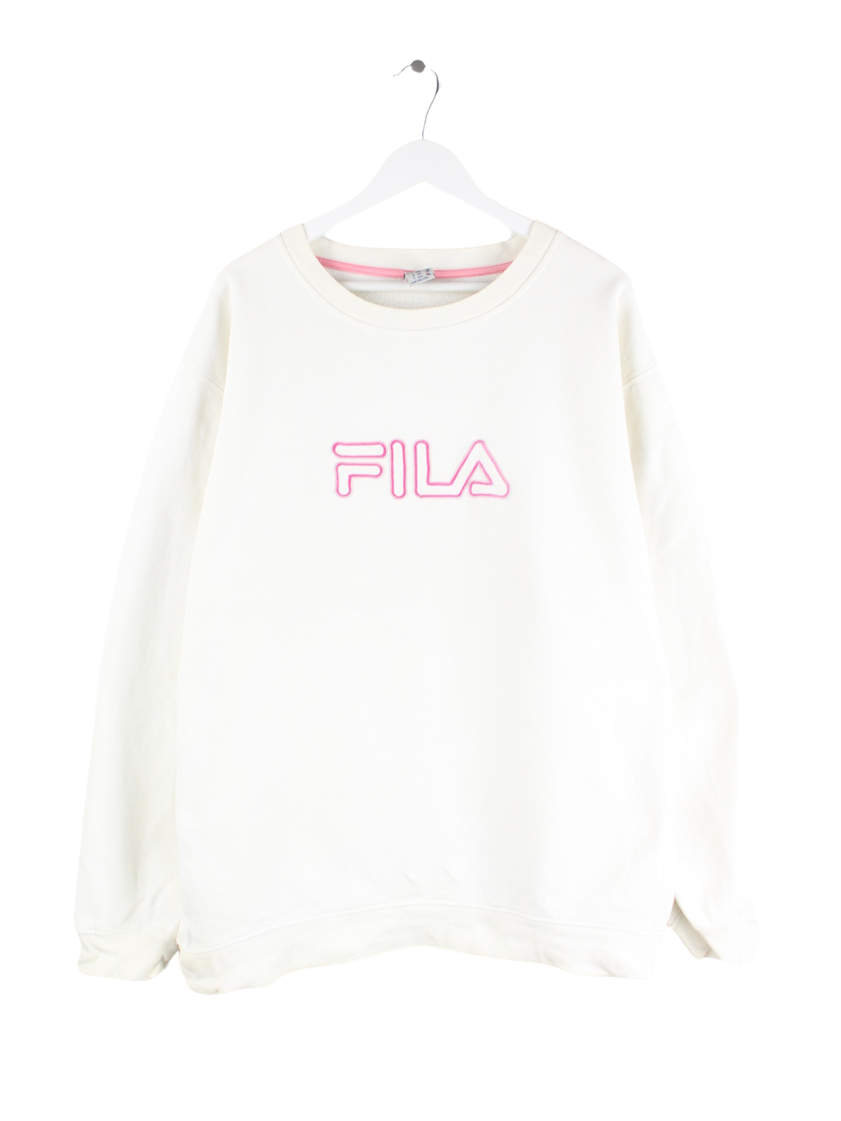Sweater von Fila mit gestickten Motiven in Größe XXL. Er ist aus einer Baumwollmischung und in Weiß lieferbar.