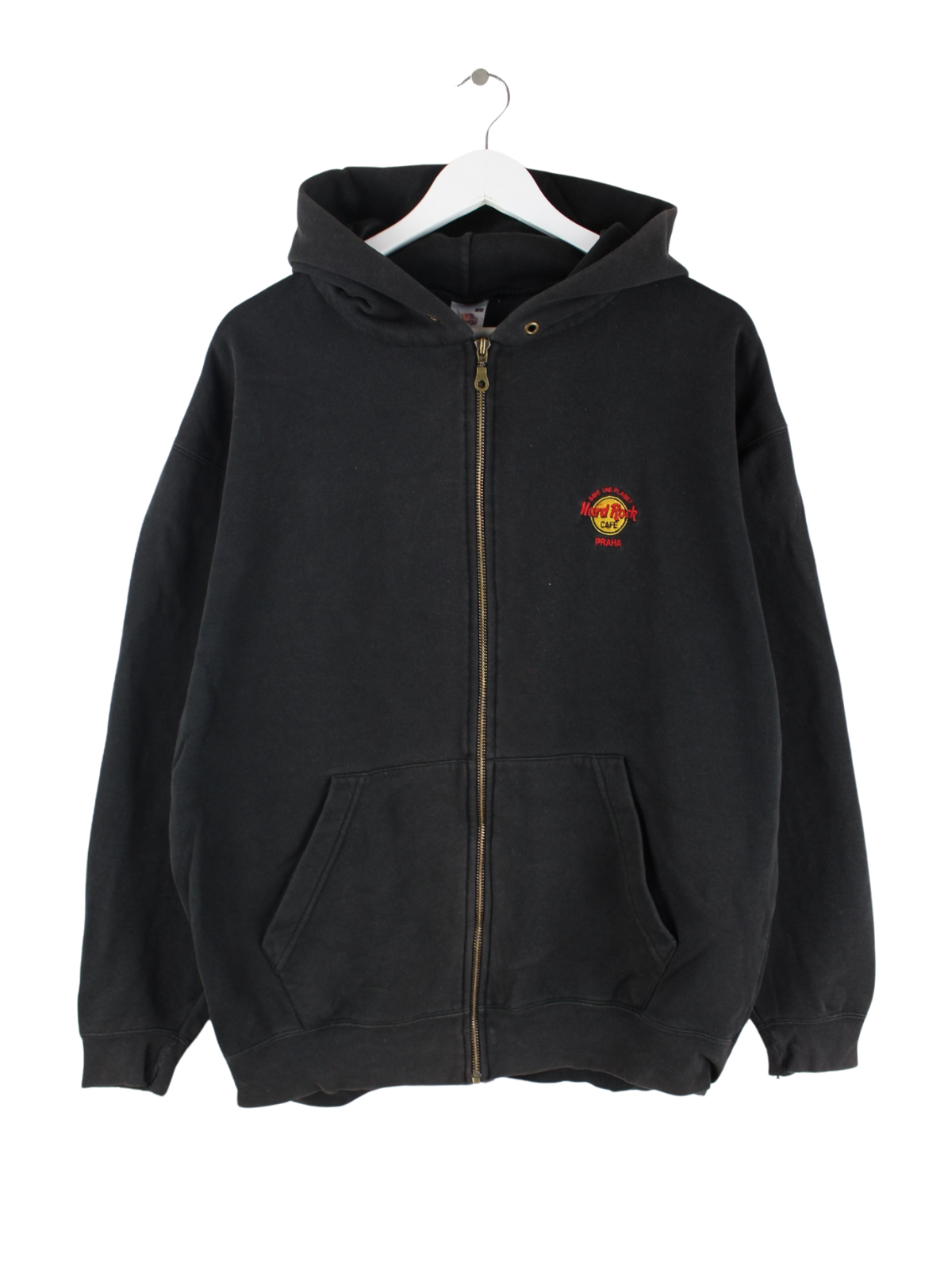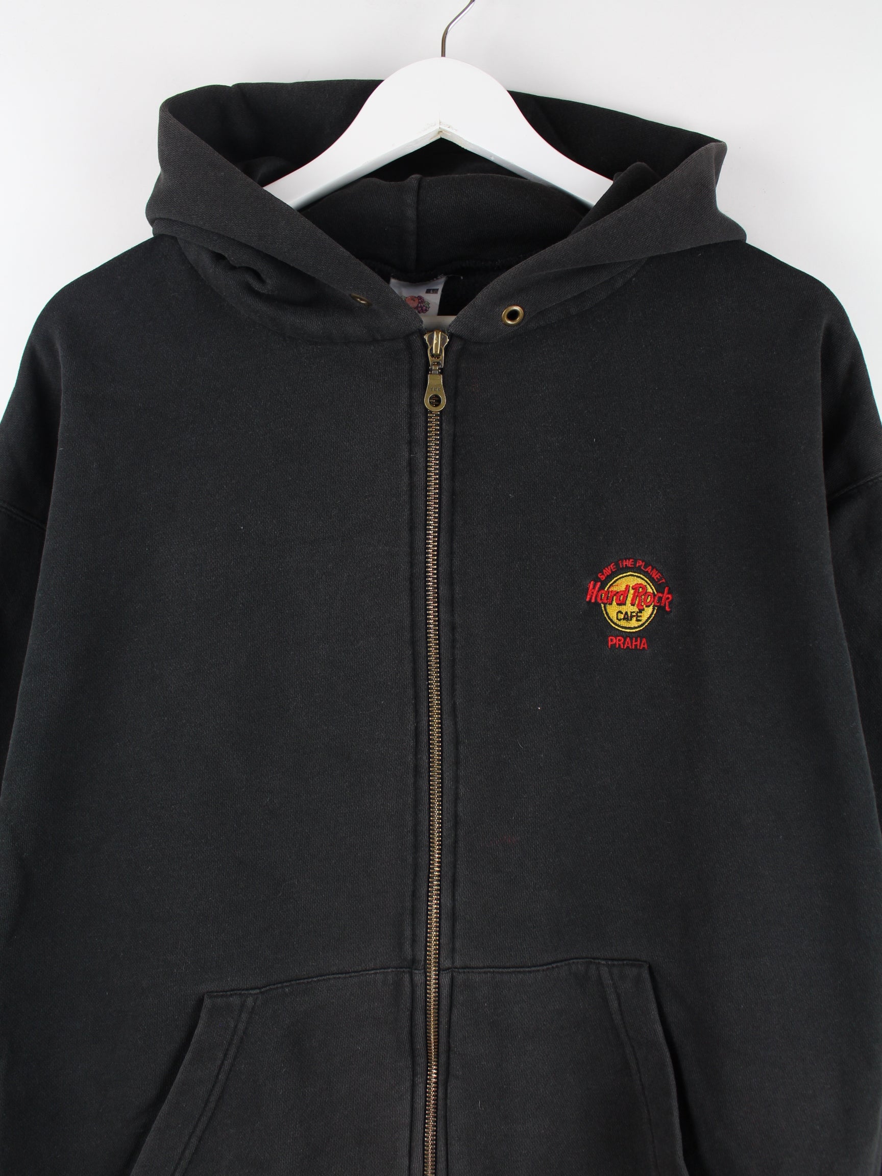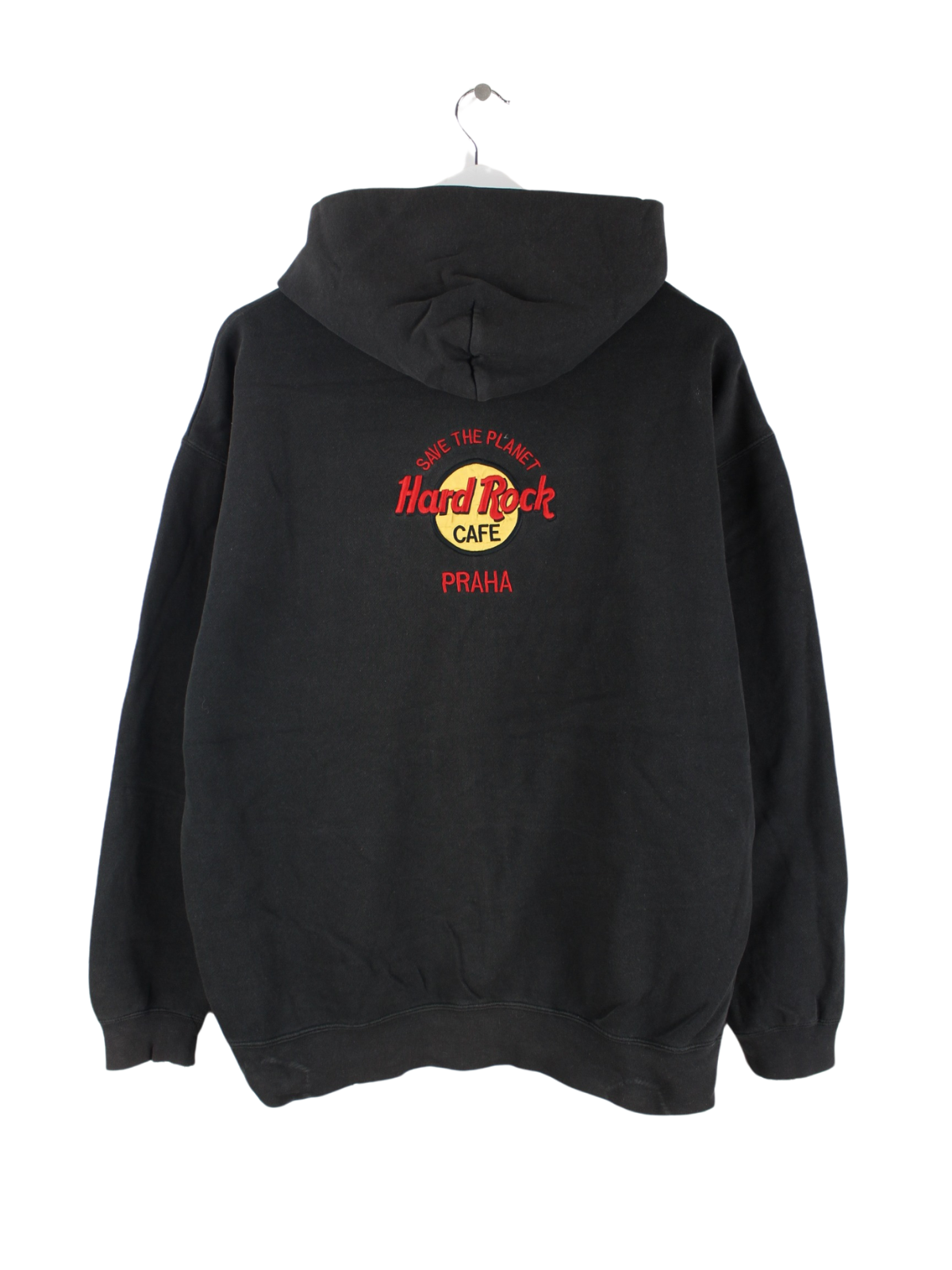 Fruit of the Loom 00s Hard Rock Cafe Praha Embroidered Hoodie Schwarz L