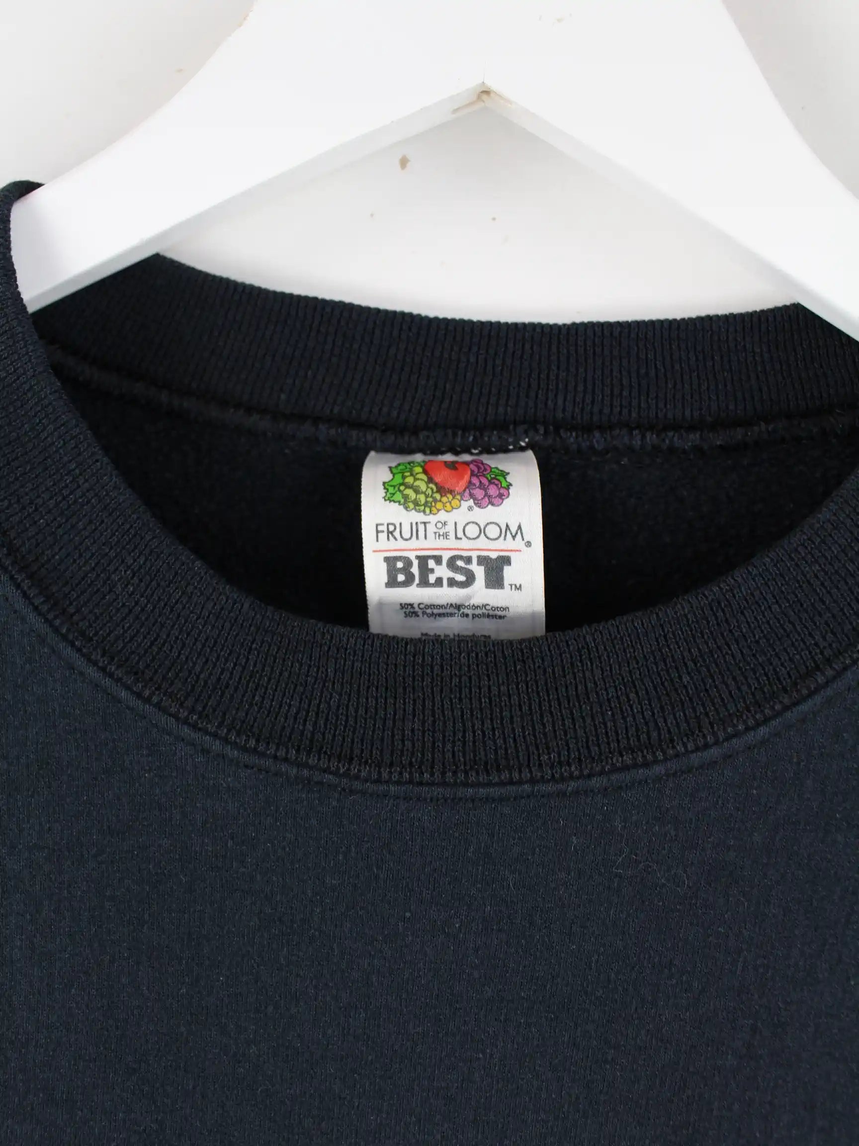 Sweater der Marke Fruit of the Loom mit gesticktem Logo in Größe L. Er ist aus einer Baumwollmischung und in Schwarz im Bestand.