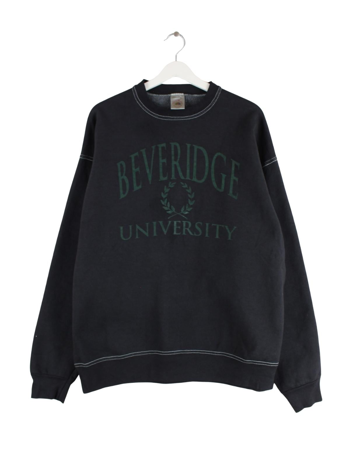 Fruit of the Loom 90s Vintage Beveridge Univeristy Print Heavy Sweater Schwarz XL