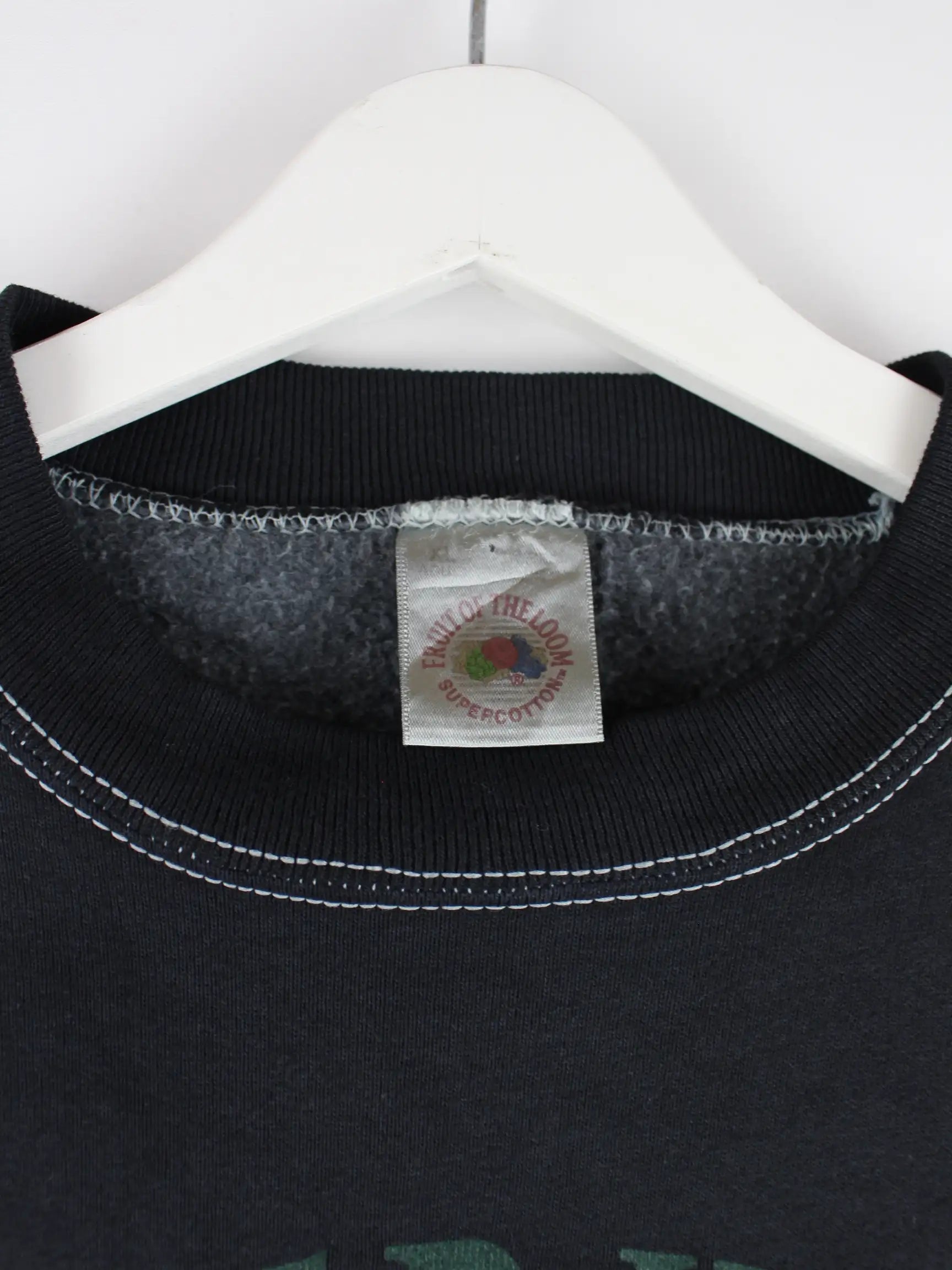 Schwarzer Sweater der Brand Fruit of the Loom aus den 90'ern in Größe XL. Er ist aus einer Baumwollmischung hergestellt und in sehr gutem Zustand bei uns vorrätig. Mit schönem Univeristy Print.