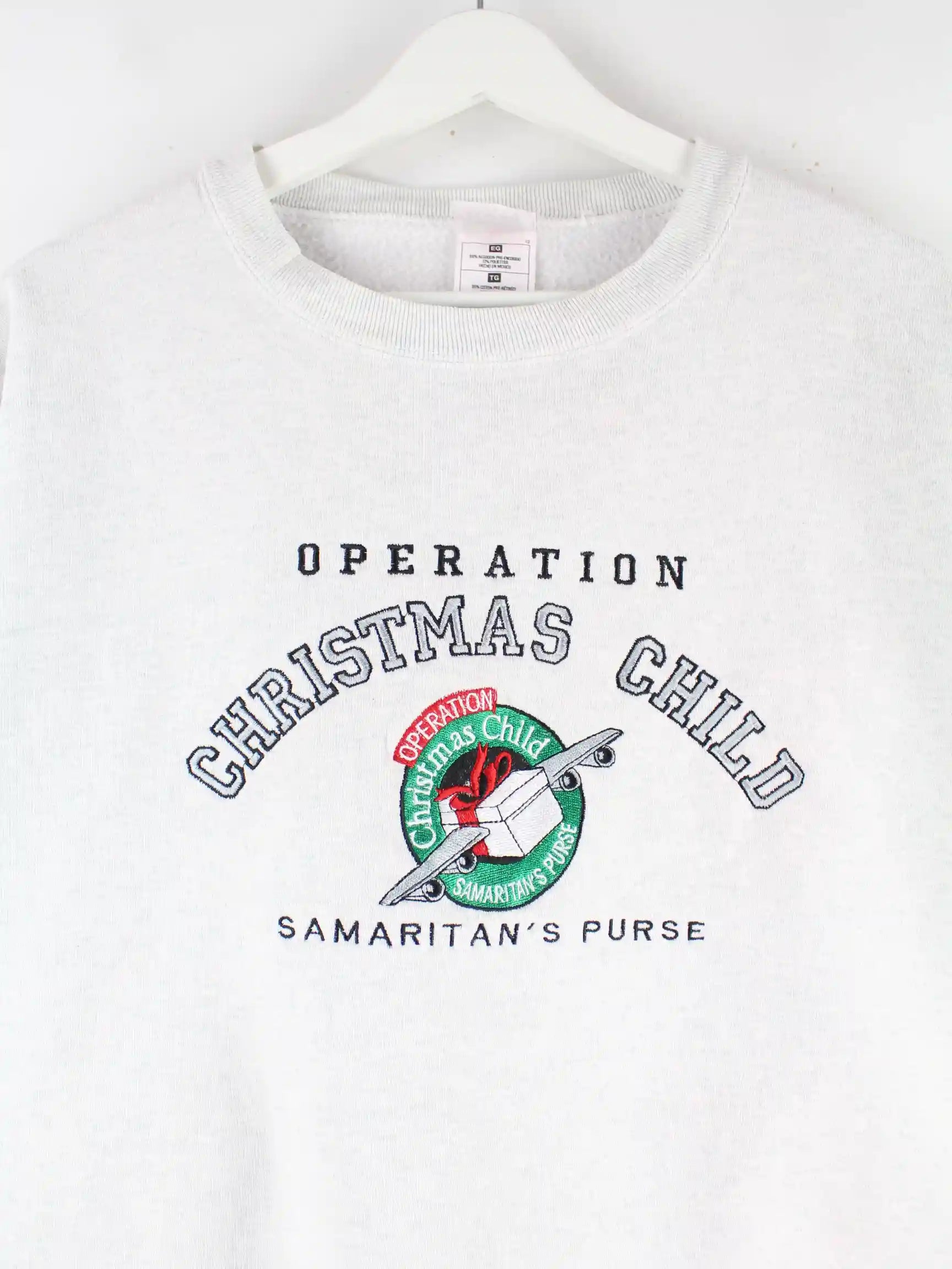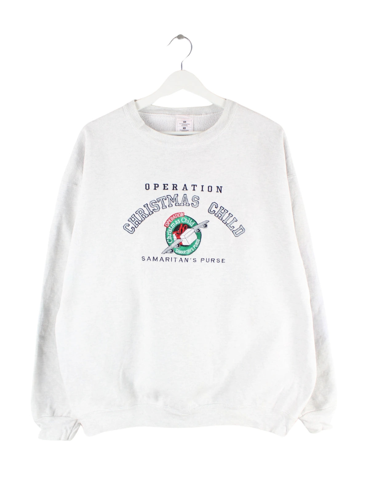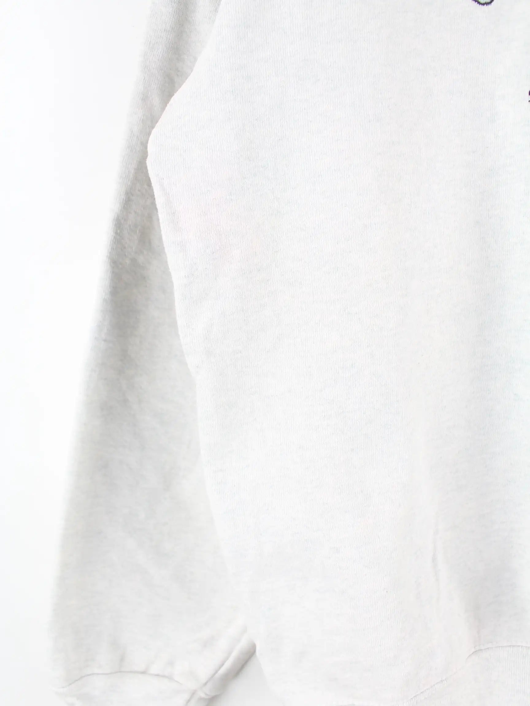 Sweater von Fruit of the Loom mit Stickereien in Größe XL aus den 90'ern. Er ist aus einer Baumwollmischung und in Grau vorrätig.