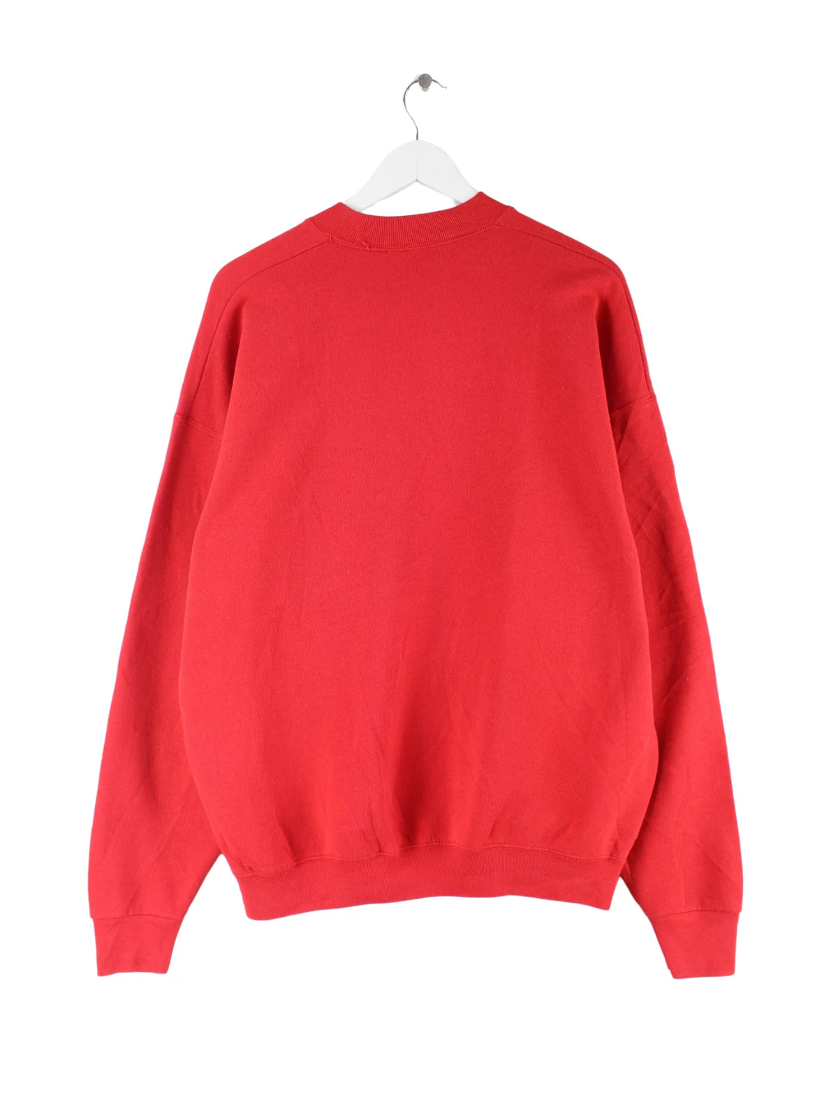 Roter Sweater mit gesticktem Logo aus dem Hause Fruit of the Loom aus den 90'ern in Größe XL. Er ist aus einer Baumwollmischung gefertigt und in gutem Zustand bei uns zu bekommen.