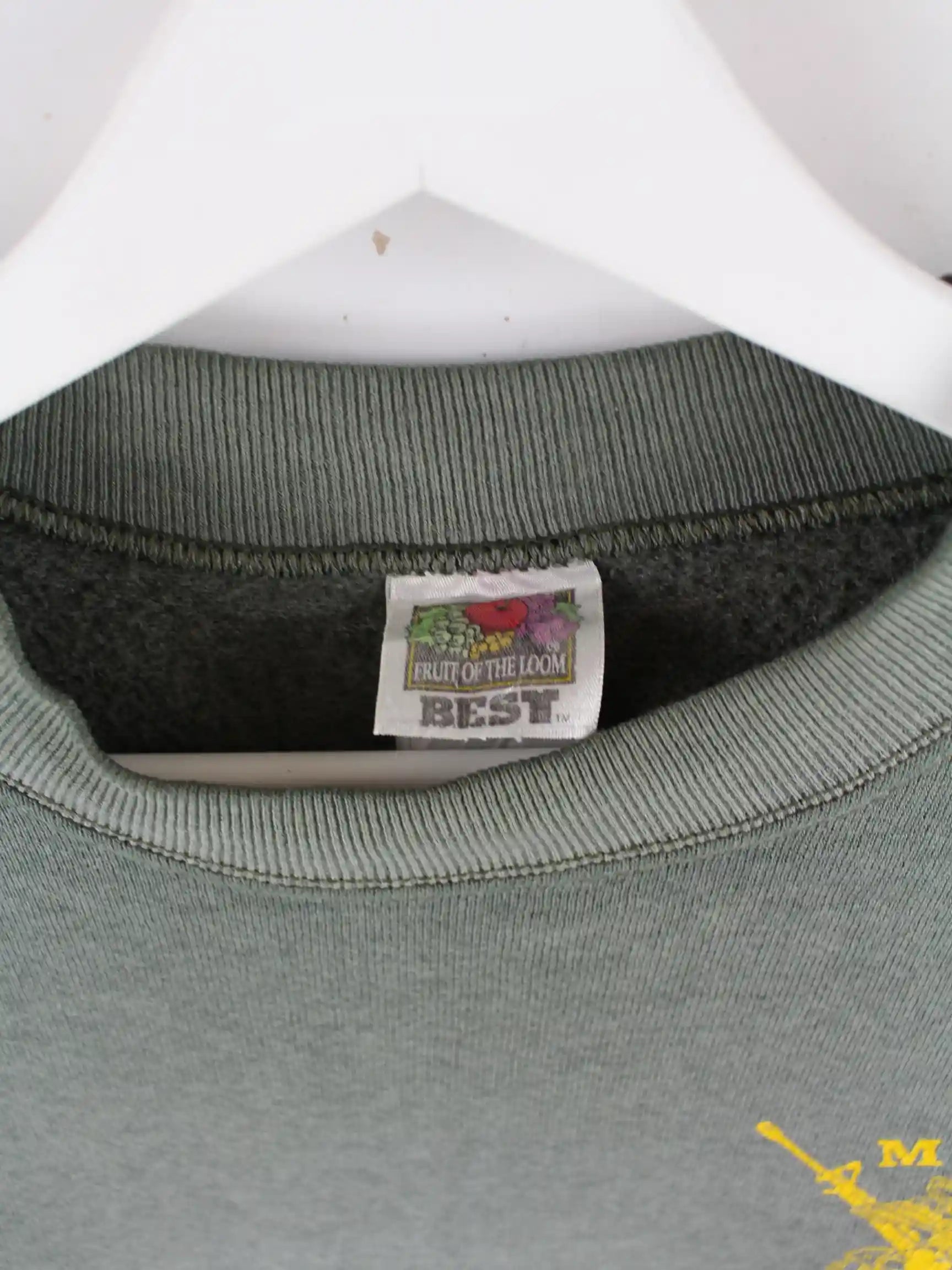Grüner Sweater aus dem Hause Fruit of the Loom aus den 90'ern in Größe XL. Er ist aus einer Baumwollmischung. Den Zustand würden wir als 'In Ordnung' bezeichnen (vergl. Bilder). Mit schickem Vintage Print.
