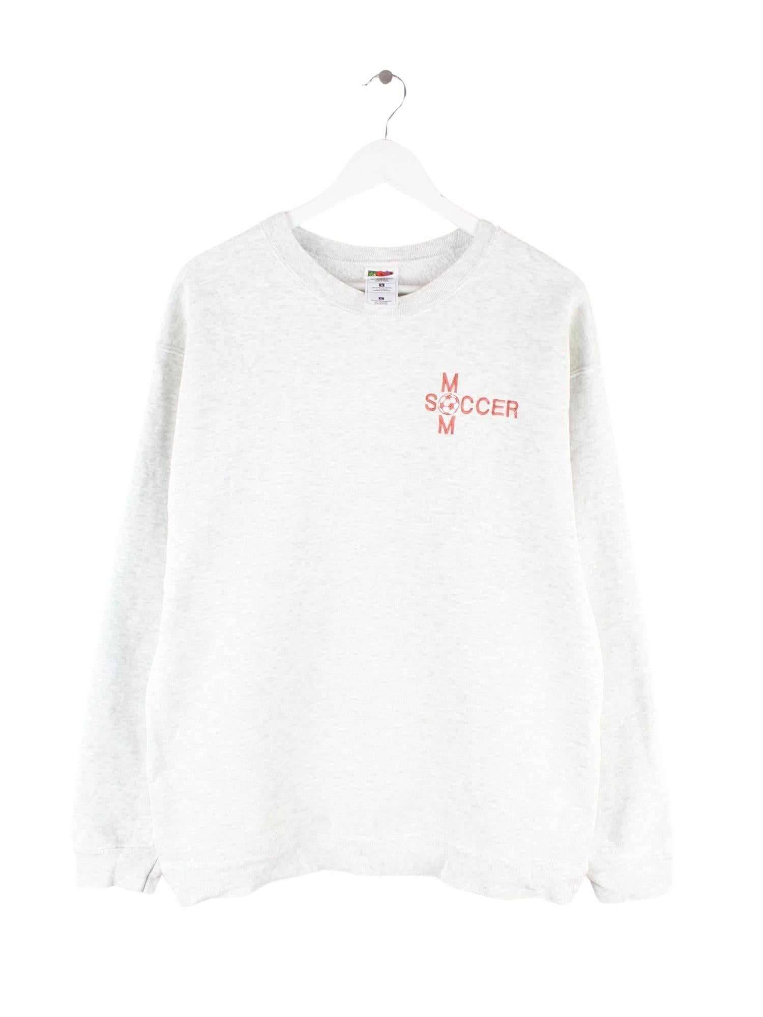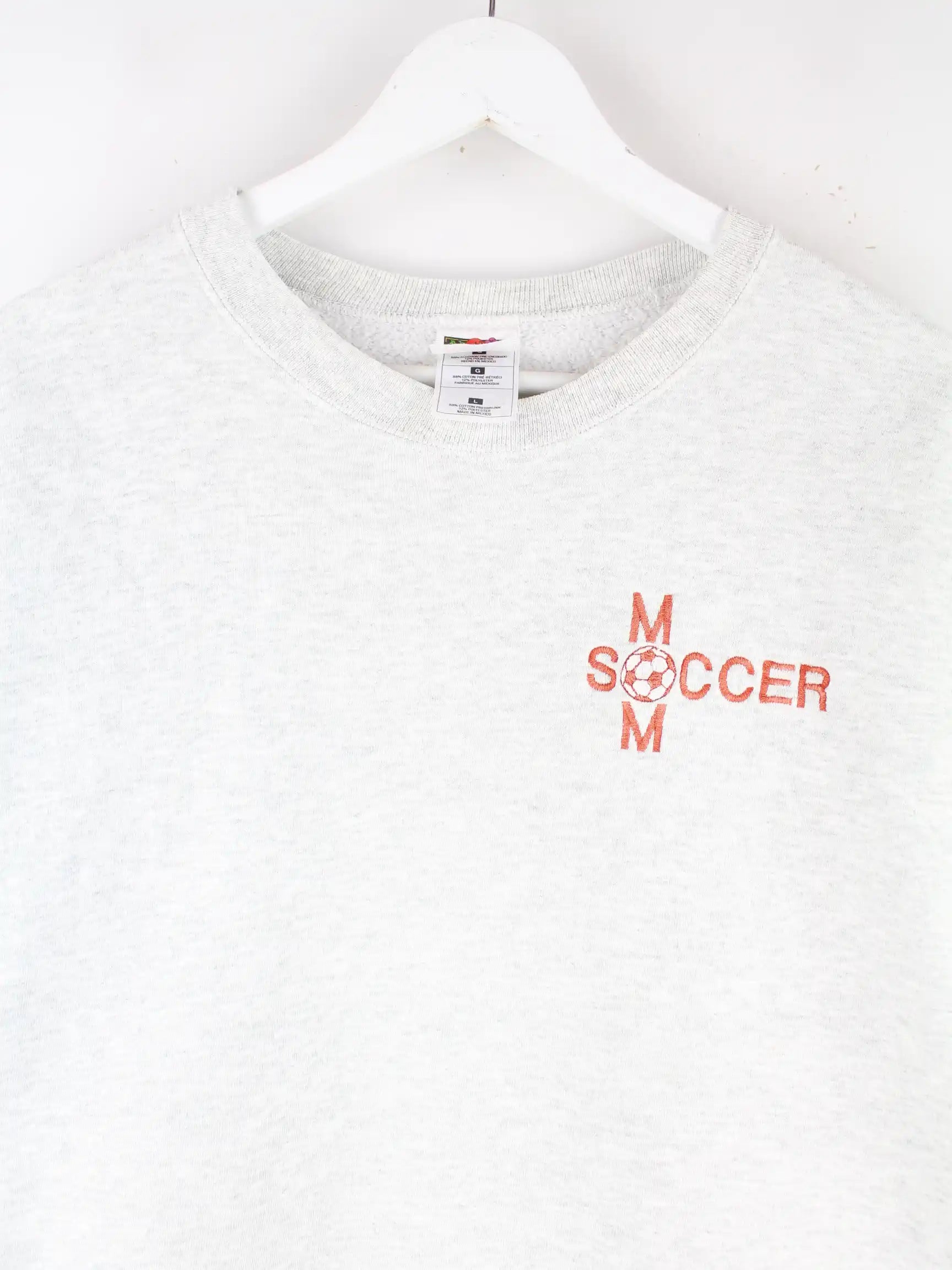 Fruit of the Loom 90s Vintage Soccer Embroidered Heavy Sweater Grau L