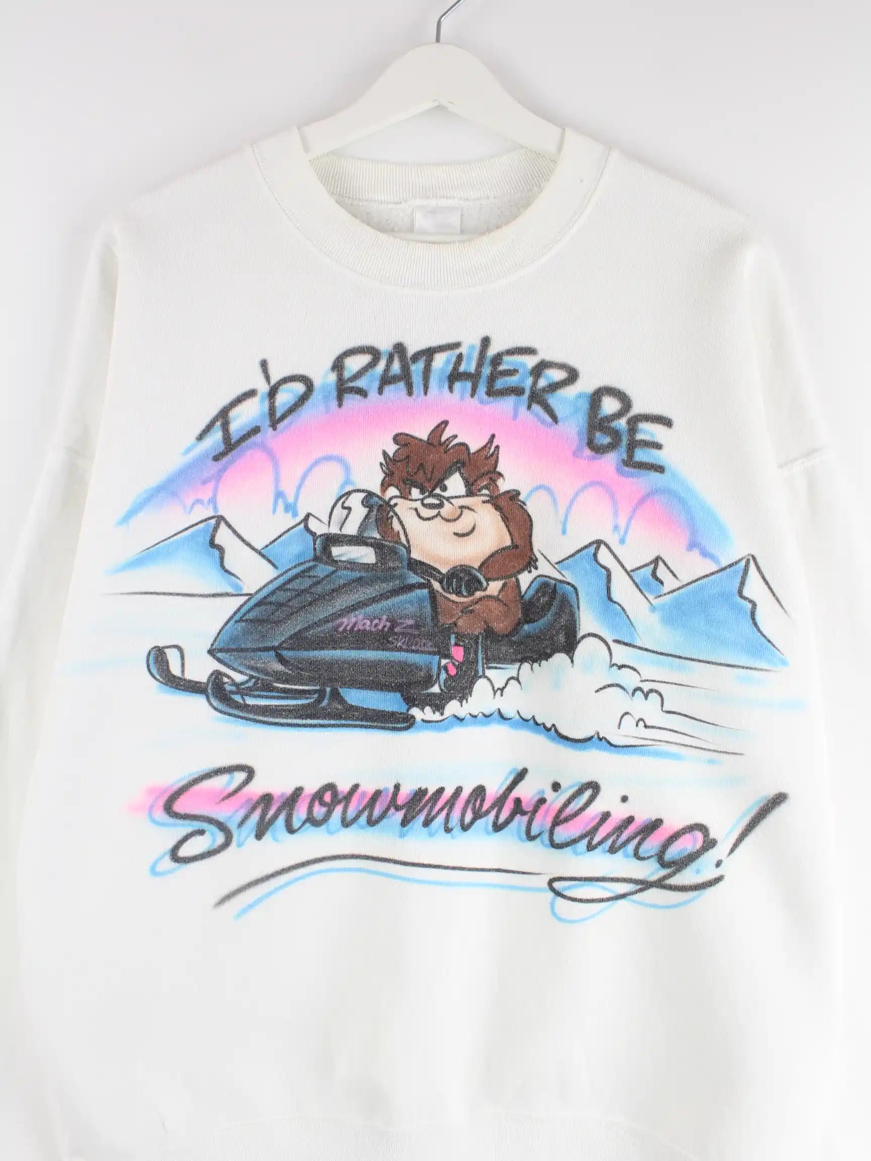 Fruit of the Loom 90s Vintage Taz Print Sweater Weiß XXL