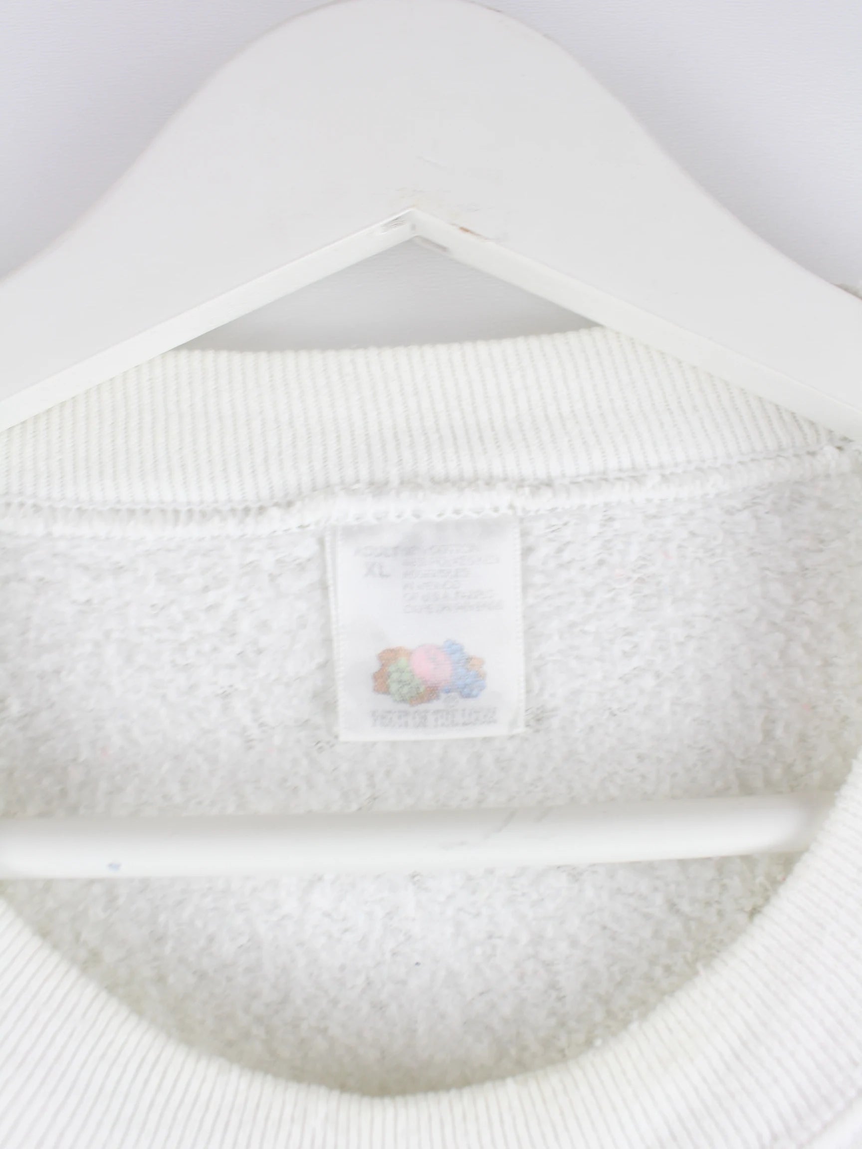 Sweater des Labels Fruit of the Loom in Größe XXL aus den 90'ern. Er ist aus einer Baumwollmischung gefertigt und in Weiß zu bekommen. Mit schönem Taz Print.
