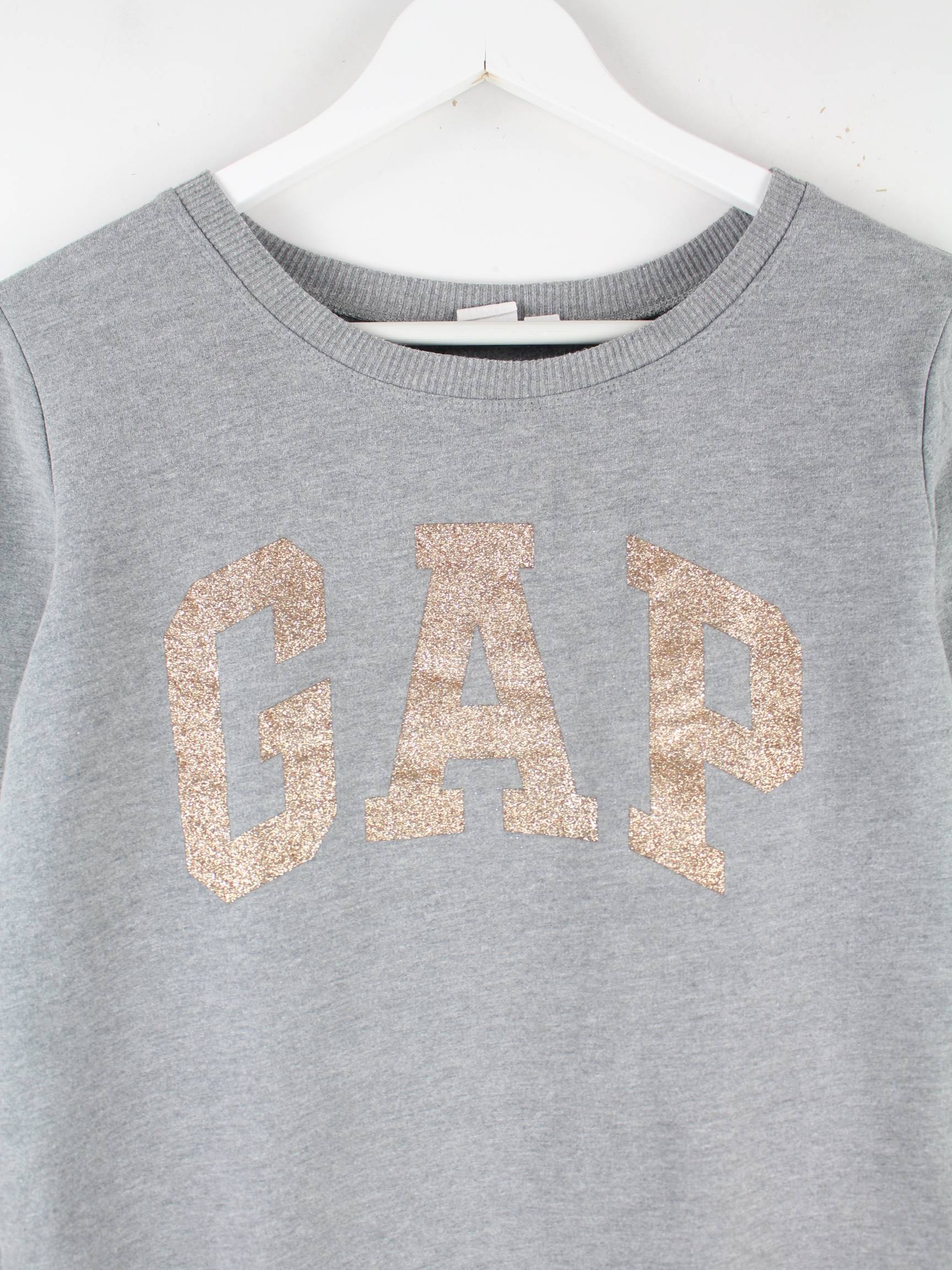 Sweater der Marke GAP in Größe XS. Er ist aus einer Baumwollmischung hergestellt und in Grau bei uns vorrätig. Mit schönem Glitter Print.
