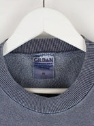 Grauer Sweater aus dem Hause Gildan aus den 90'ern in Größe L. Er ist aus einer Baumwollmischung gemacht und in gutem Zustand vorrätig.