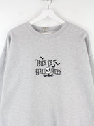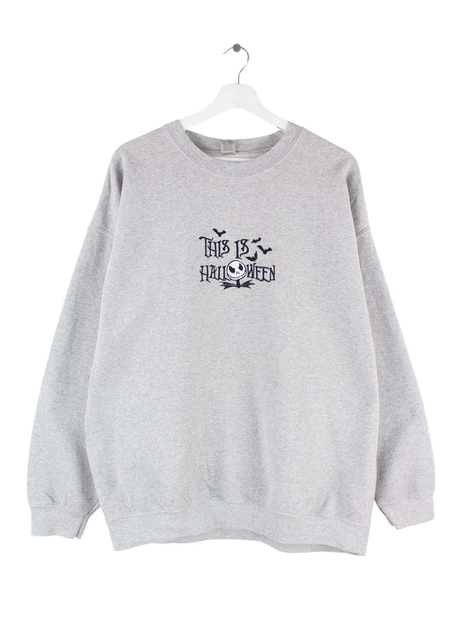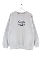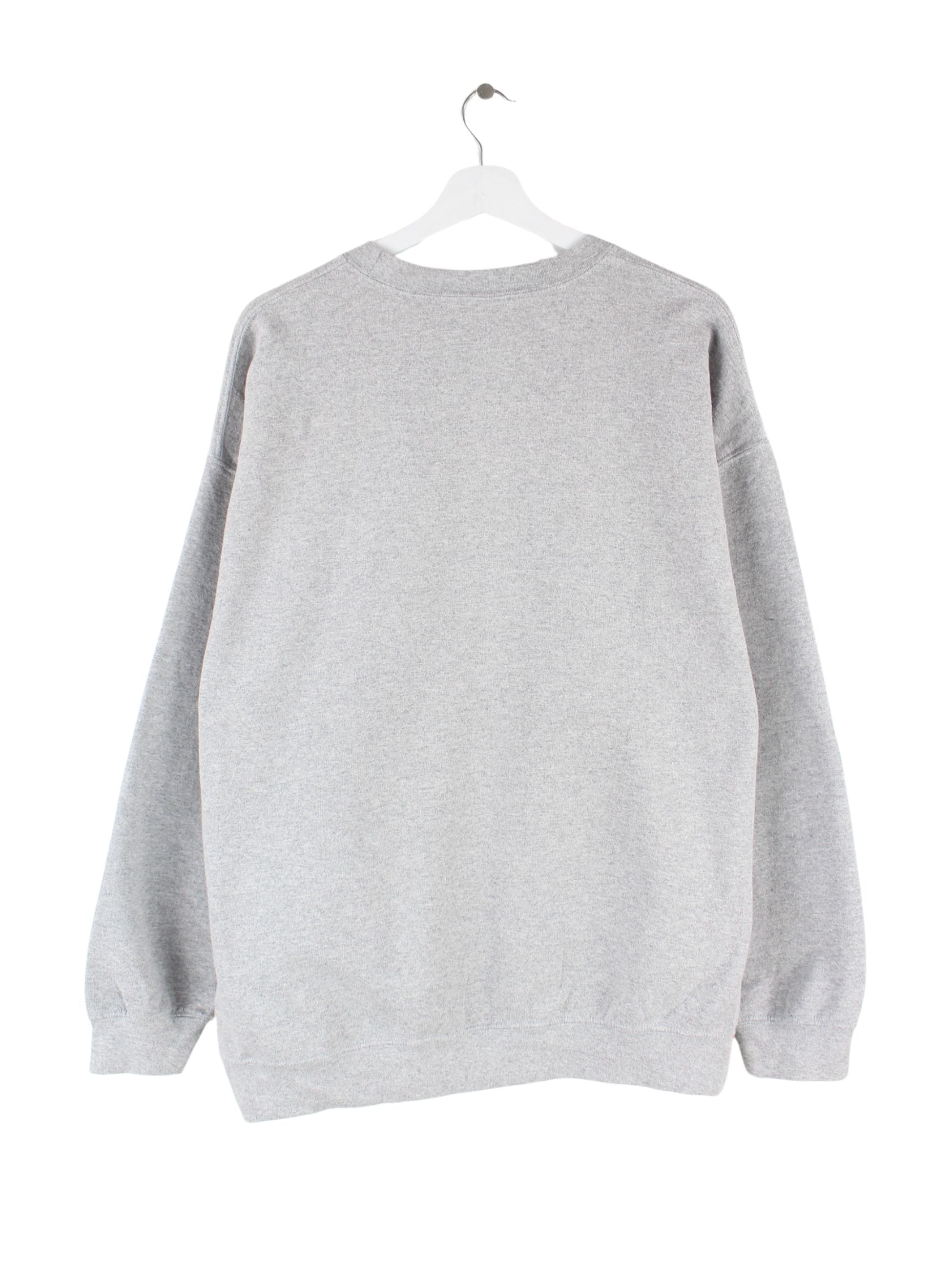 Grauer Sweater mit gesticktem Logo der Marke Gildan in Größe L. Er ist aus einer Baumwollmischung angefertigt und in sehr gutem Zustand bei uns vorrätig.