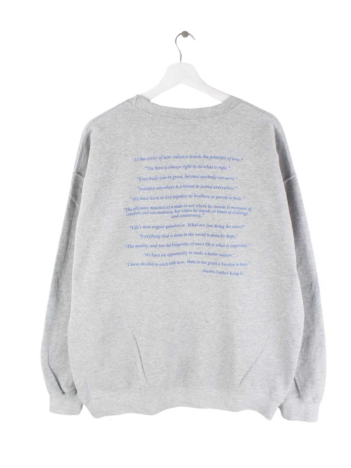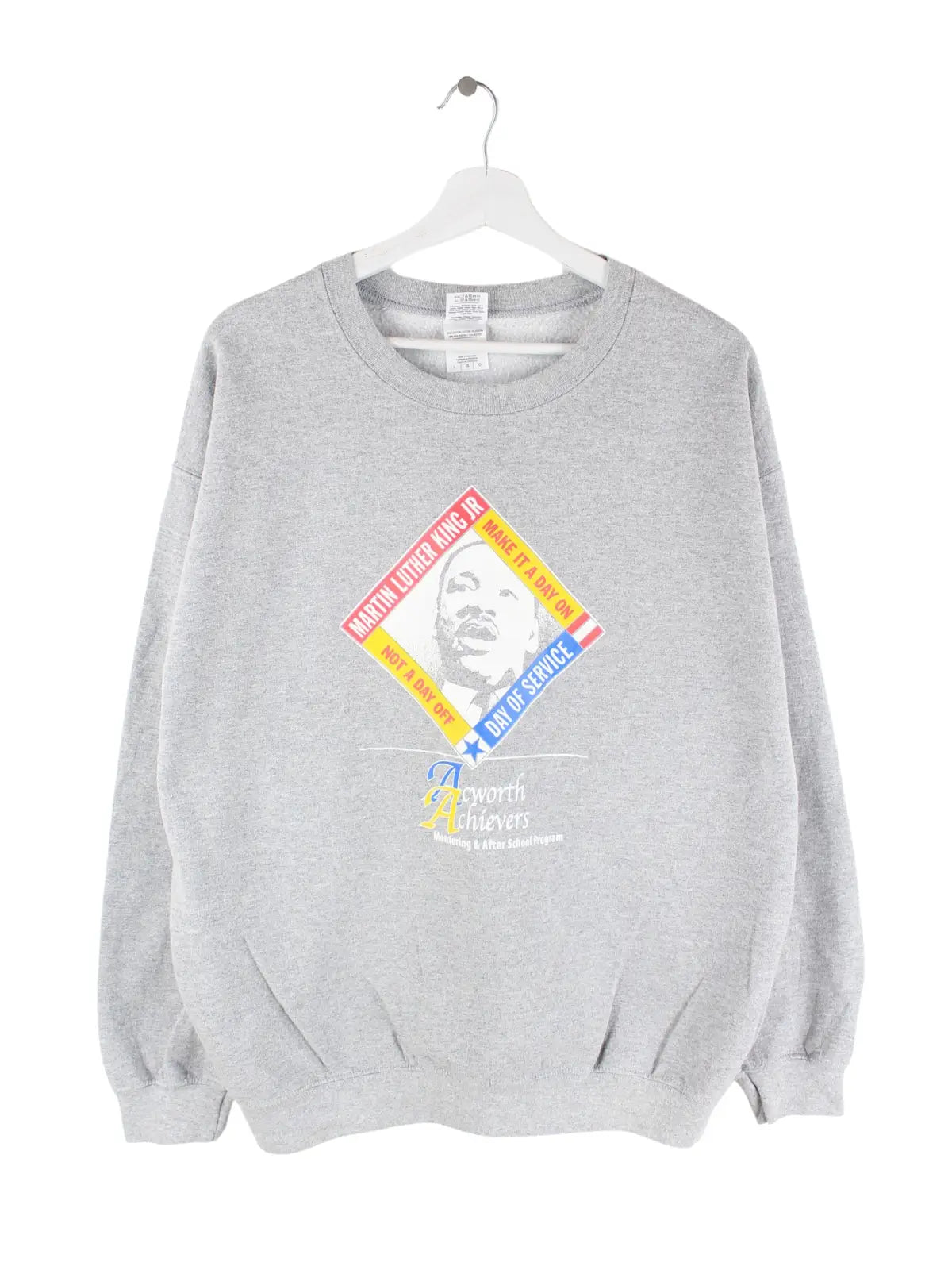 Grauer Sweater von Gildan in Größe L. Er ist aus einer Baumwollmischung gemacht und in sehr gutem Zustand vorrätig. Mit seltenem King Print.