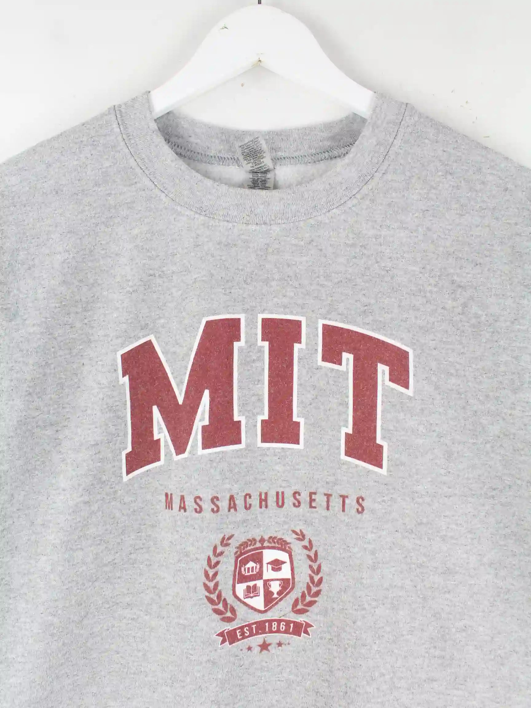 Sweater von Gildan in Größe S. Er ist aus einer Baumwollmischung und in Grau bei uns vorrätig. Mit seltenem University Print.