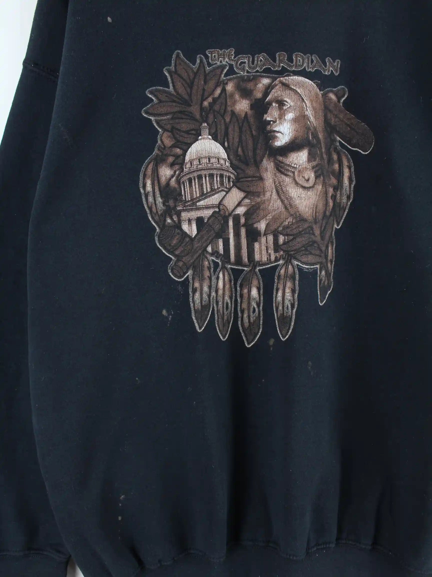 Sweater vom Brand Gildan in Größe L. Er ist aus einer Baumwollmischung gefertigt und in Schwarz zu bekommen. Mit tollem Guardian Print.