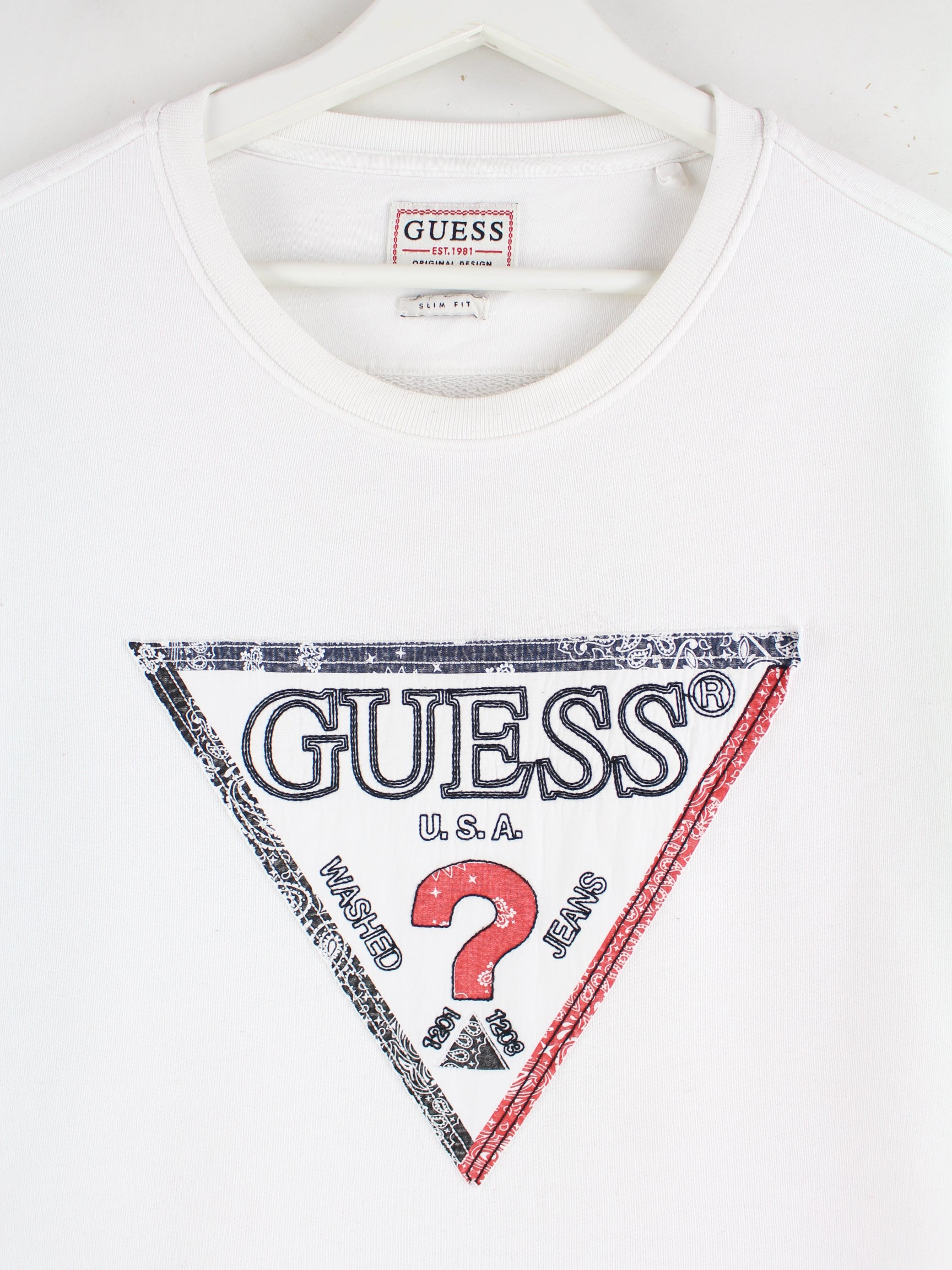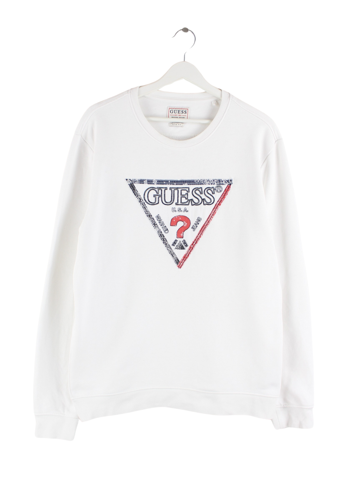 Sweater der Marke Guess in Größe L. Er ist aus einer Baumwollmischung angefertigt und in Weiß in Stock.