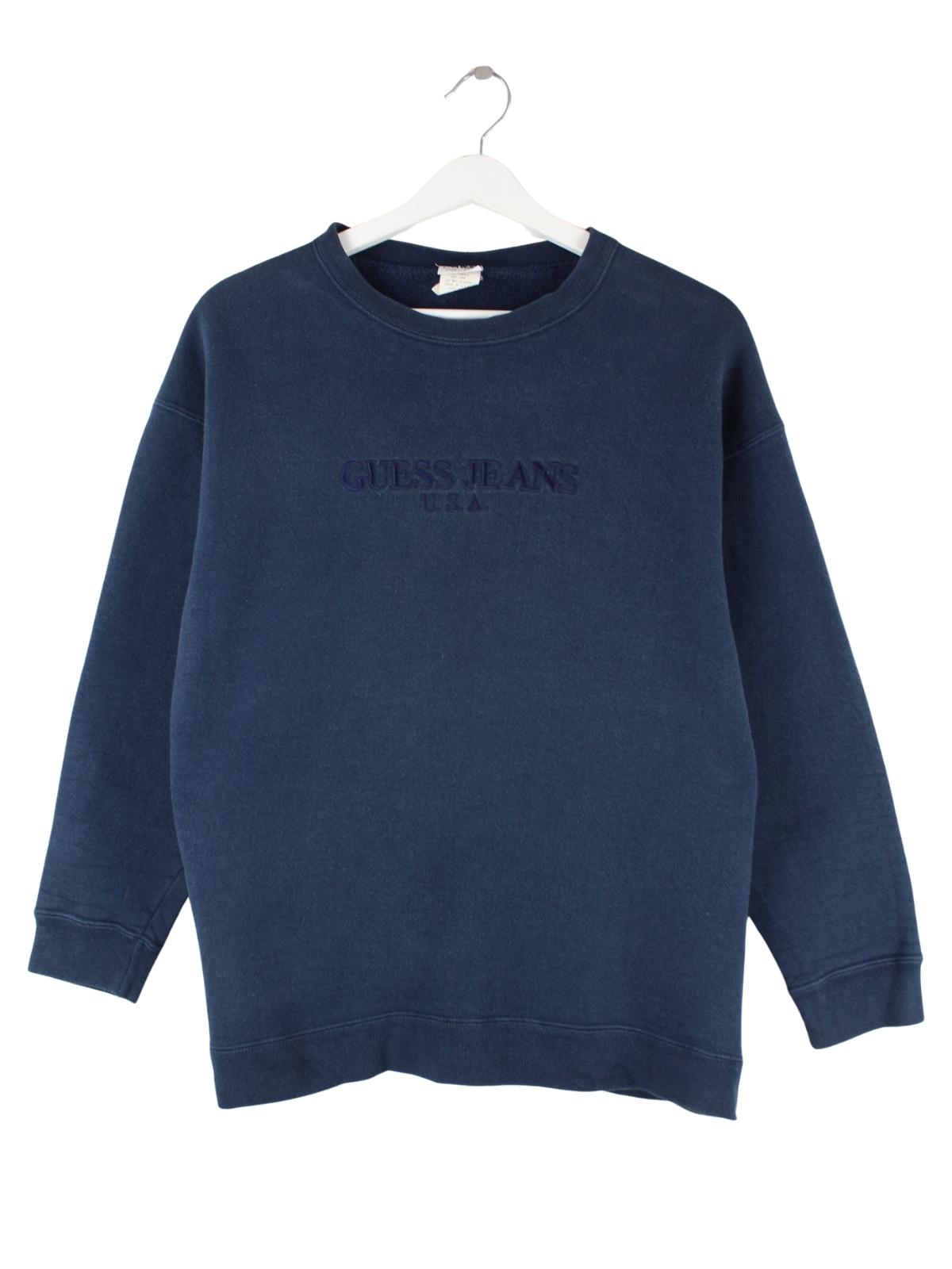 Guess Damen 90s Vintage Big Logo Sweater Blau M