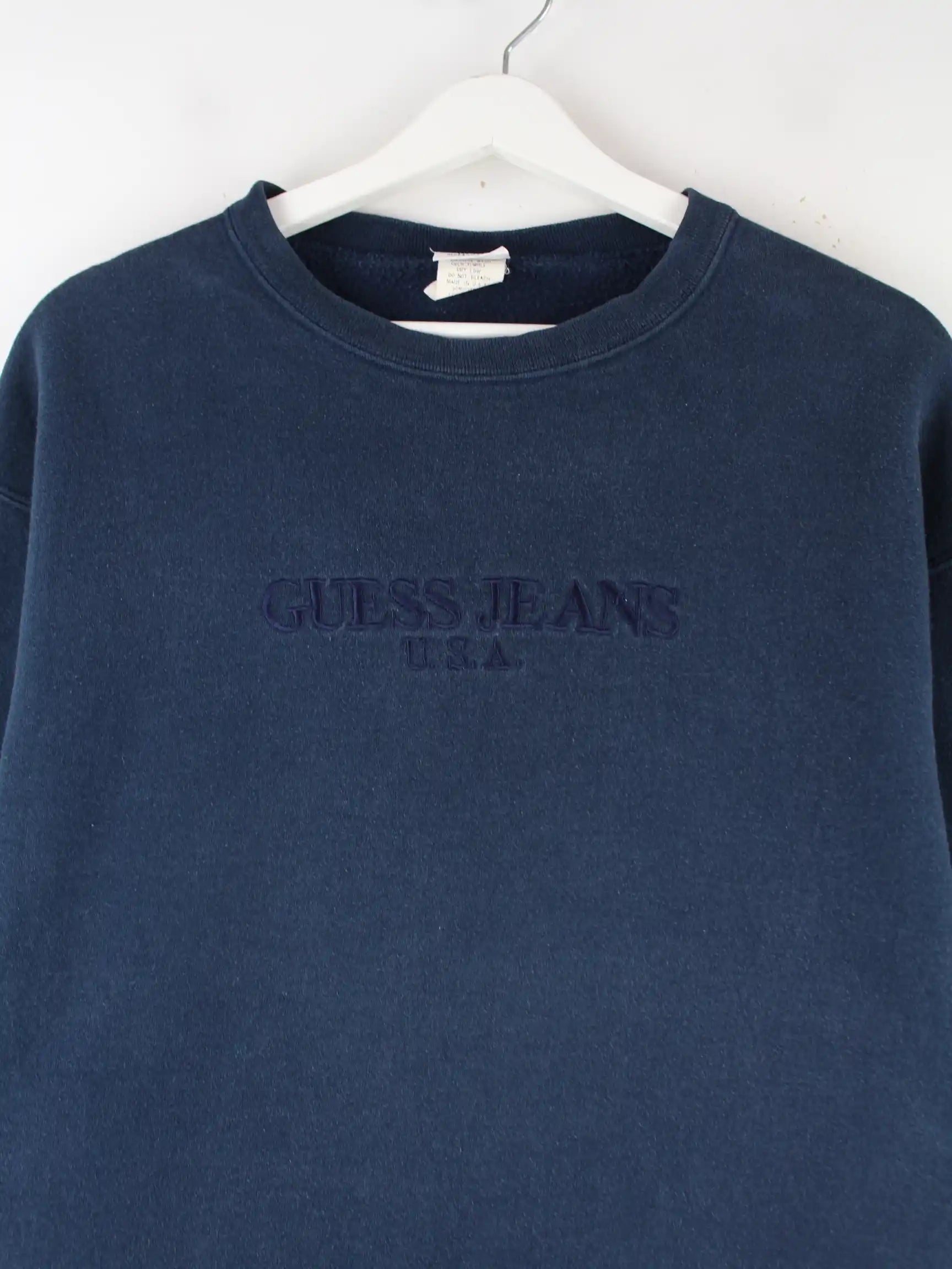 Blauer Sweater des Labels Guess aus den 90'ern in Größe M. Er ist aus einer Baumwollmischung und in sehr gutem Zustand zu haben.