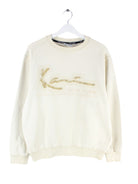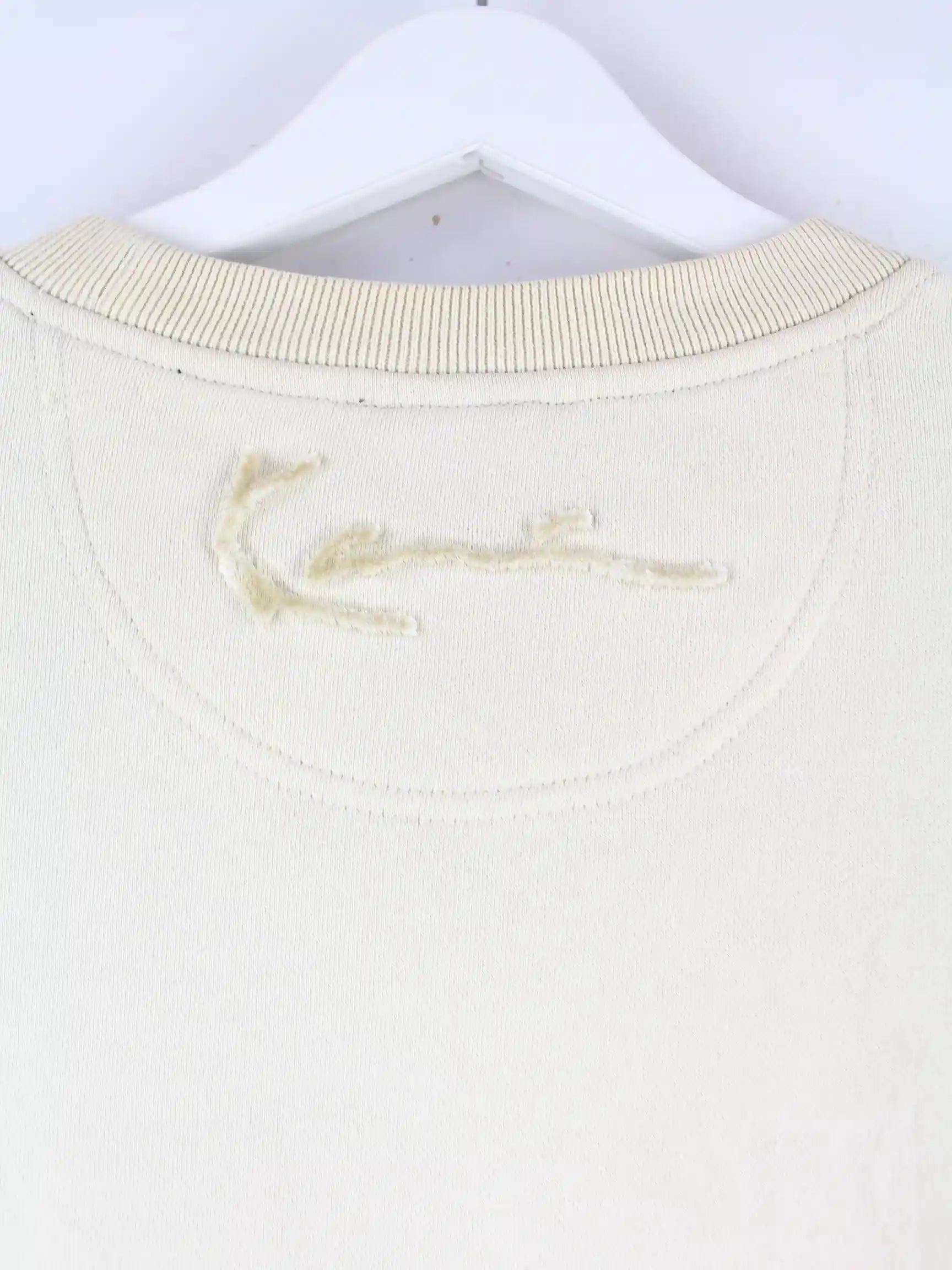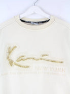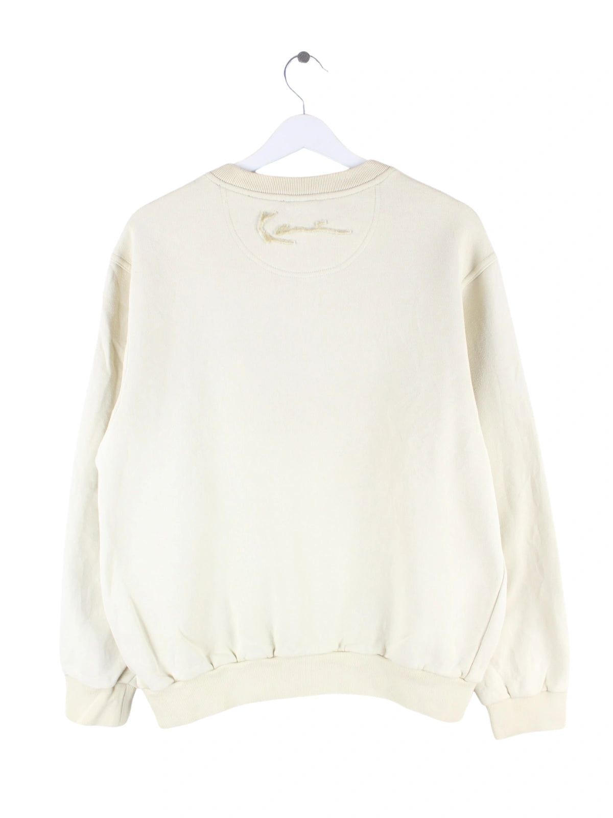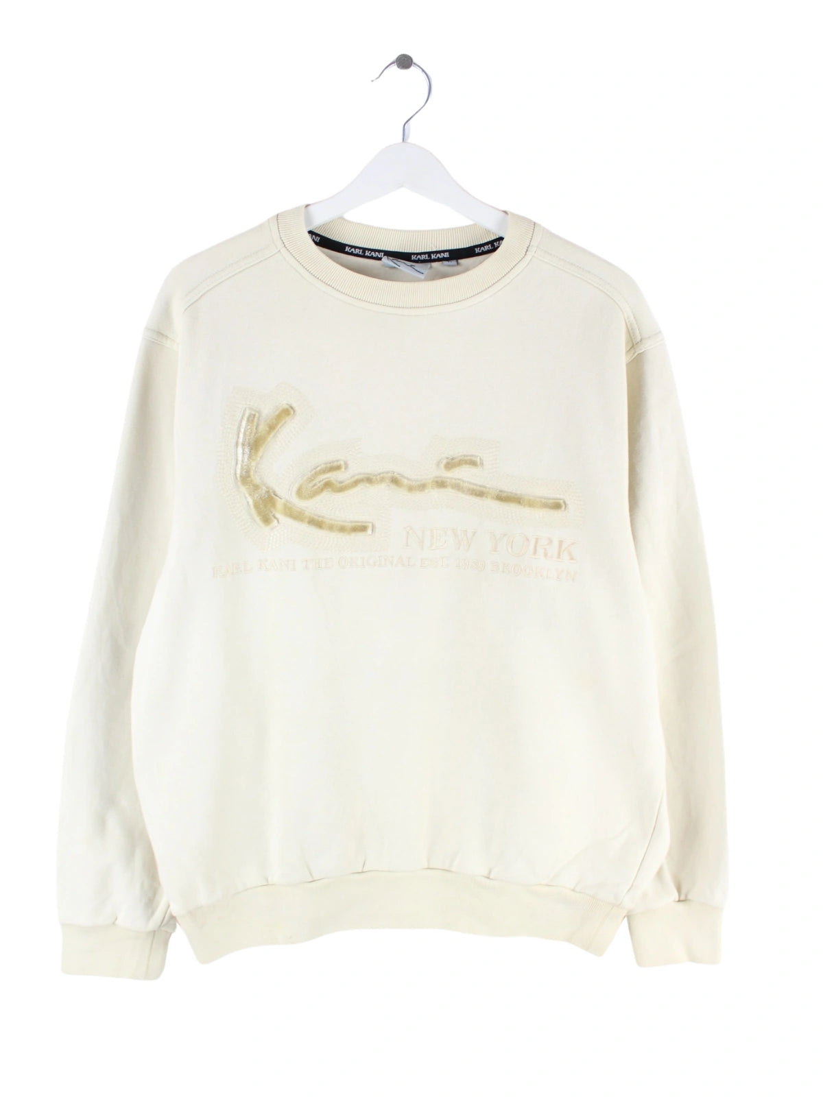 Beigefarbener Sweater mit gesticktem Logo der Brand Karl Kani aus Anfang der 2000'er in Größe M. Er ist aus einer Baumwollmischung gefertigt und in sehr gutem Zustand zu bekommen.