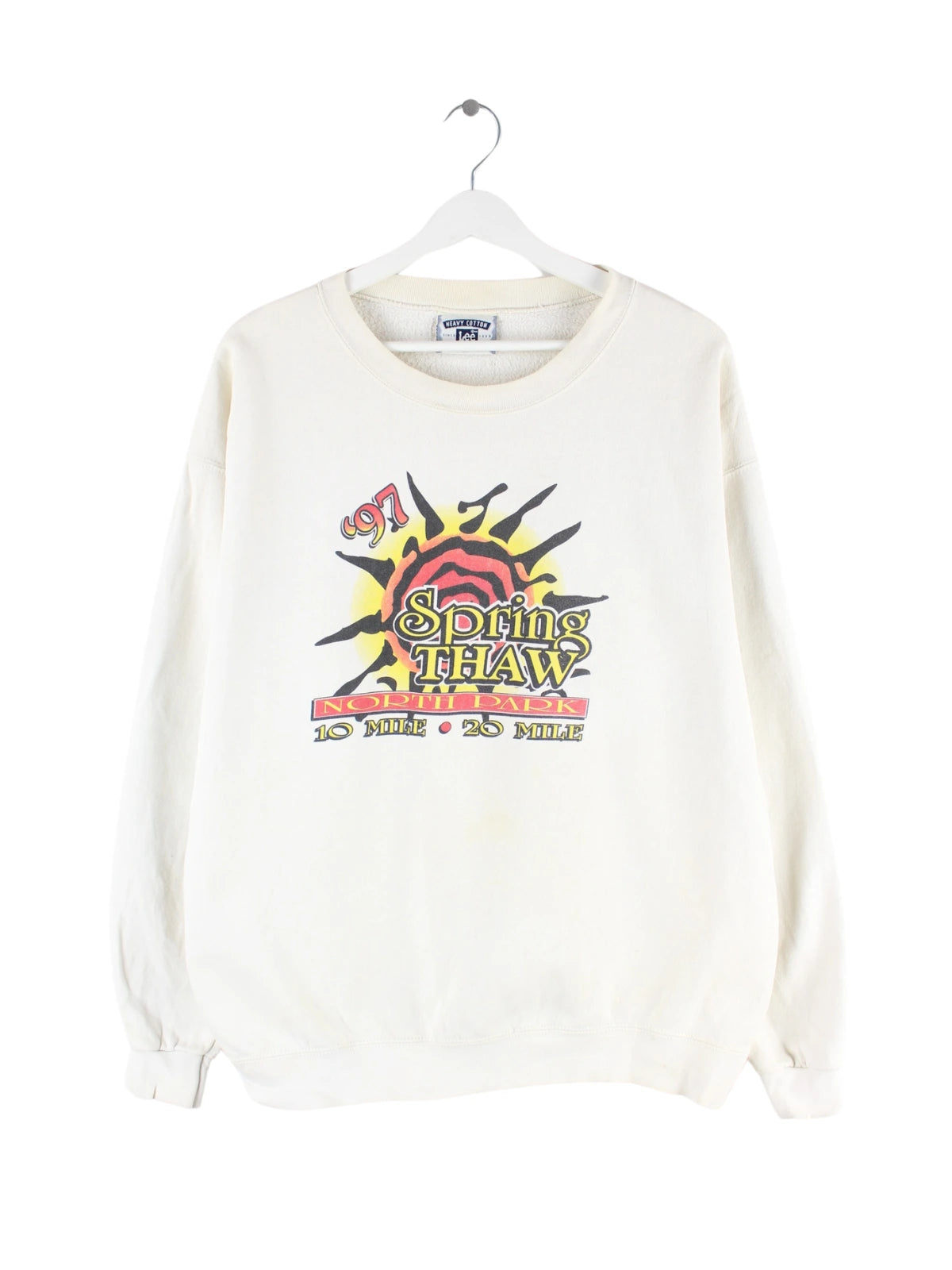 Sweater vom Brand Lee in Größe L. Er ist aus einer Baumwollmischung hergestellt und in Beige vorrätig. Mit seltenem Vintage Print.