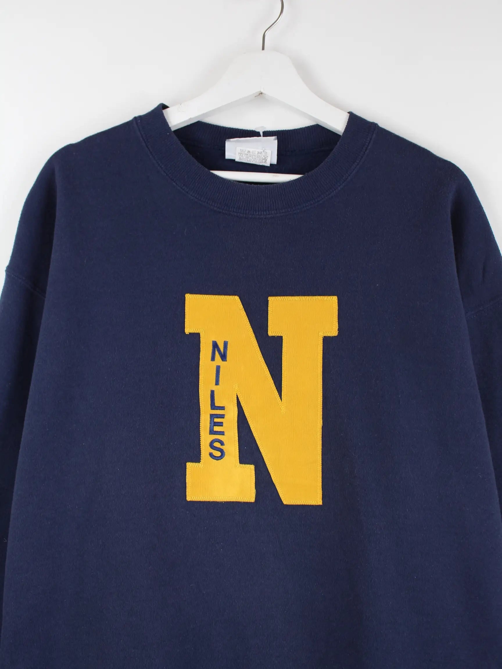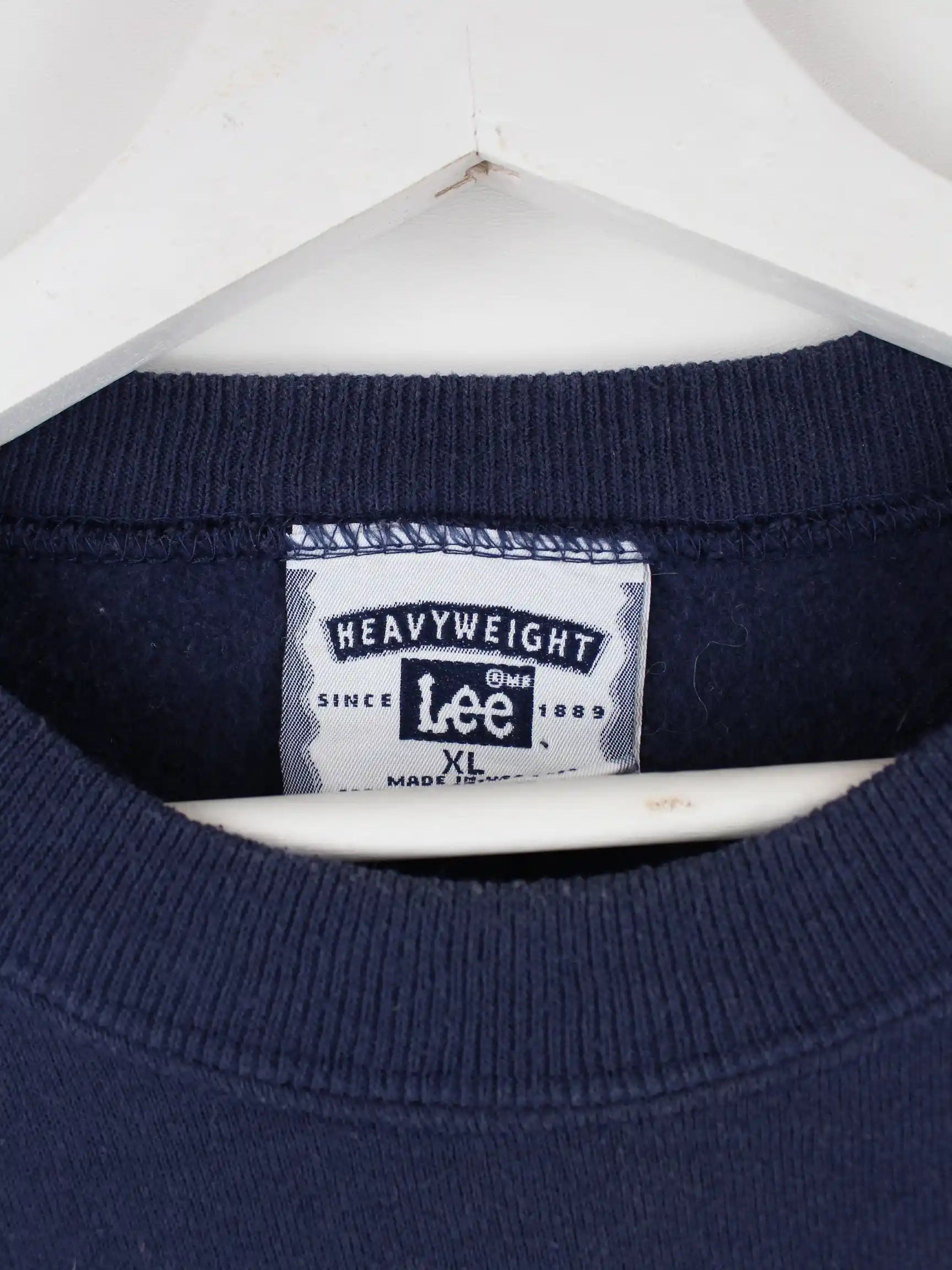 Blauer Sweater aus dem Hause Lee aus den 90'ern in Größe XL. Er ist aus einer Baumwollmischung und in gutem Zustand bei uns zu bekommen.