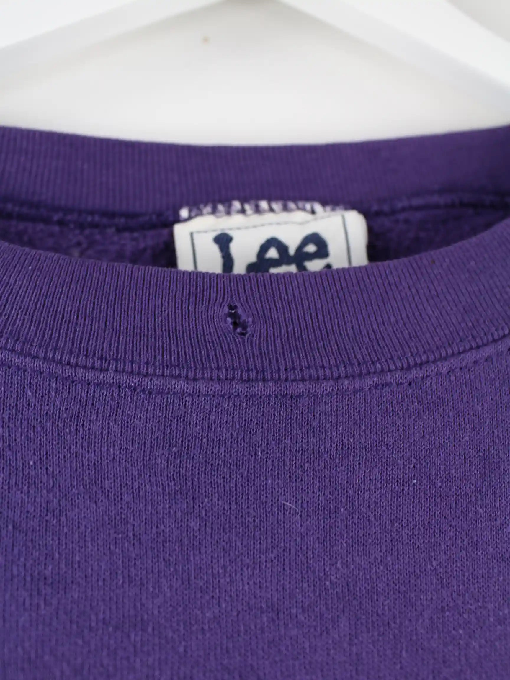 Lilafarbener Sweater mit gesticktem Logo von Lee aus den 90'ern in Größe L. Er ist aus einer Baumwollmischung gemacht. Den Zustand würden wir als 'In Ordnung' bezeichnen (vergl. Bilder).