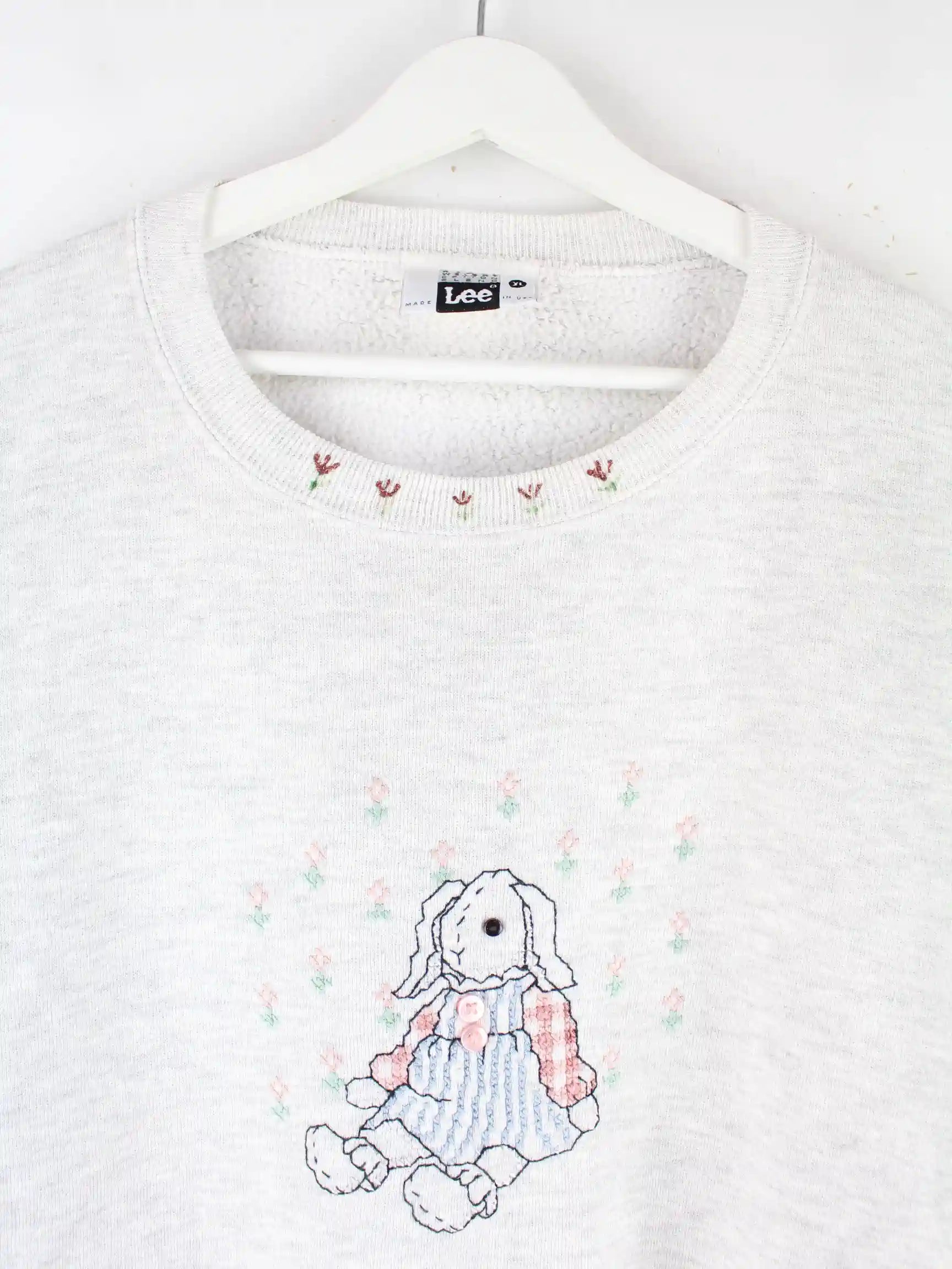 Lee Damen 90s Vintage Doll Embroidered Sweater Grau XL