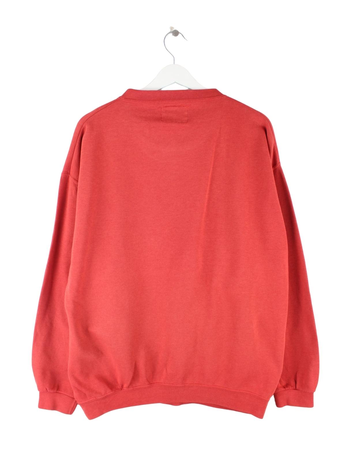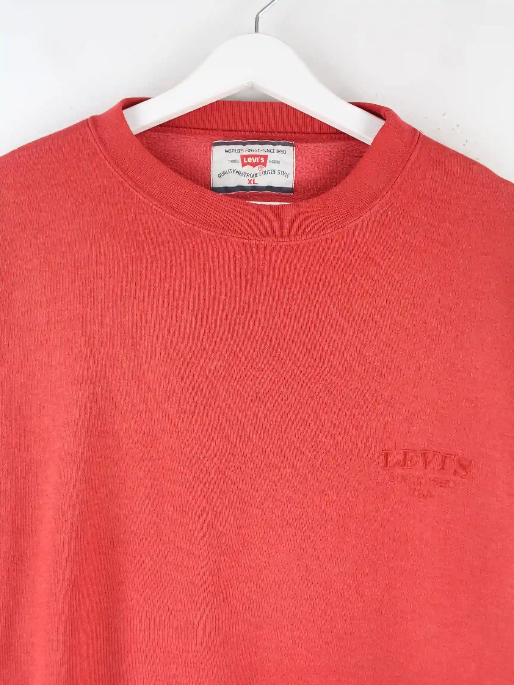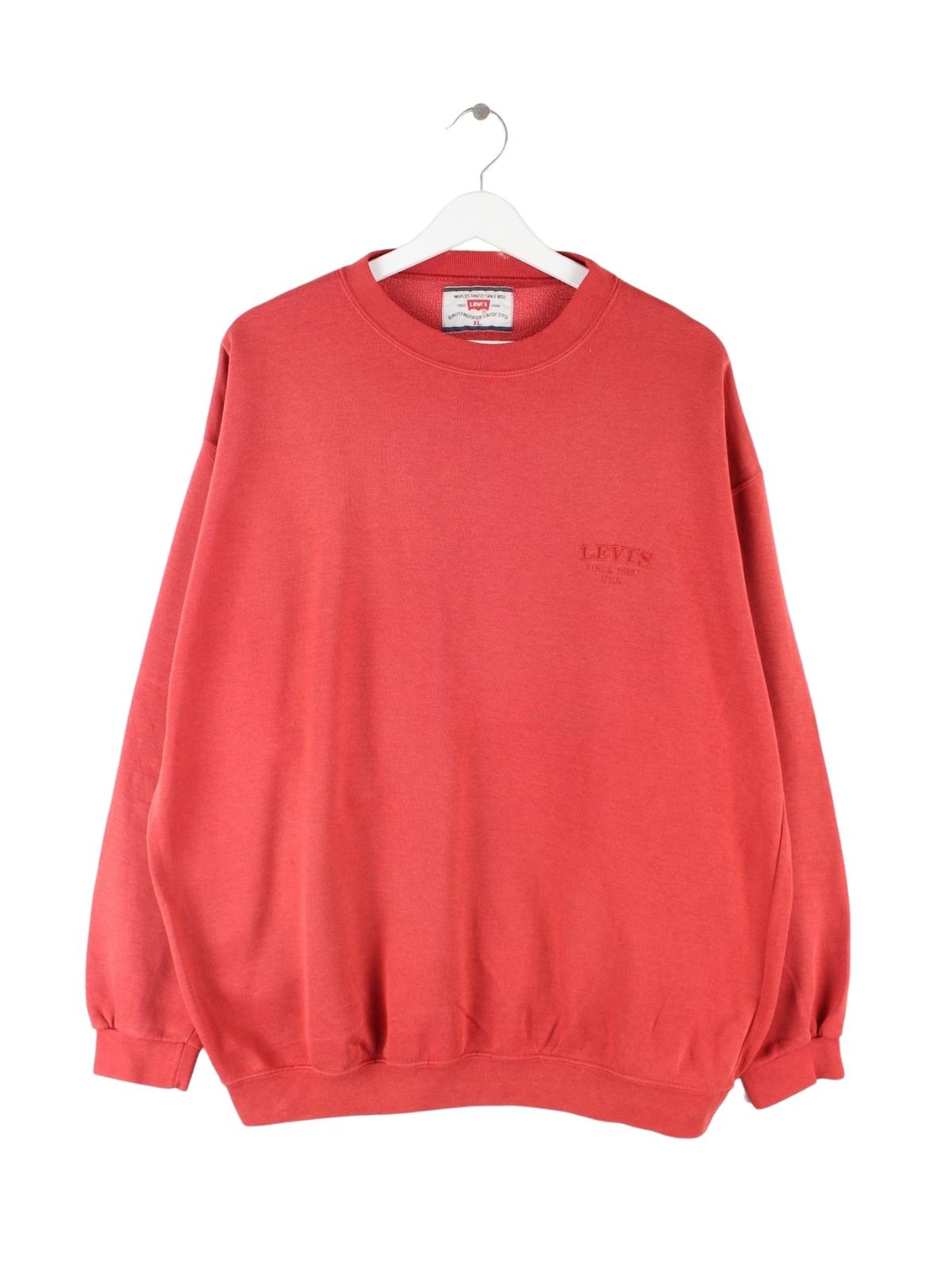 Roter Sweater der Brand Levi's aus den 90'ern in Größe XL. Er ist aus einer Baumwollmischung angefertigt und in gutem Zustand bei uns vorrätig.