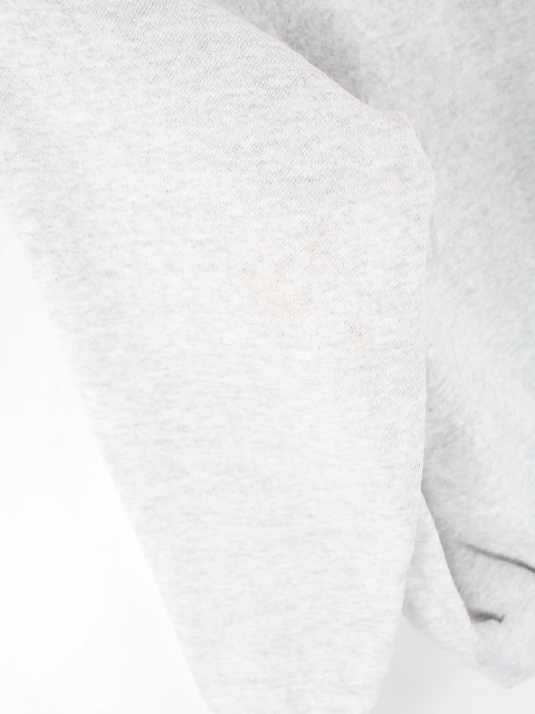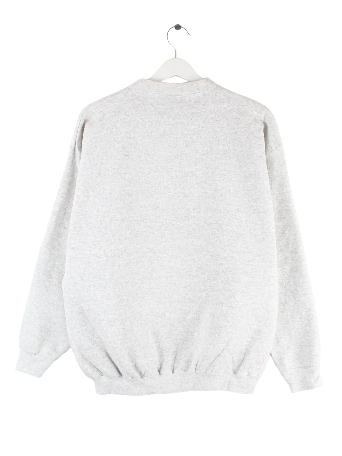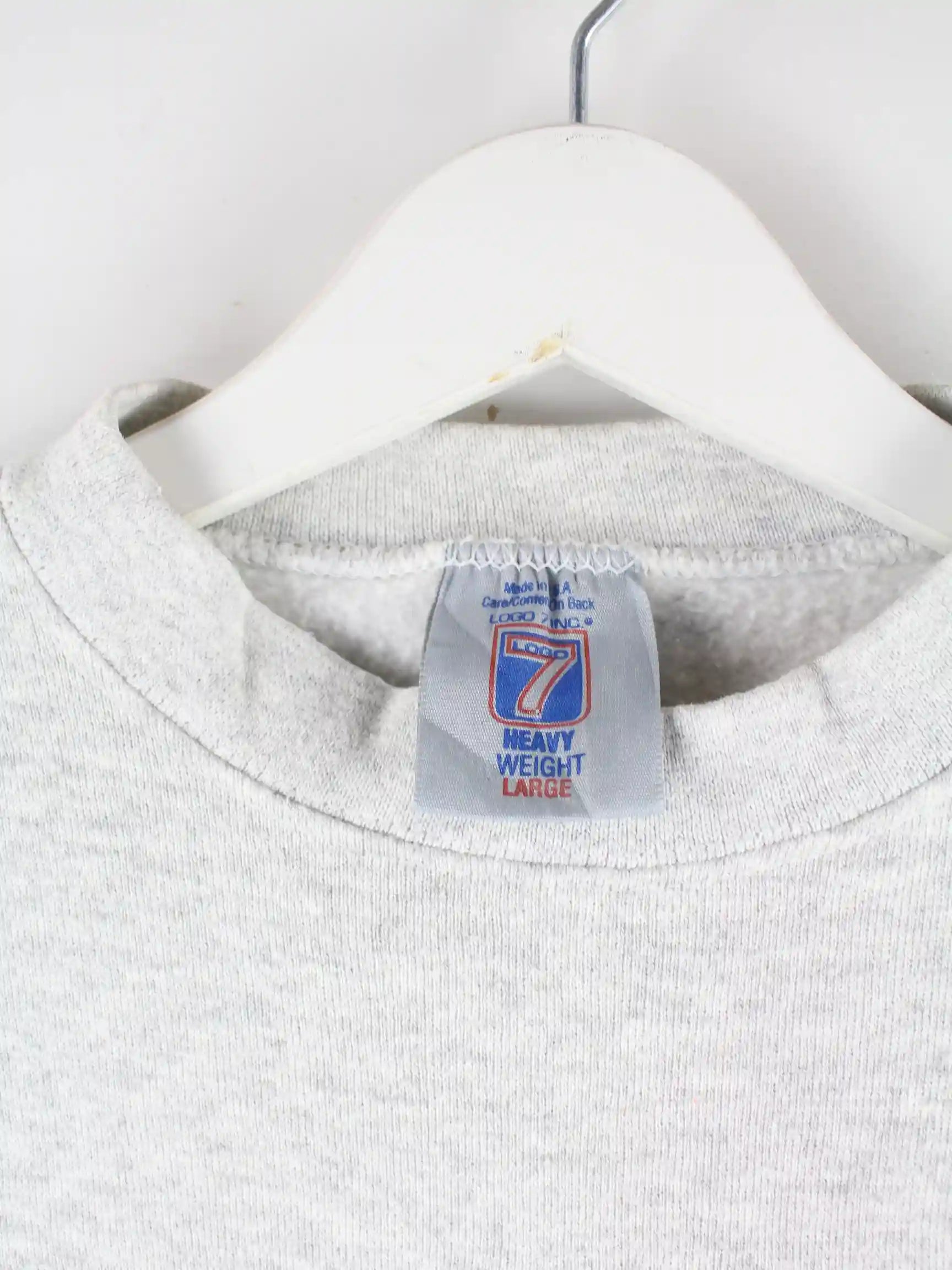 Grauer Sweater mit Stick der Marke Logo 7 aus den 90'ern in Größe L. Er ist aus einer Baumwollmischung gemacht und in gutem Zustand bei uns zu bekommen.