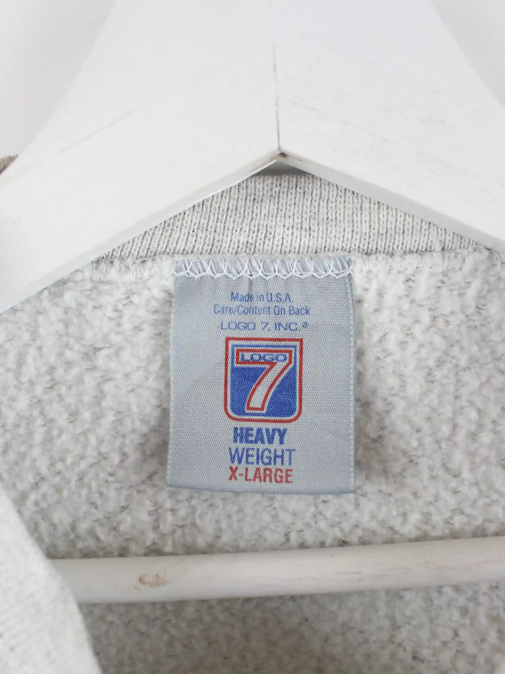Sweater von Logo 7 in Größe XL aus den 90'ern. Er ist aus einer Baumwollmischung angefertigt und in Grau bei uns vorrätig.