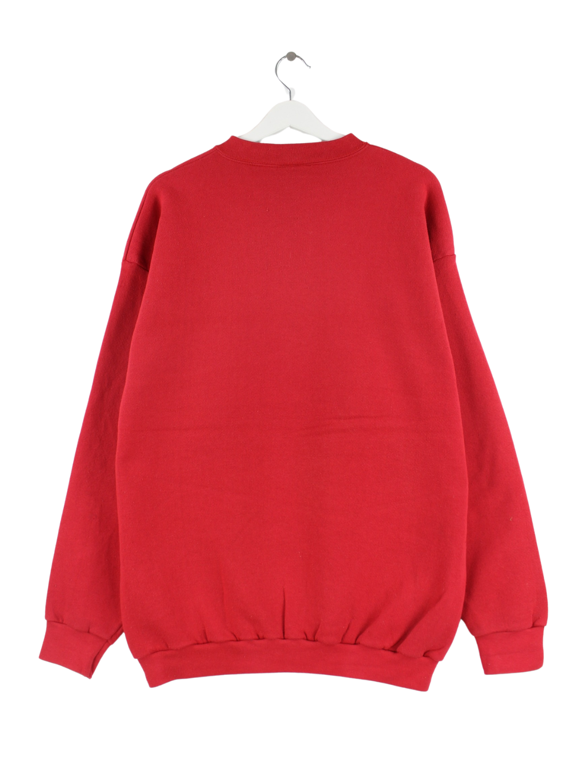 Sweater der Brand Logo 7 mit gestickten Motiven in Größe XL aus den 90'ern. Er ist aus einer Baumwollmischung und in Rot im Bestand.
