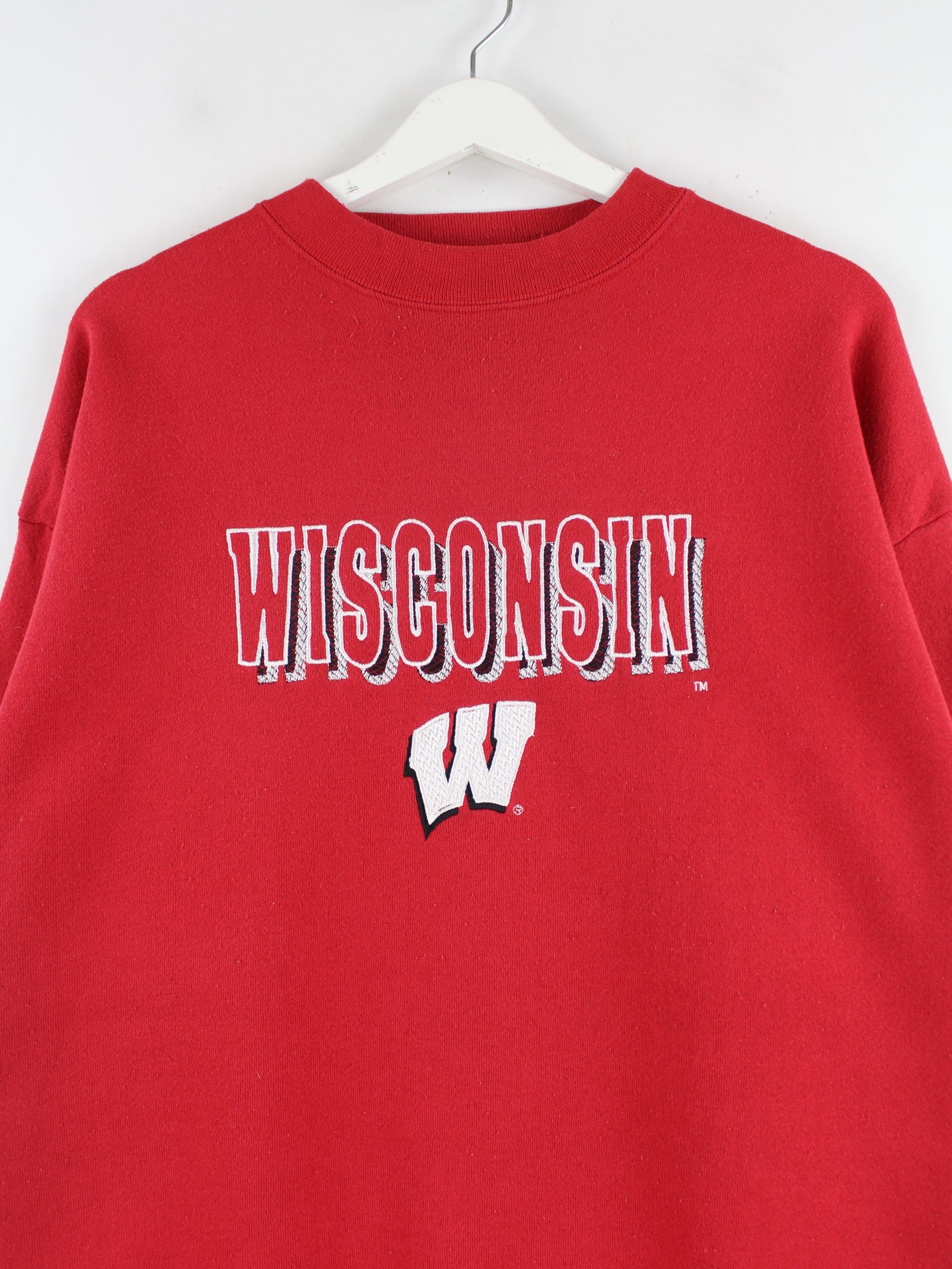 Logo 7 90s Vintage Wisconsin Embroidered Sweater Rot XL