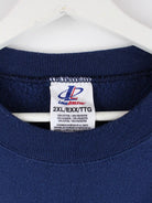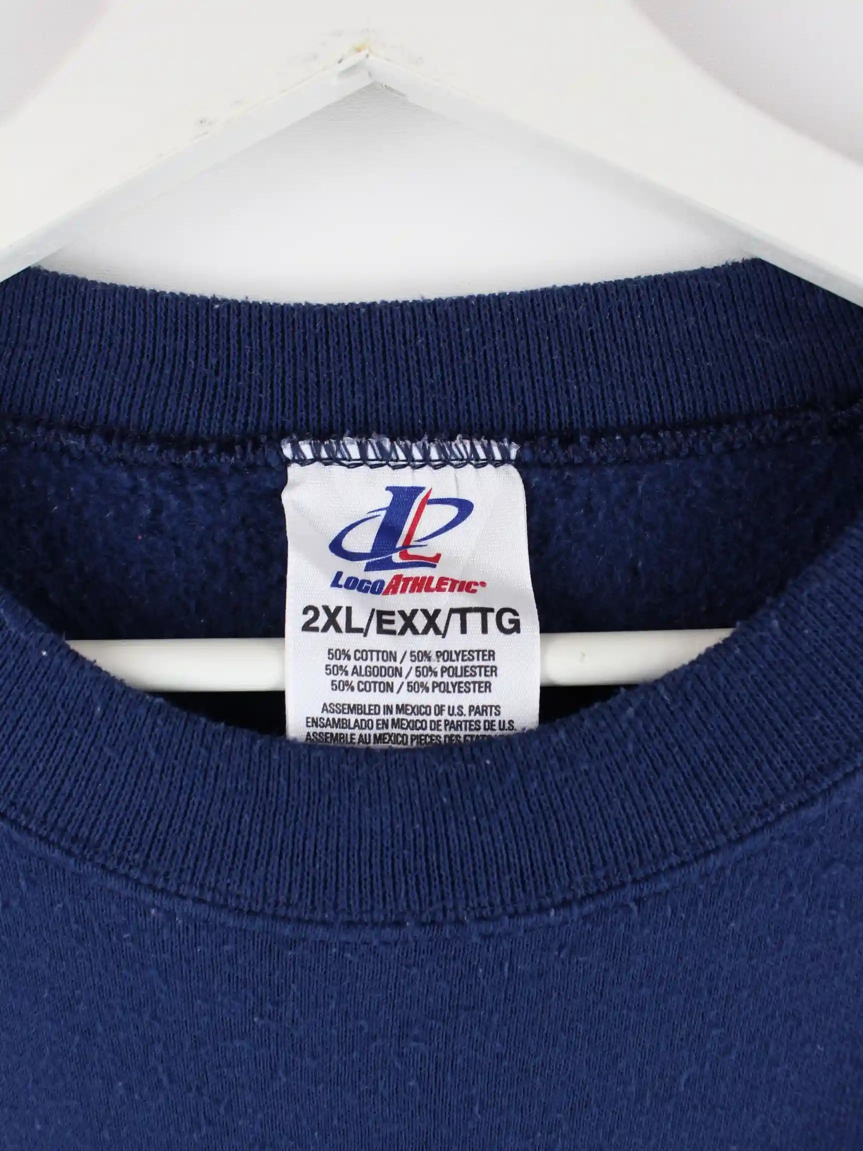 Blauer Sweater vom Brand Logo Athletic aus den 90'ern in Größe XXL. Er ist aus einer Baumwollmischung hergestellt und in gutem Zustand in Stock.