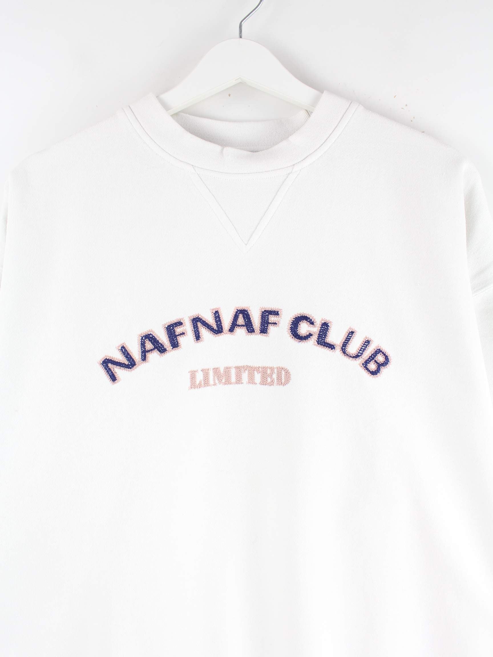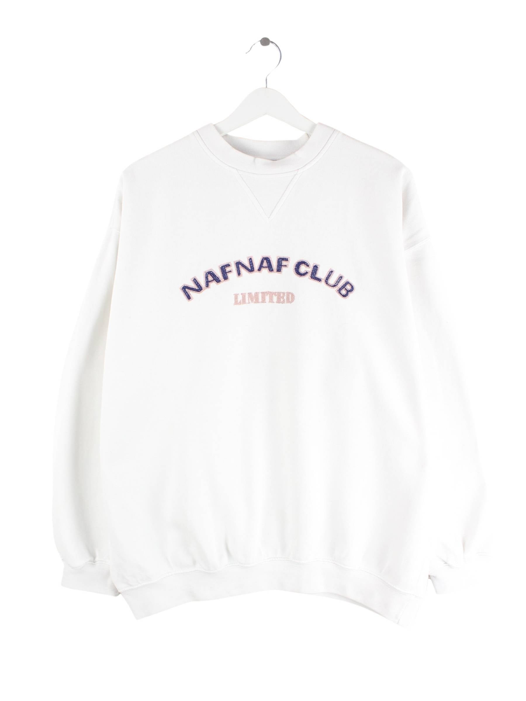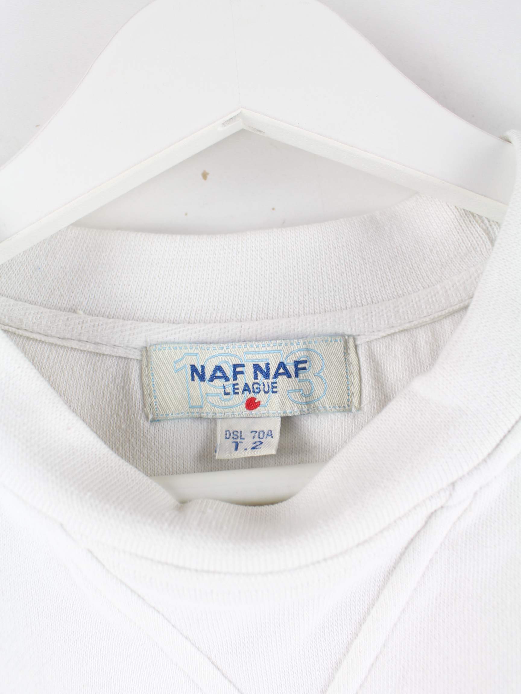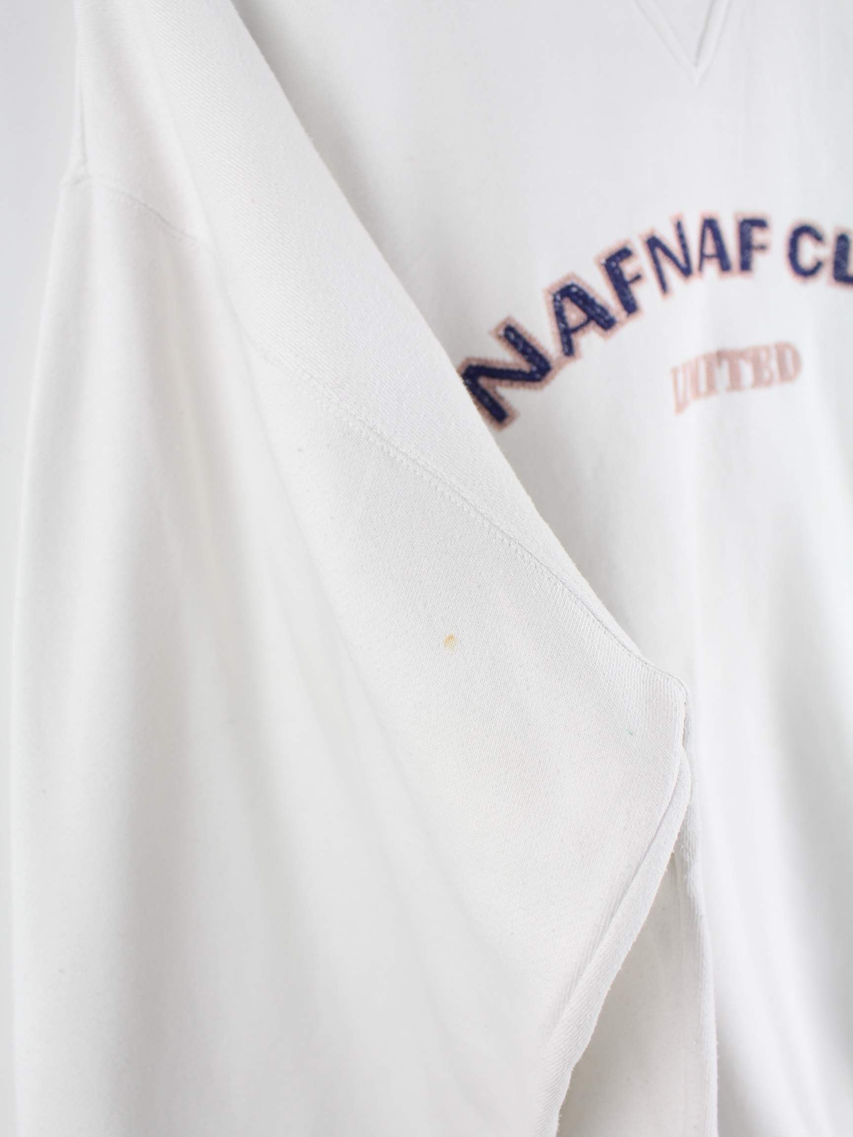 Weißer Sweater mit Stick vom Brand Naf Naf aus den 90'ern in Größe L. Er ist aus einer Baumwollmischung und in gutem Zustand im Angebot.