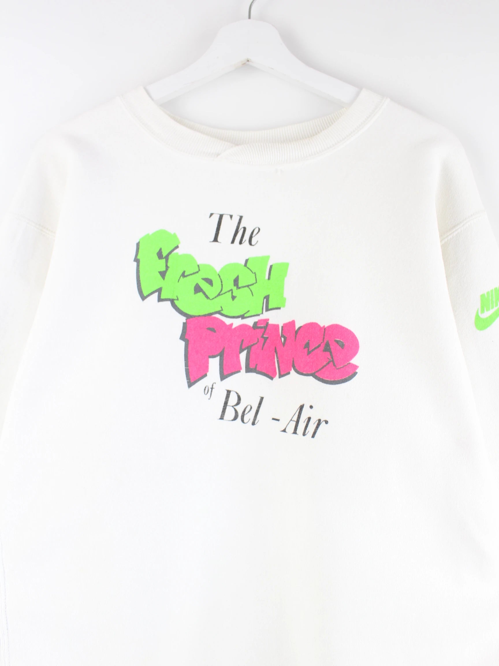 Nike 80s Vintage Silver Tag Prince Of Bel Air Print Sweater Weiß L