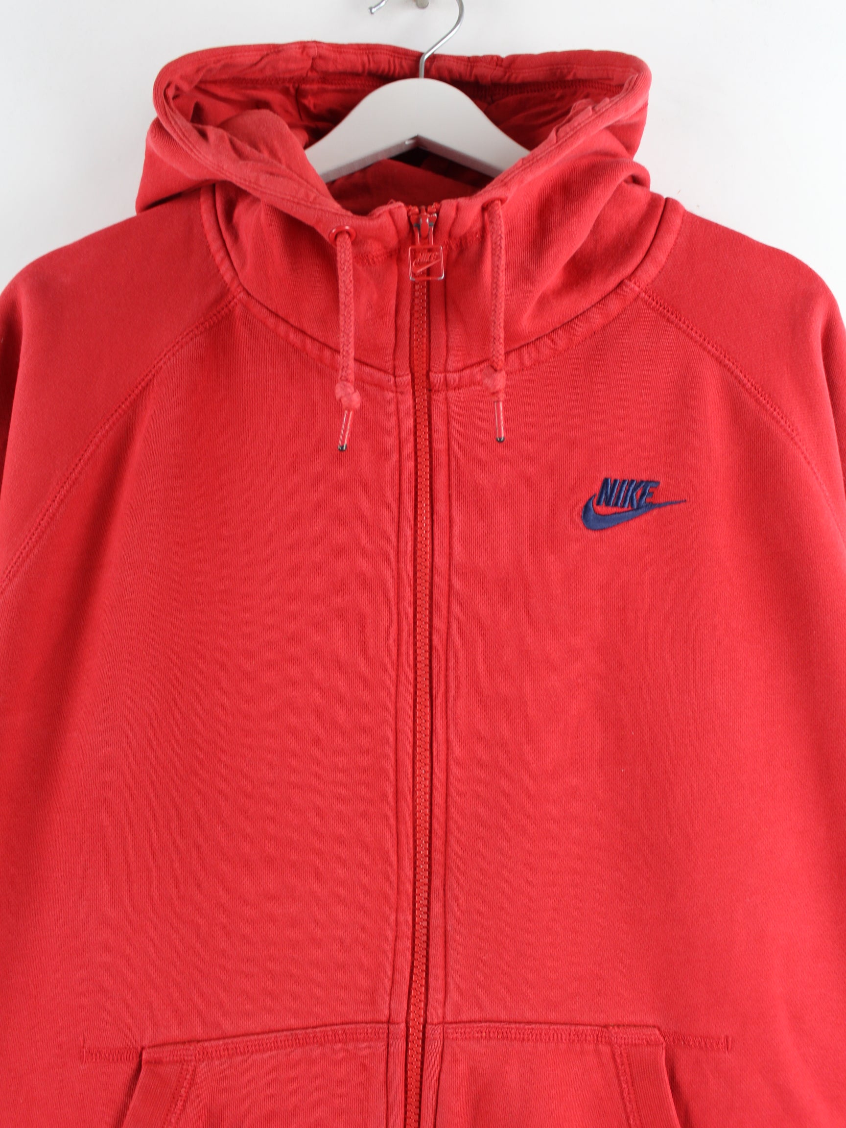 Hoodie des Labels Nike mit langem Reißverschluß in Größe XL. Er ist aus einer Baumwollmischung gefertigt und in Rot im Bestand.