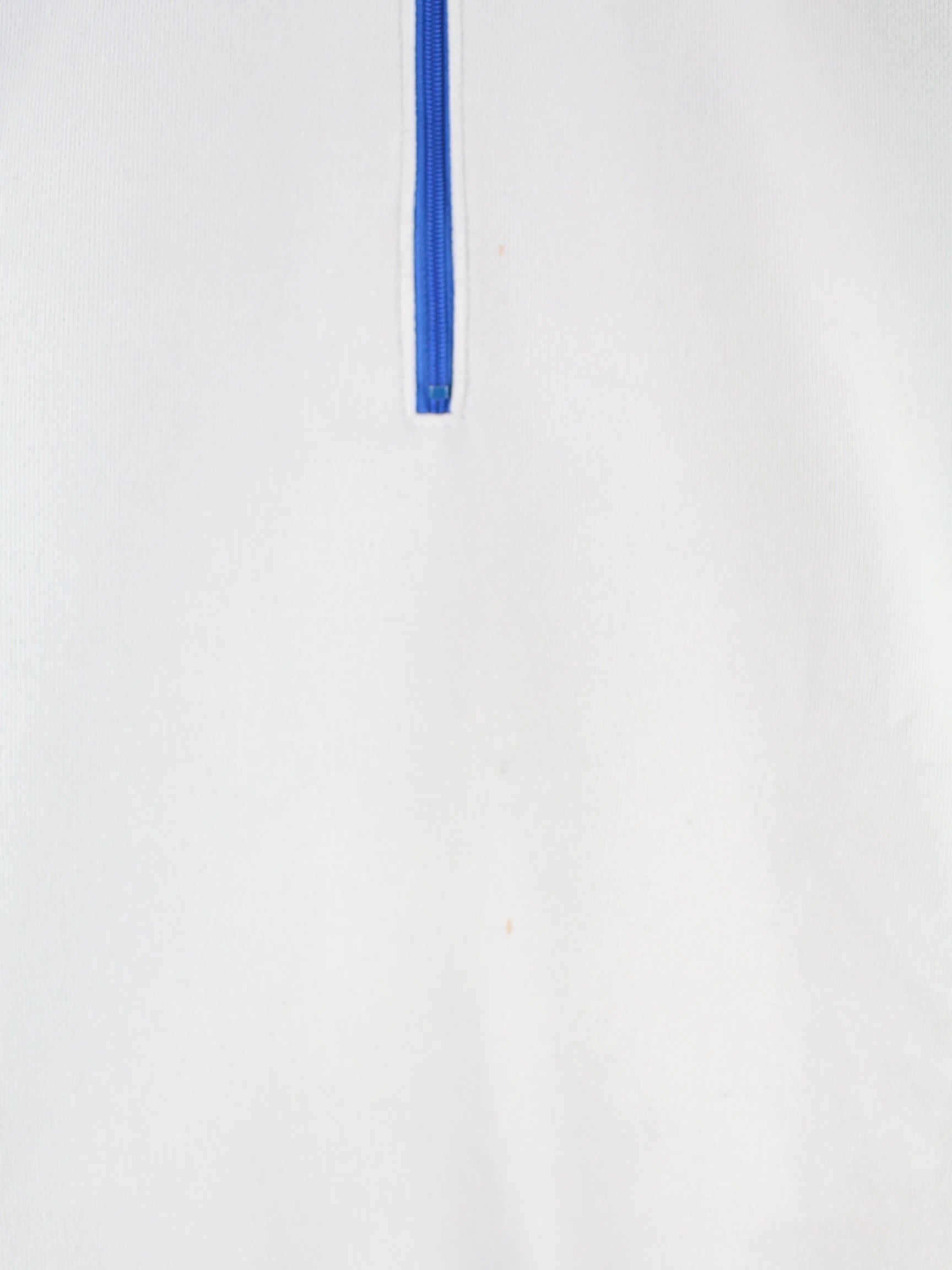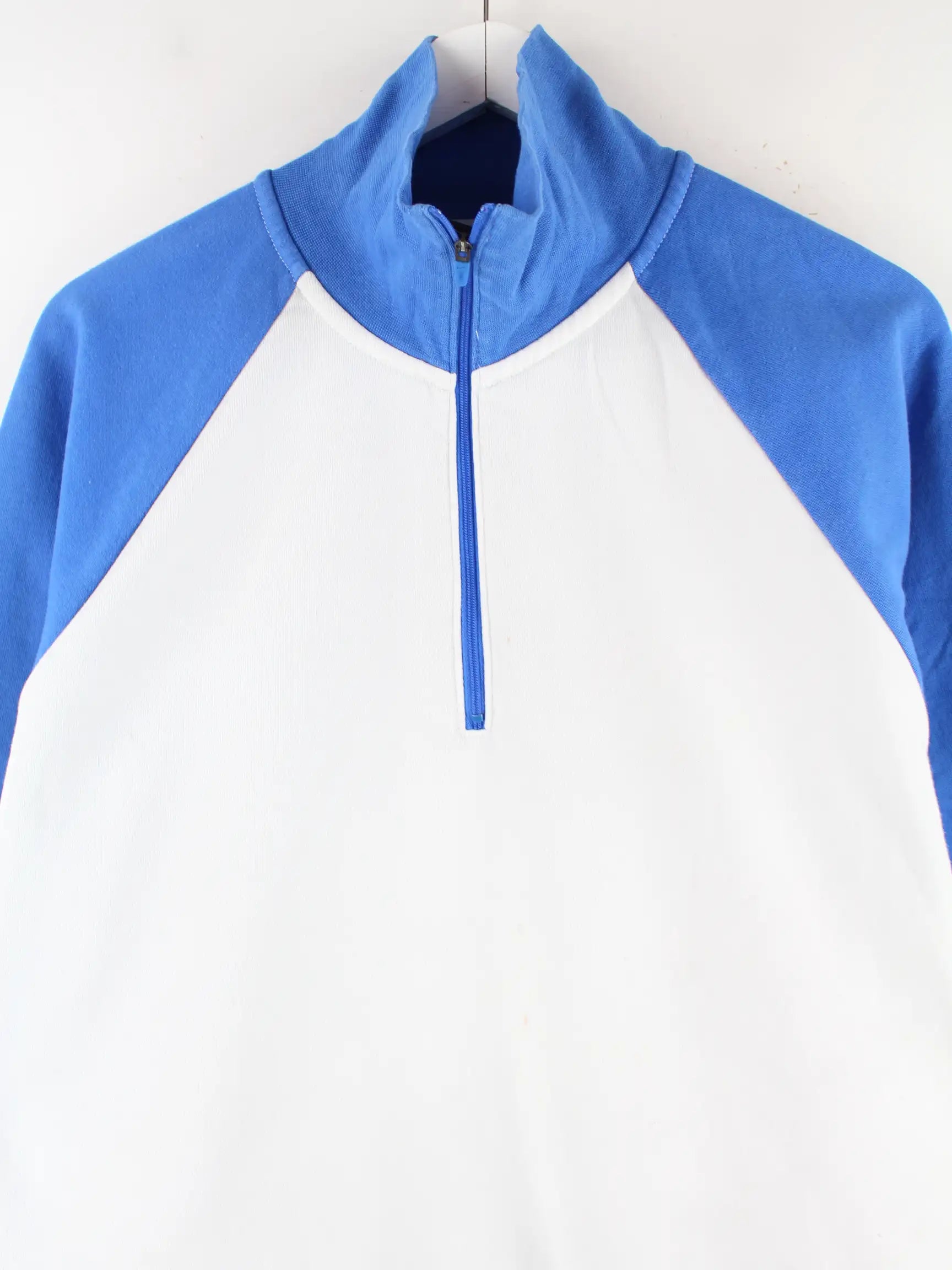 Sweater vom Brand Nike mit half Zip in Größe M. Er ist aus einer Baumwollmischung gemacht und in Weiß im Angebot.