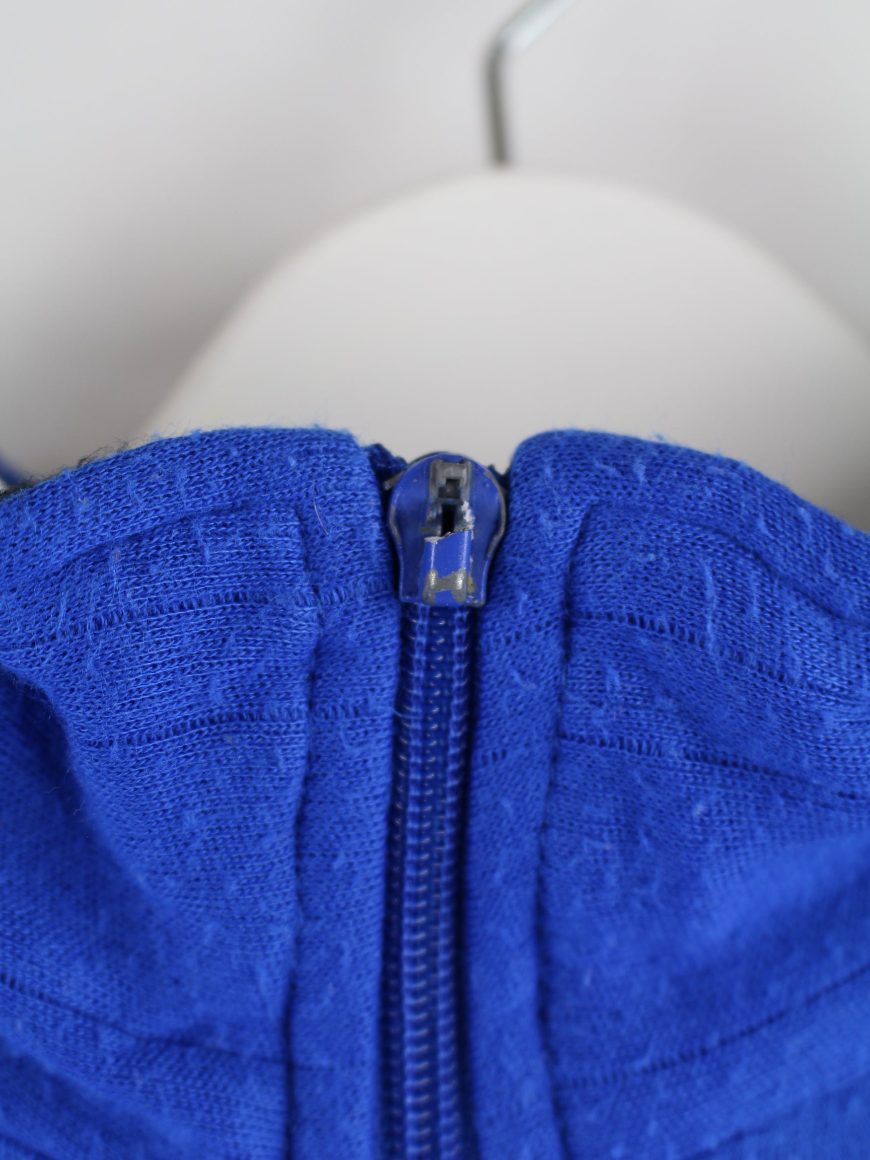 Blaue Sweatjacke des Labels Pierre Cardin aus den 90'ern in Größe M. Sie ist aus Acryl gefertigt und in gutem Zustand auf Lager.