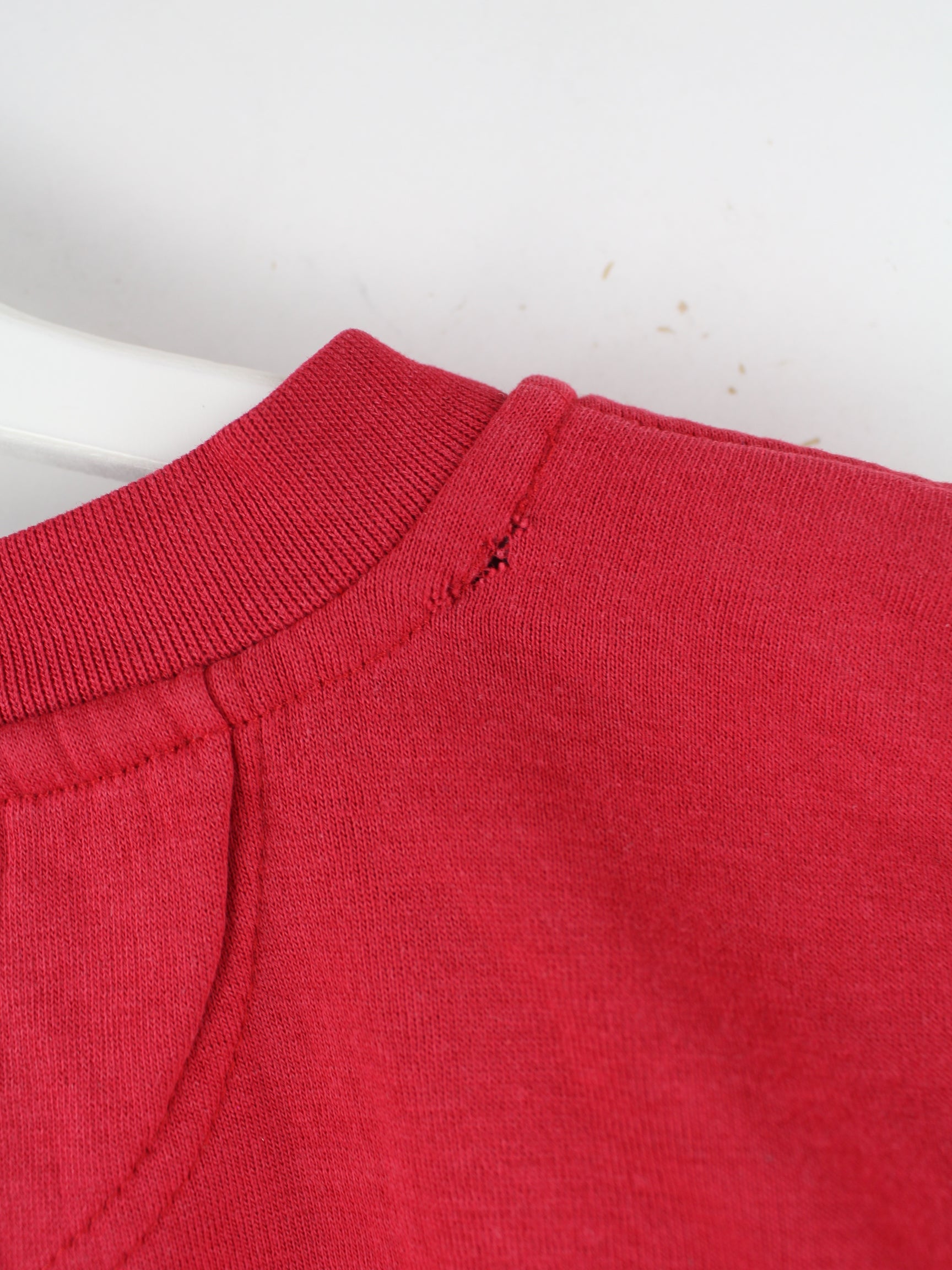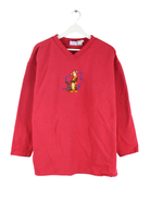 Roter Sweater mit gestickten Motiven vom Label Pooh aus den 90'ern in Größe XL. Er ist aus einer Baumwollmischung angefertigt. Den Zustand würden wir als 'In Ordnung' bezeichnen (vergl. Bilder).