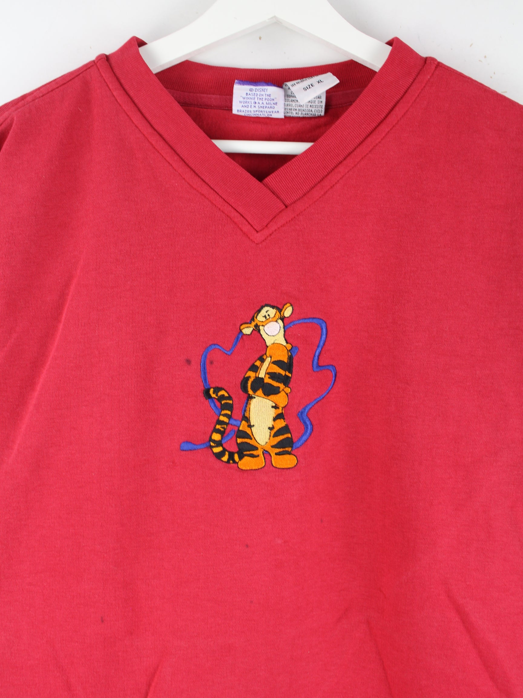 Pooh 90s Vintage Tigger Embroidered V-Neck Sweater Rot XL