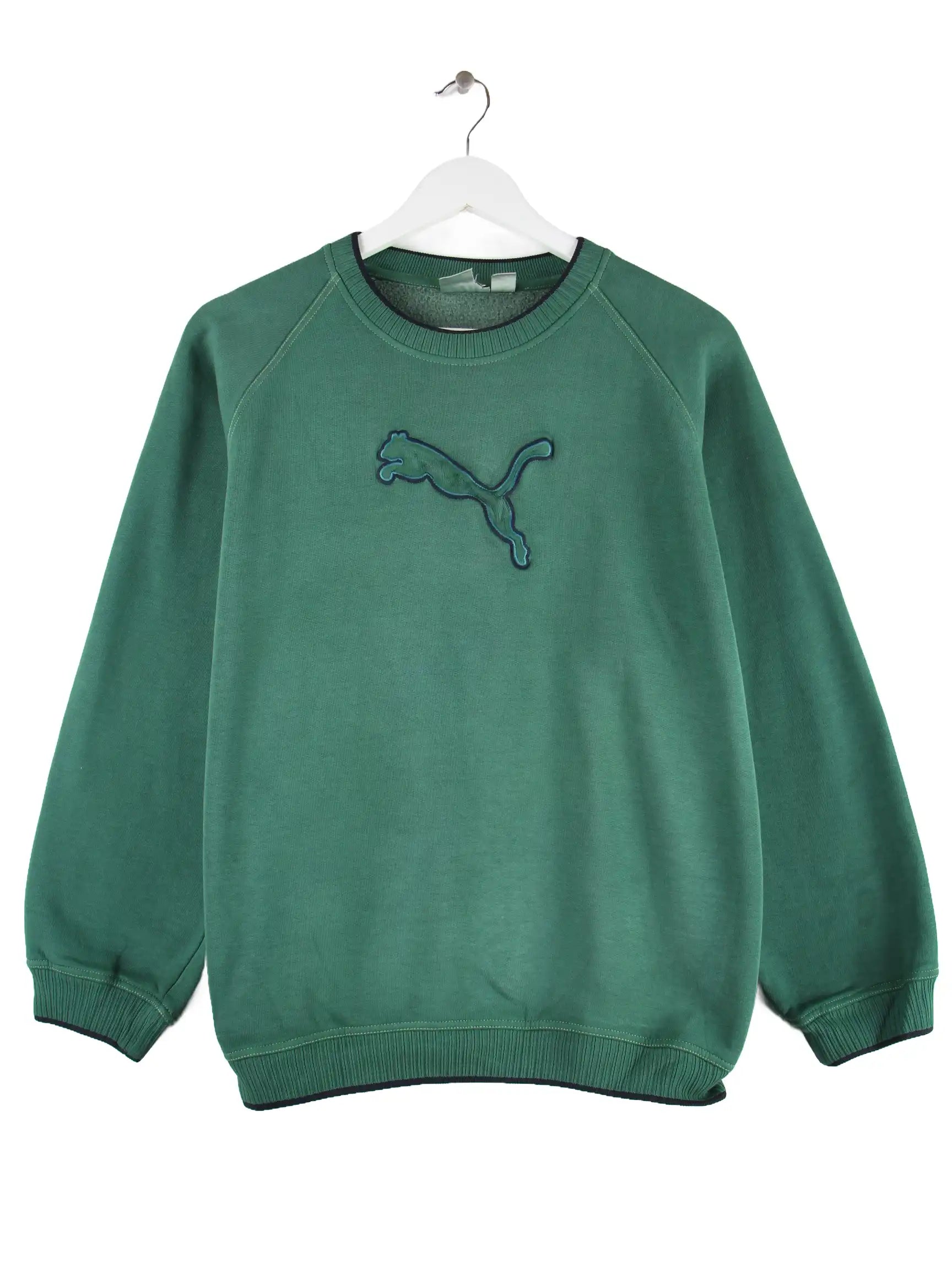 Grüner Sweater vom Label Puma in Größe S. Er ist aus einer Baumwollmischung hergestellt. Den Zustand würden wir als 'In Ordnung' bezeichnen (vergl. Bilder).