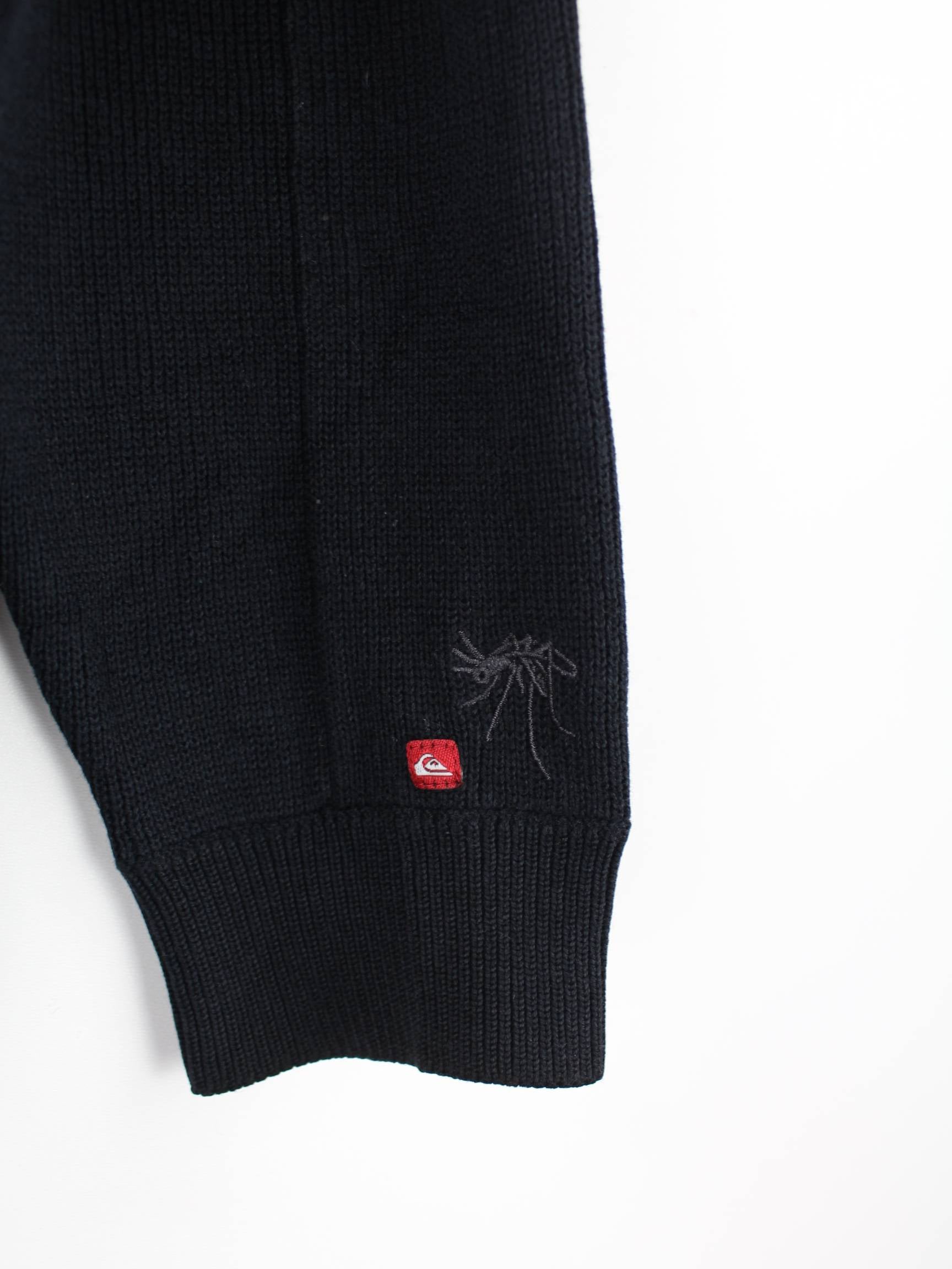 Schwarze Strickjacke aus dem Hause Quiksilver aus den 90'ern in Größe XS. Sie ist aus Baumwolle gemacht und in sehr gutem Zustand zu haben.
