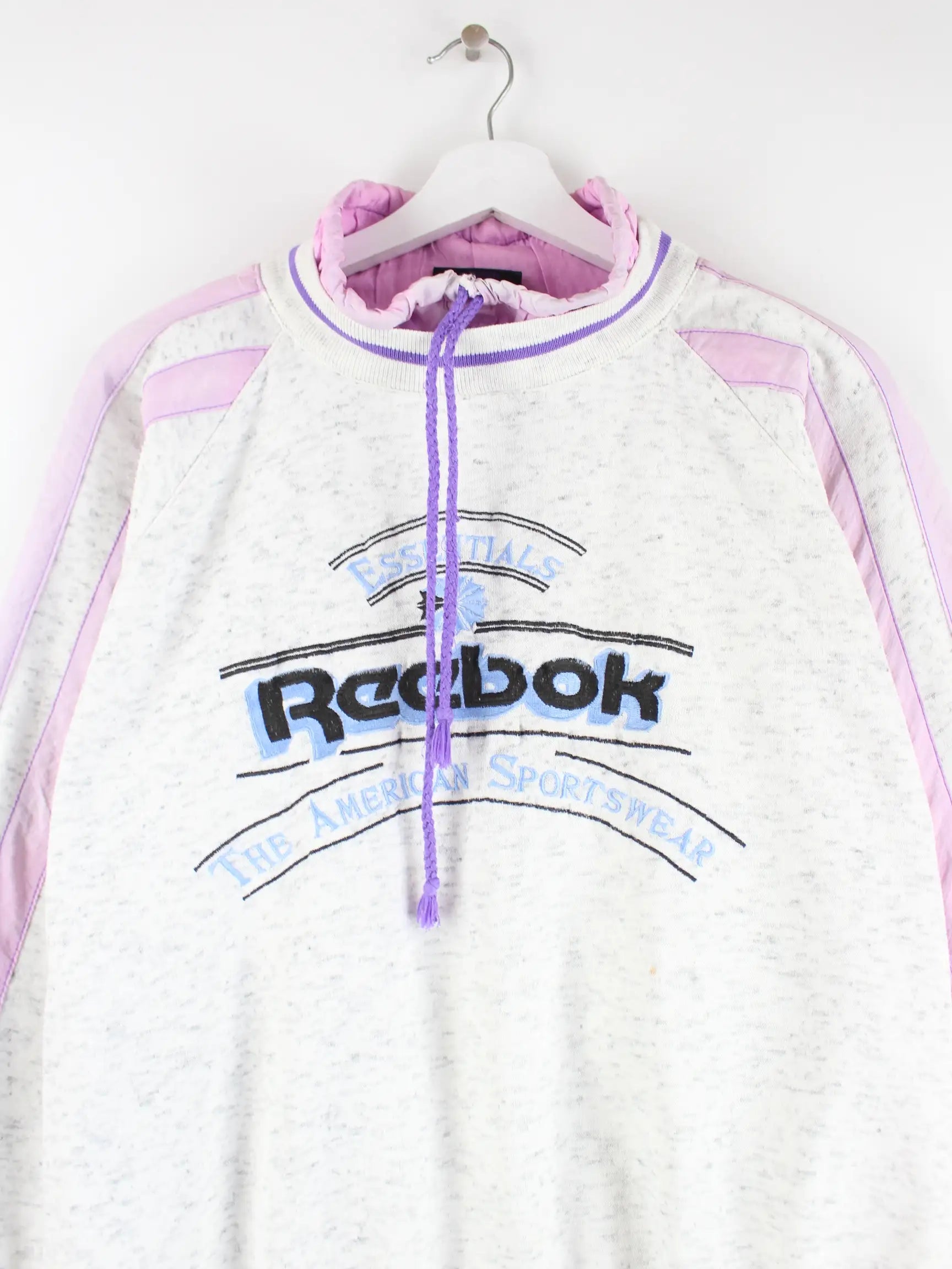 Sweater vom Label Reebok in Größe L aus den 80'ern. Er ist aus einer Baumwollmischung gefertigt und in Grau im Angebot.