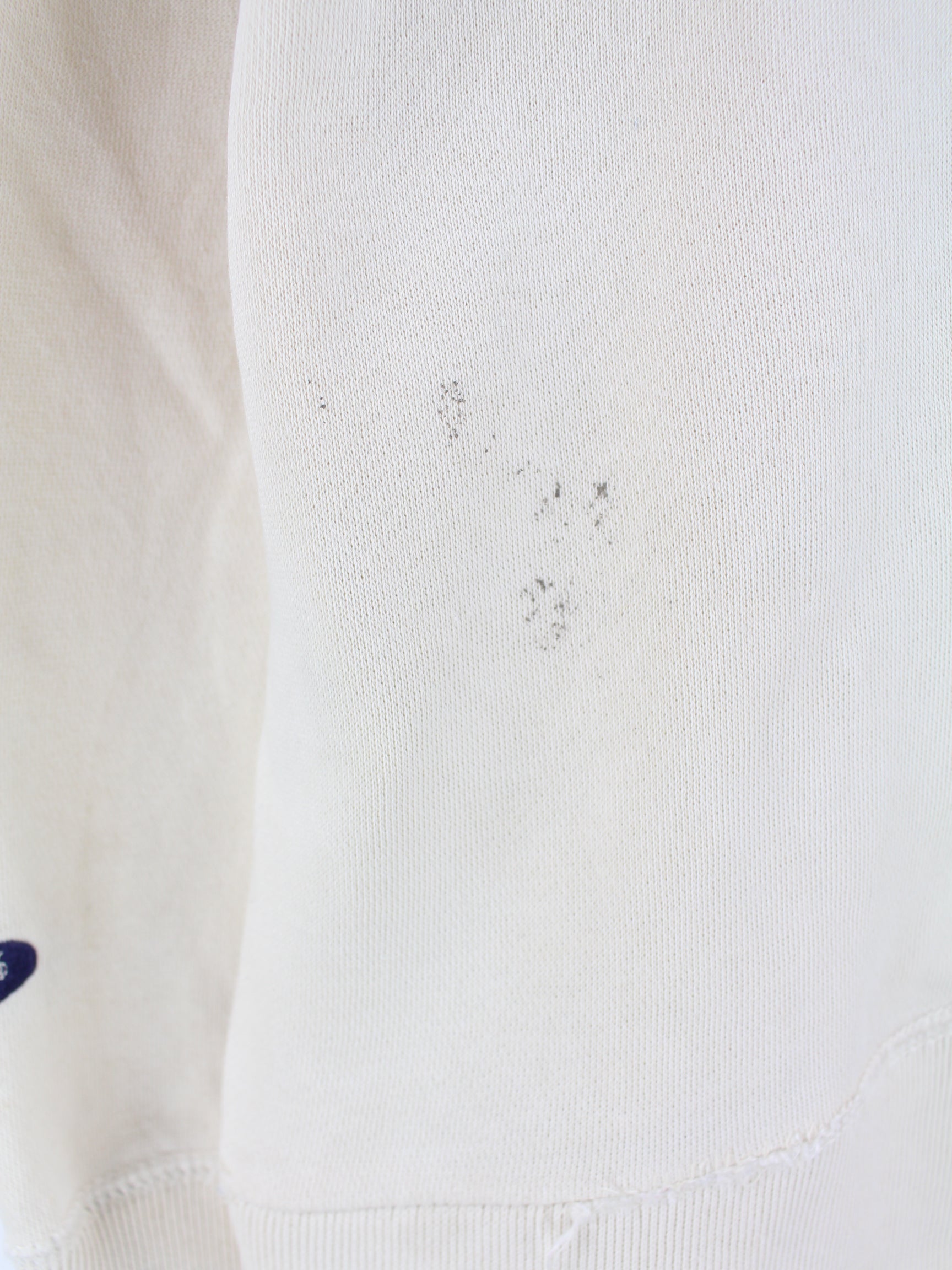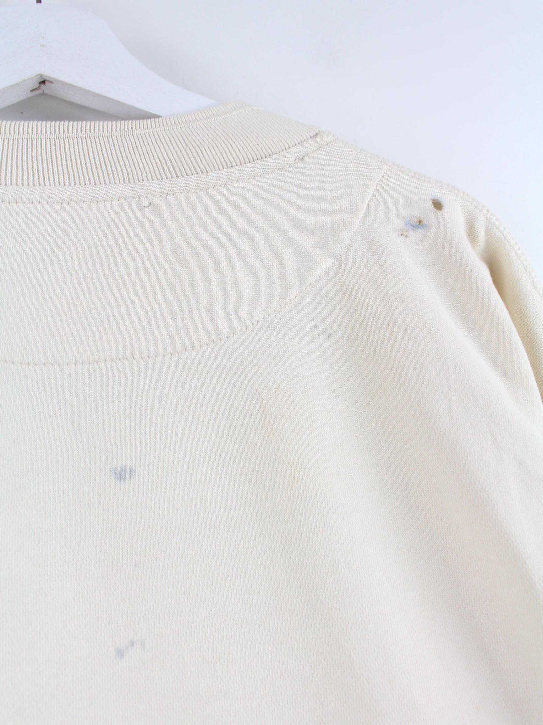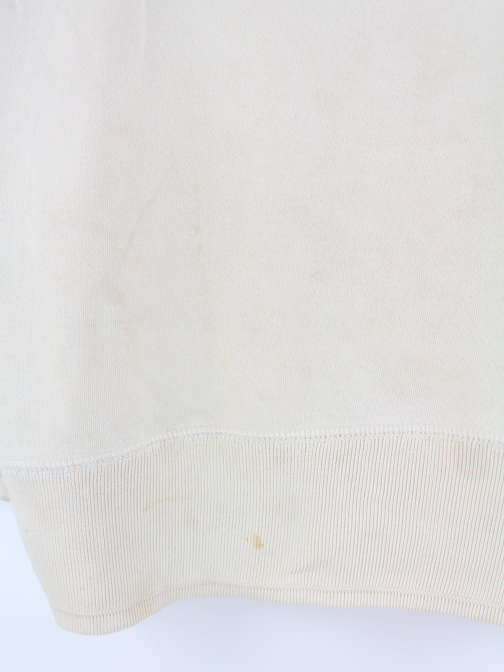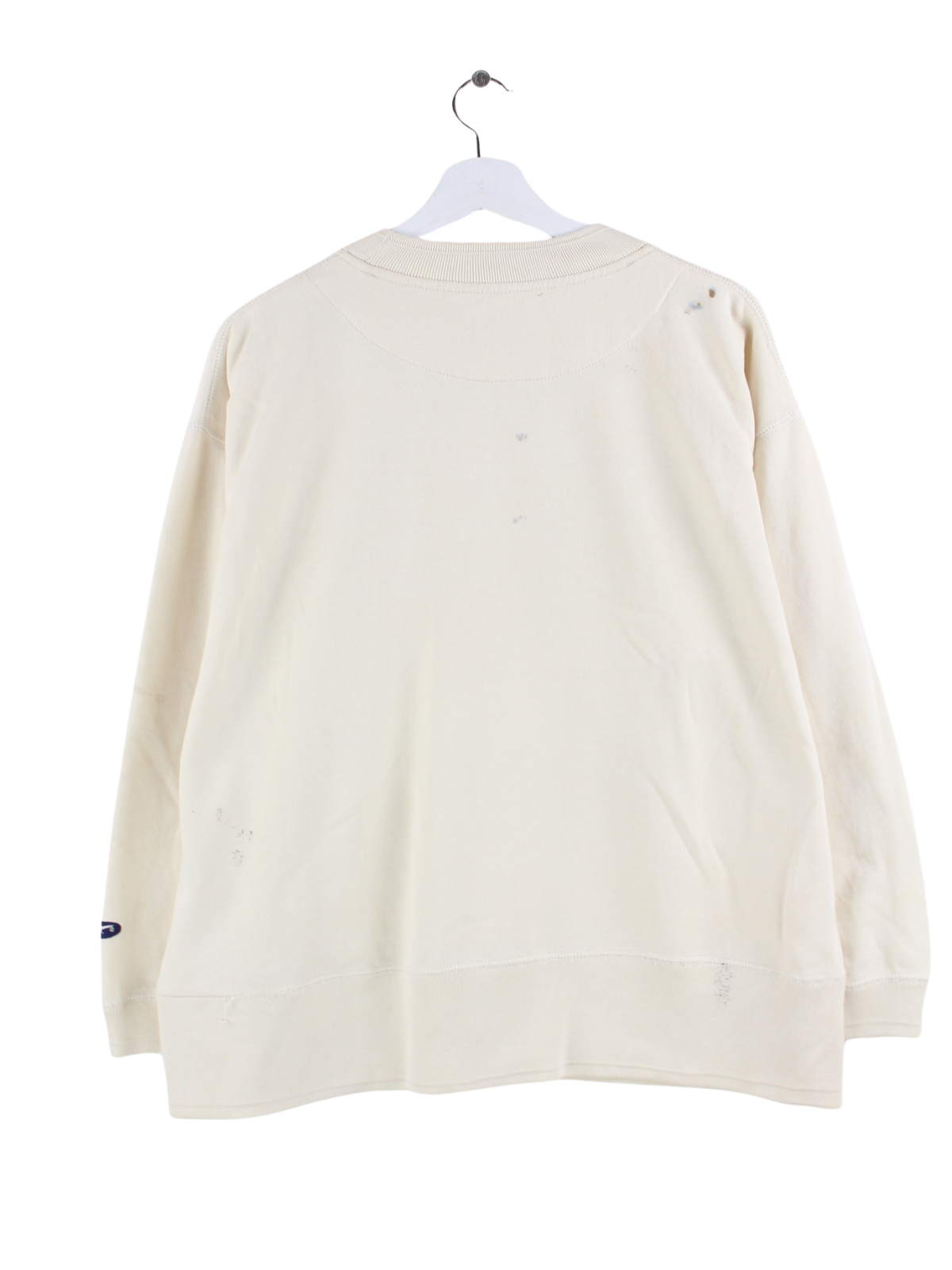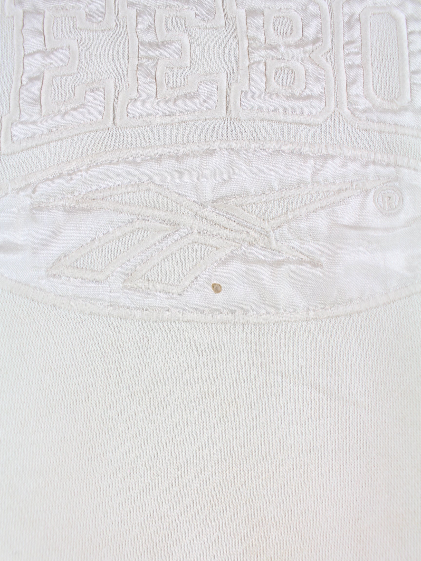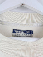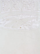 Sweater des Labels Reebok mit gestickten Motiven in Größe XS aus den 90'ern. Er ist aus einer Baumwollmischung und in Beige im Bestand.