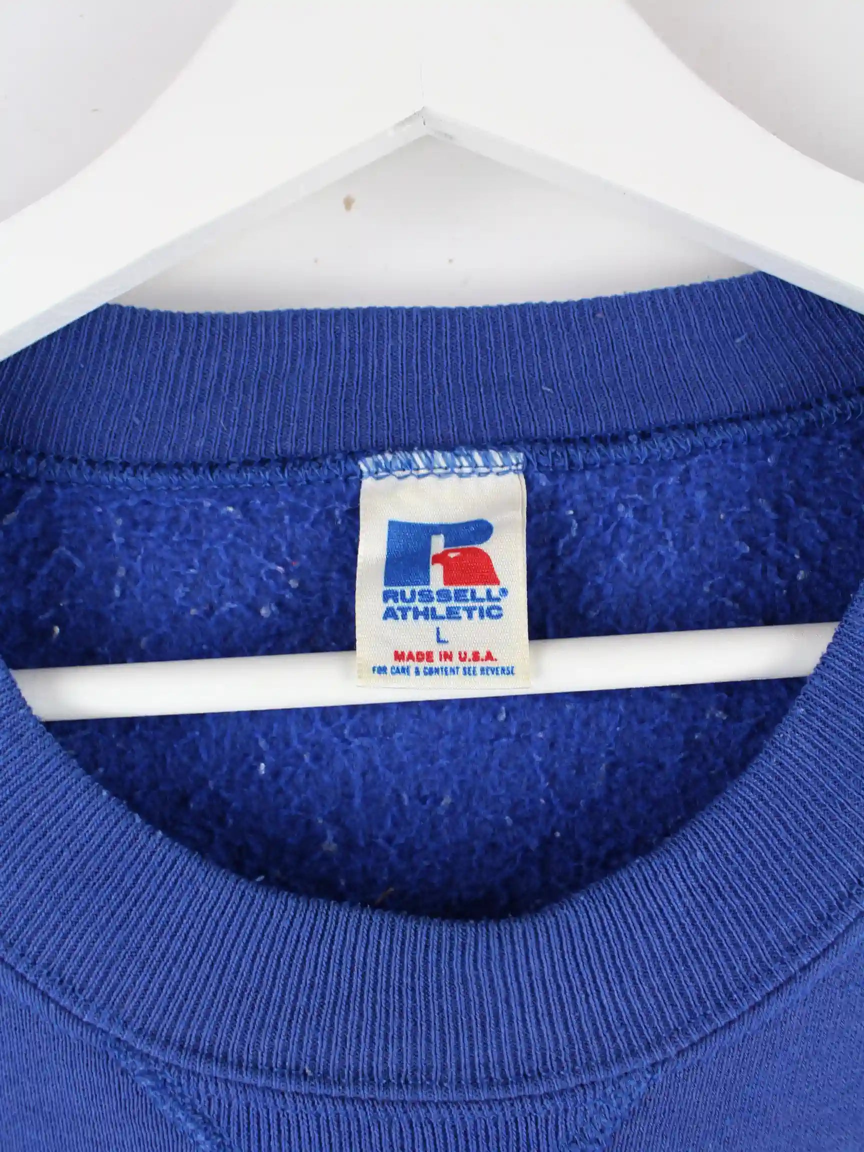 Sweater des Labels Russell Athletic in Größe L. Er ist aus einer Baumwollmischung hergestellt und in Blau lieferbar. Mit chiquem Wildcats Print.