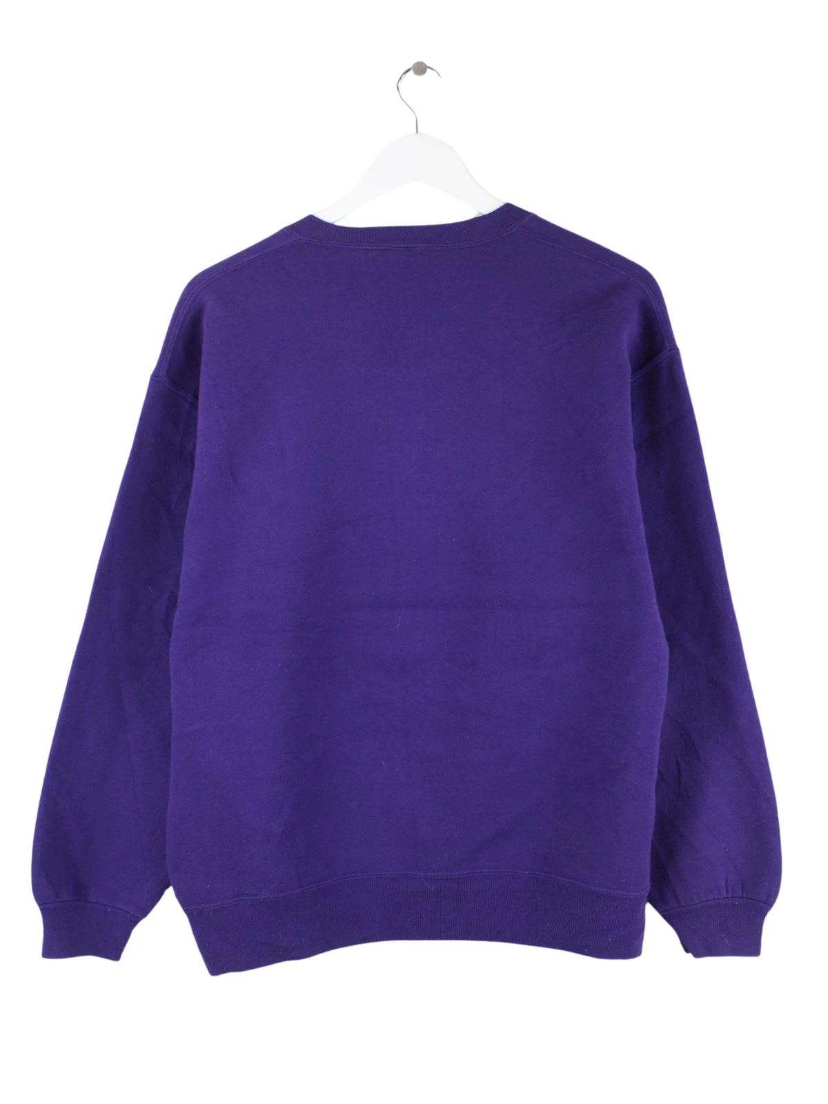 Lilafarbener Sweater der Marke Russell Athletic aus den 90'ern in Größe L. Er ist aus einer Baumwollmischung und in gutem Zustand in Stock. Mit tollem Huskies Print.