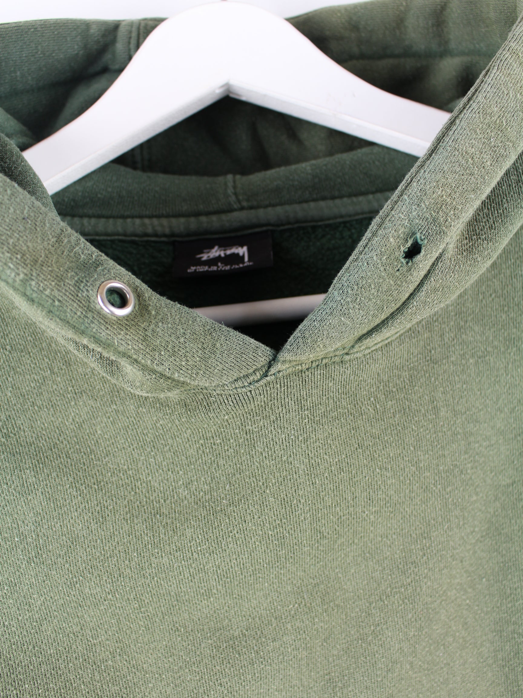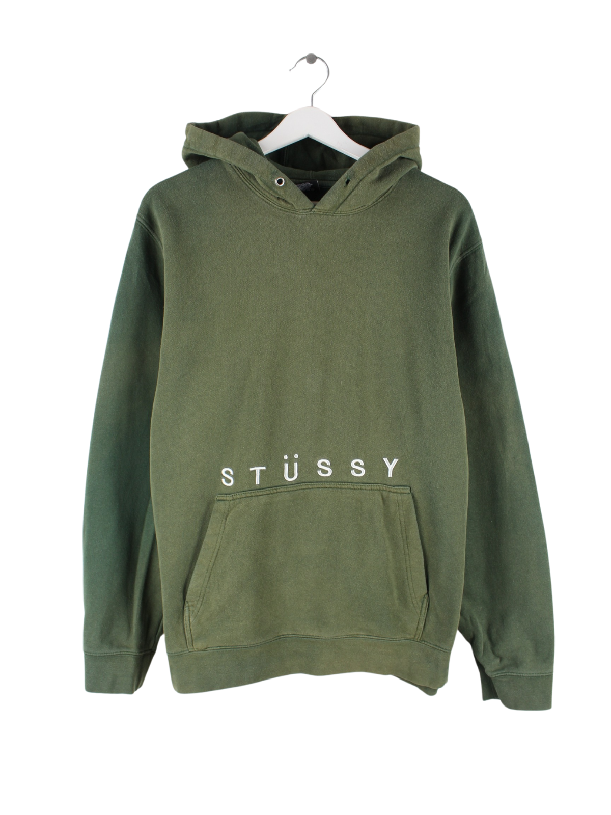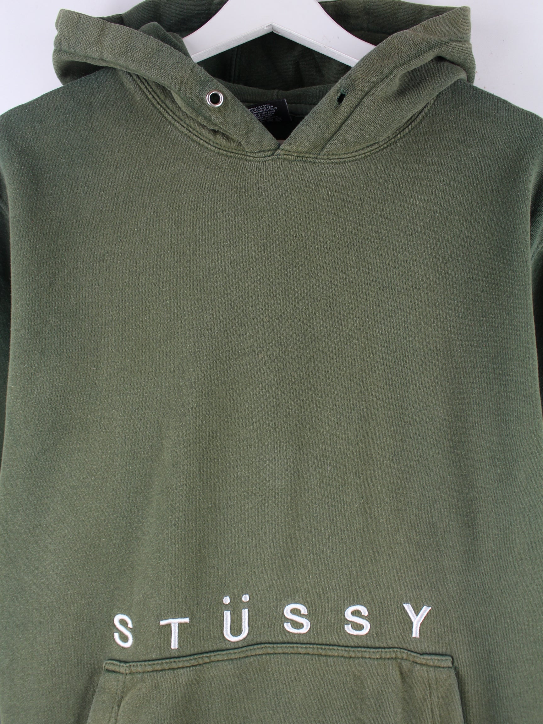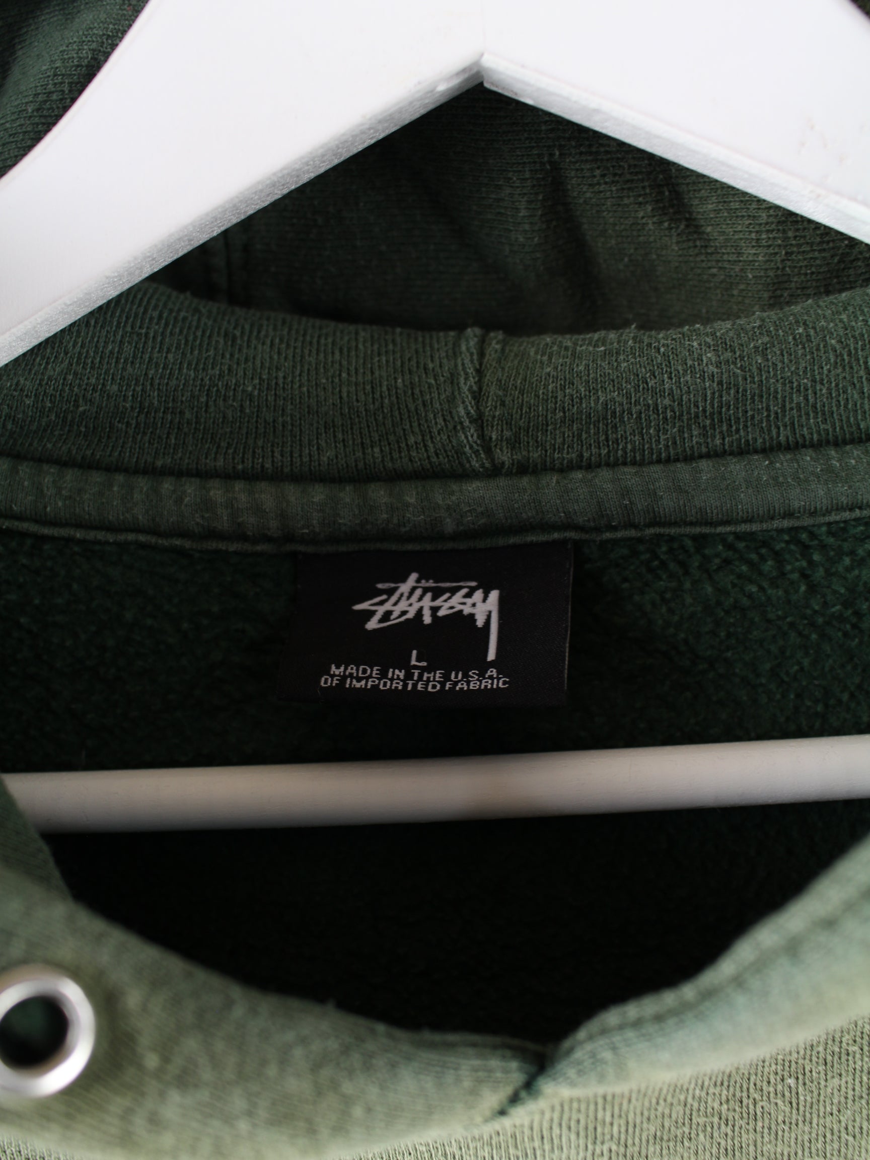 Grüner Hoodie mit Stickereien von Stüssy in Größe L. Er ist aus einer Baumwollmischung produziert und in gutem Zustand vorrätig.