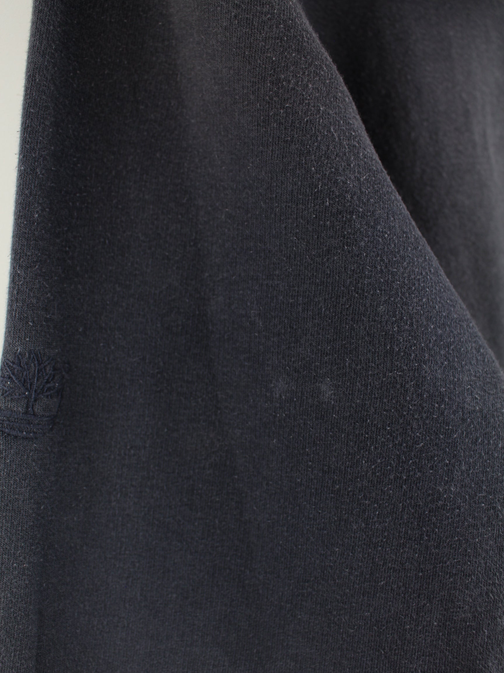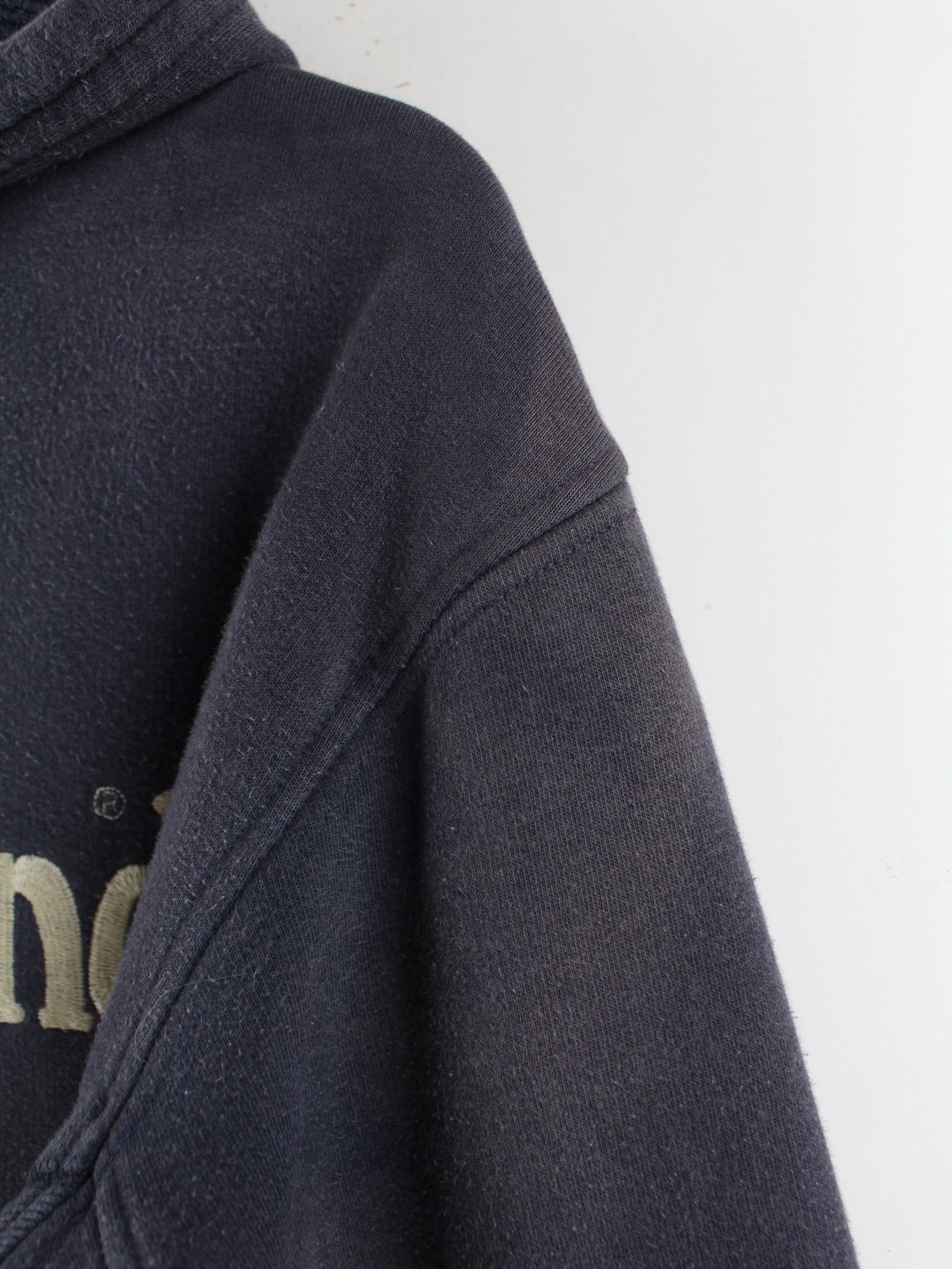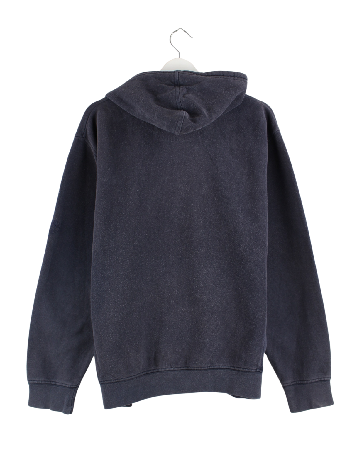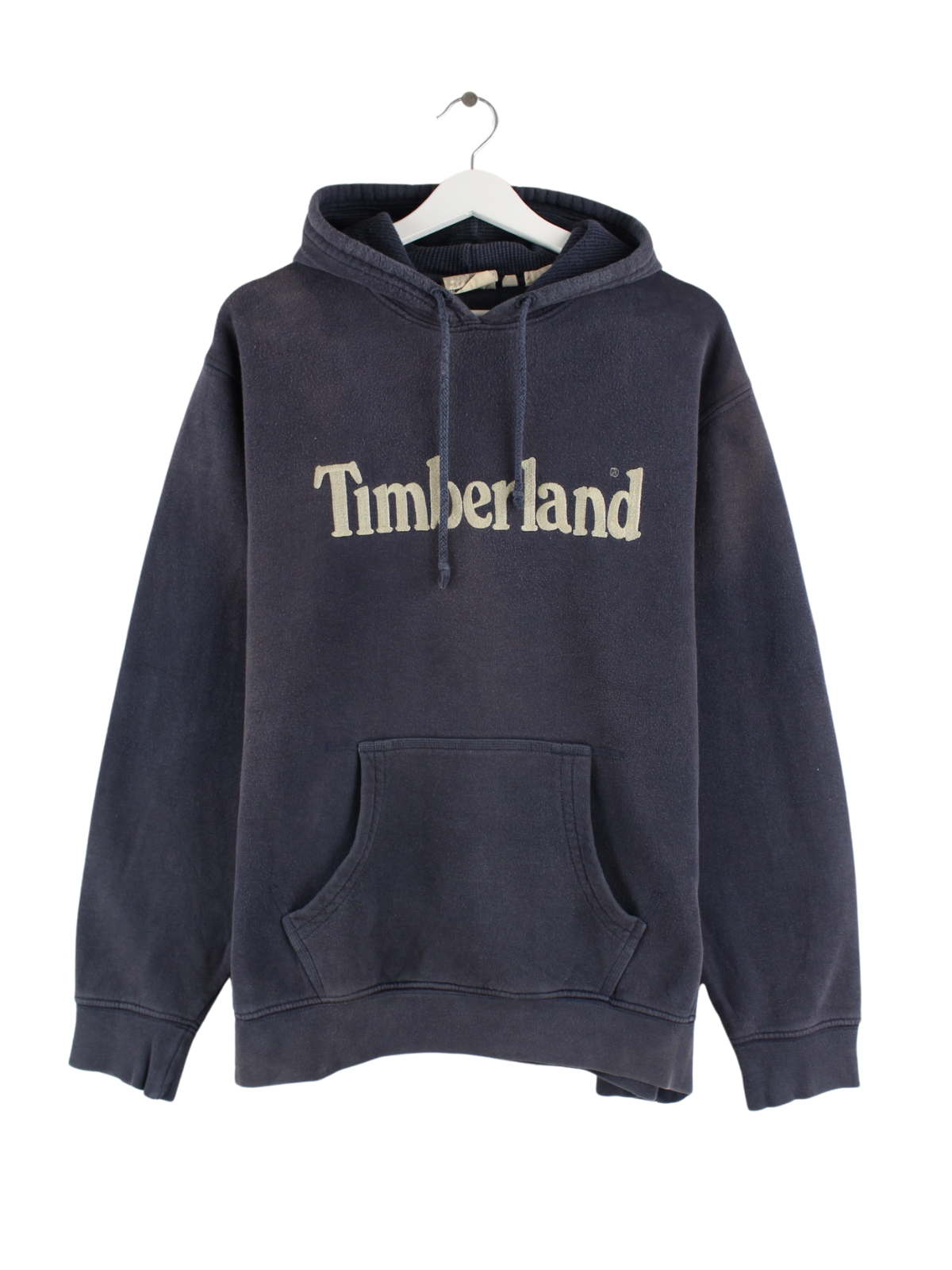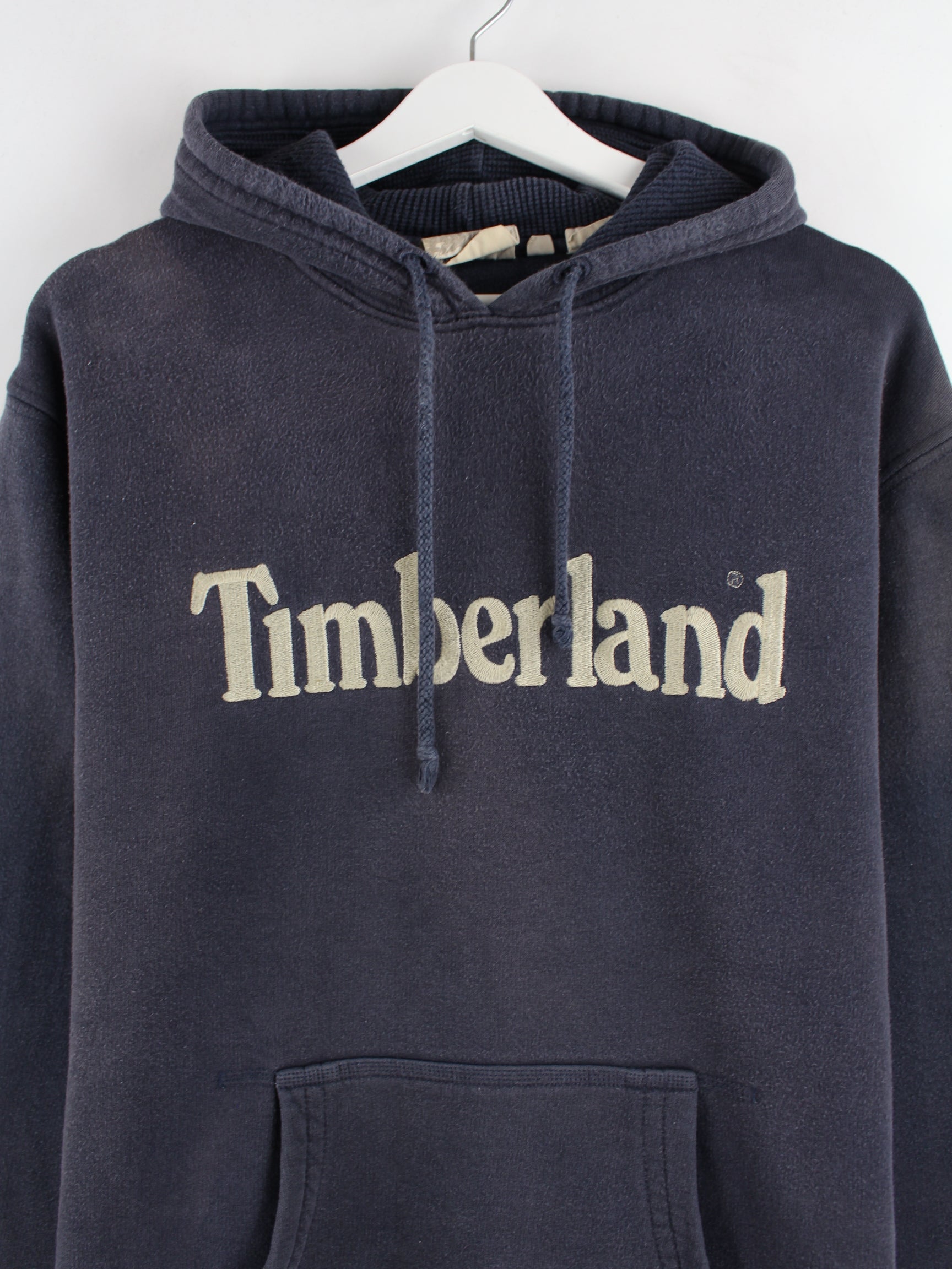 Blauer Hoodie mit Stickereien vom Label Timberland in Größe S. Er ist aus einer Baumwollmischung und in gutem Zustand im Bestand.
